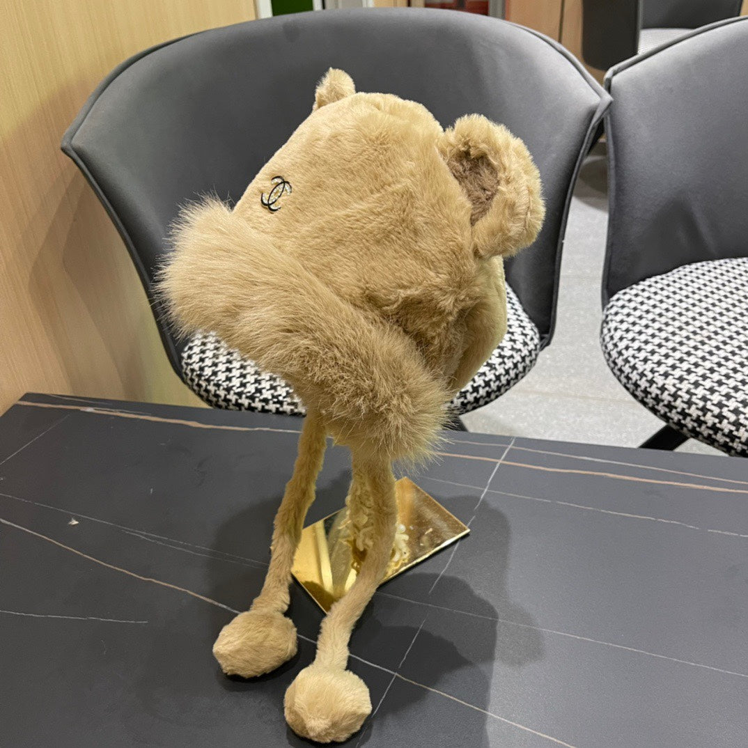 BEANIE HAT IN CAMEL BROWN FLEECE AND WOOL 433163