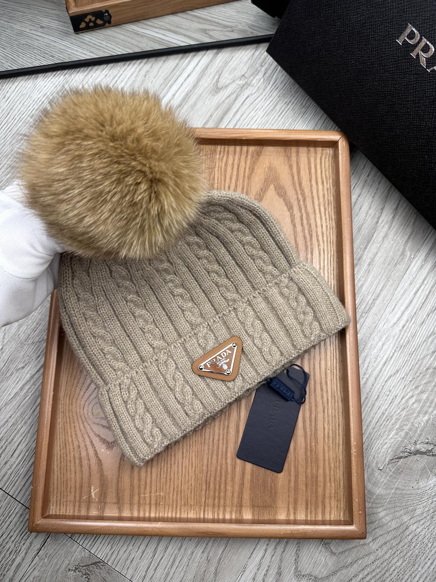 BEANIE HAT IN CAMEL BROWN WOOL 352367