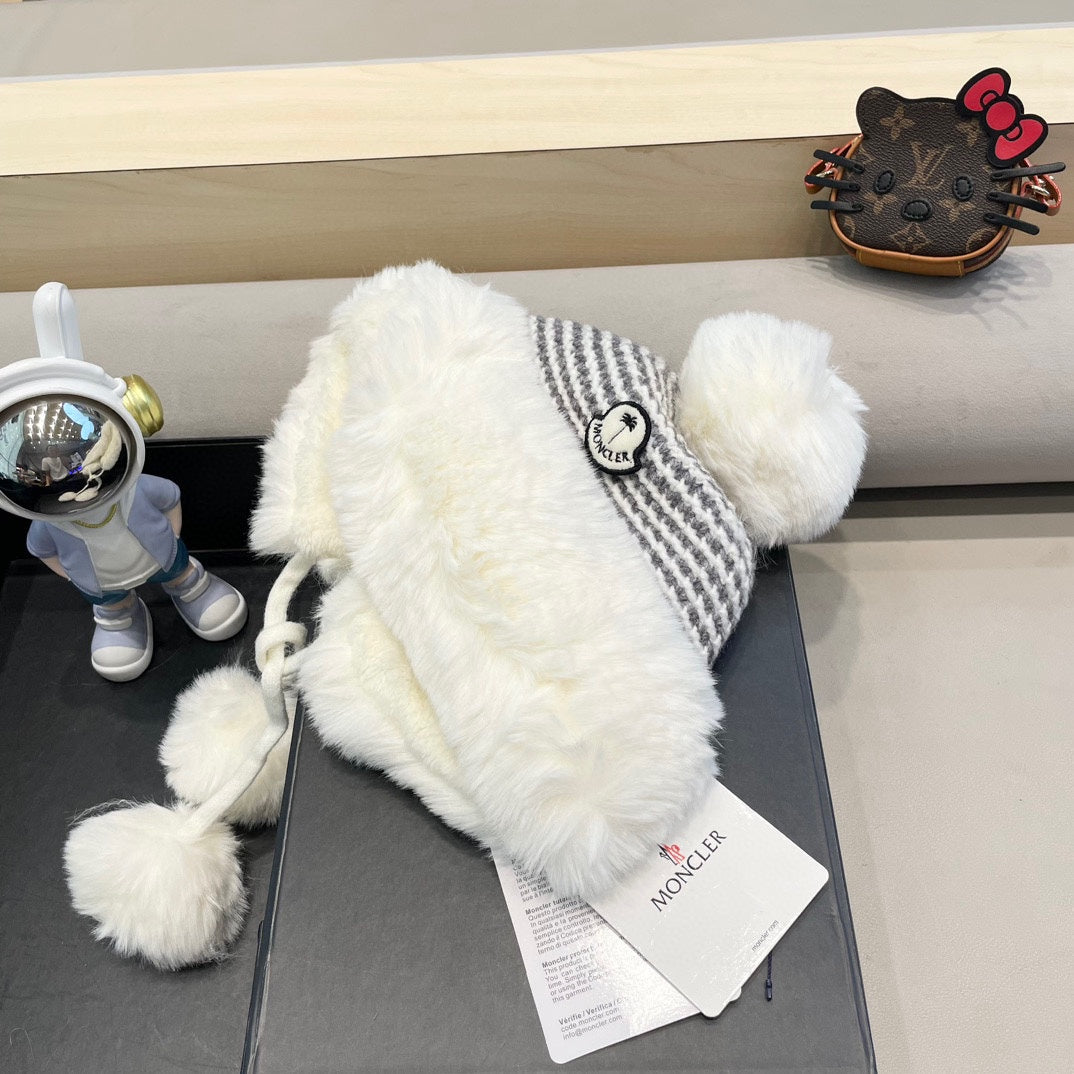 BEANIE HAT IN WHITE WOOL AND FLEECE 436749