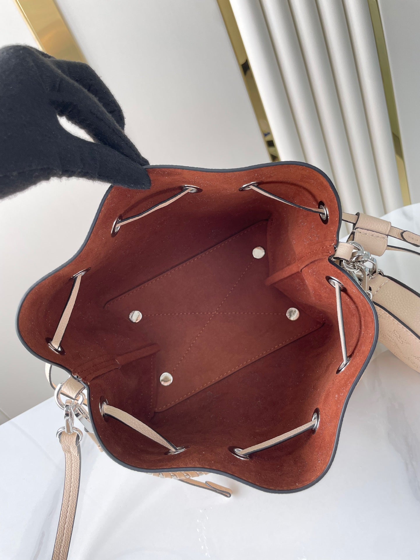 BELLA 22 IN BEIGE MONOGRAM PERFORATE CALFSKIN SILVER HARDWARE
