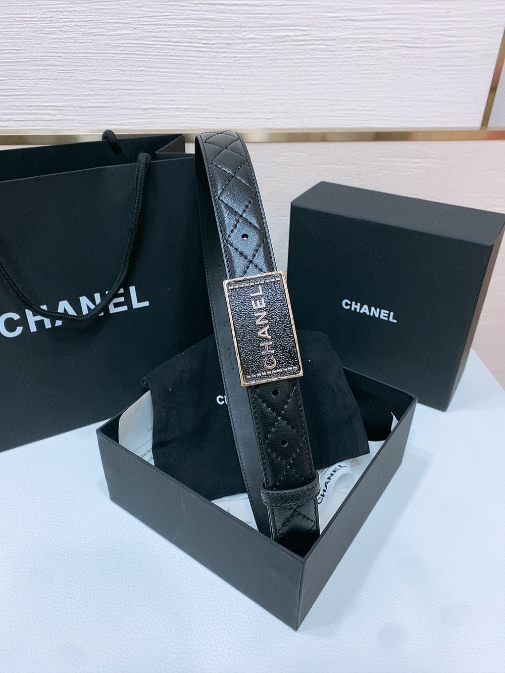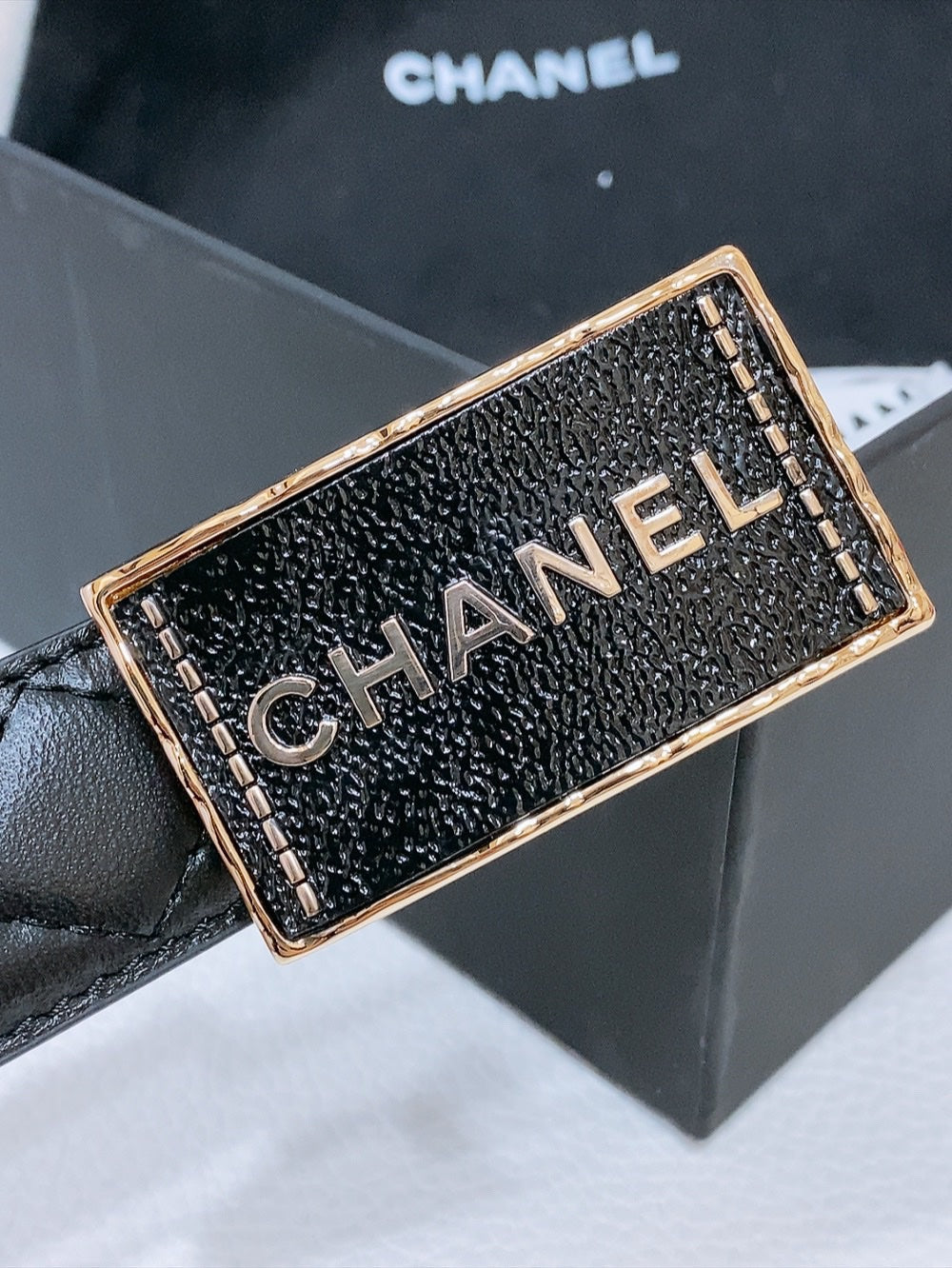 BELT 30MM IN BLACK QUILTED CALFSKIN INTERWOVEN GOLD RECTANGULAR BUCKLE