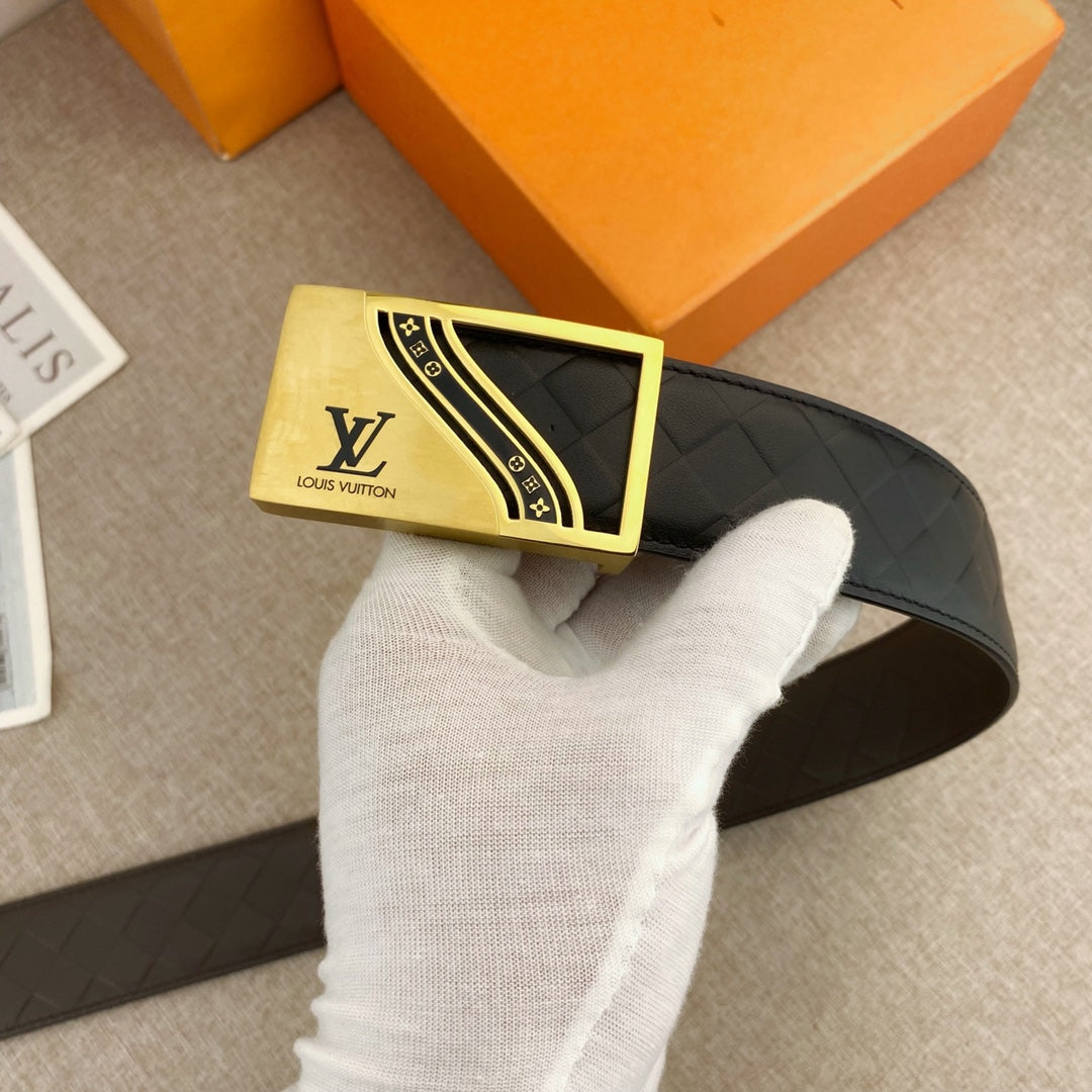BELT 38MM IN BLACK CALFSKIN EMBOSSED CHECKERED CALFSKIN GOLD BUCKLE WITH BLACK RAISED LOGO