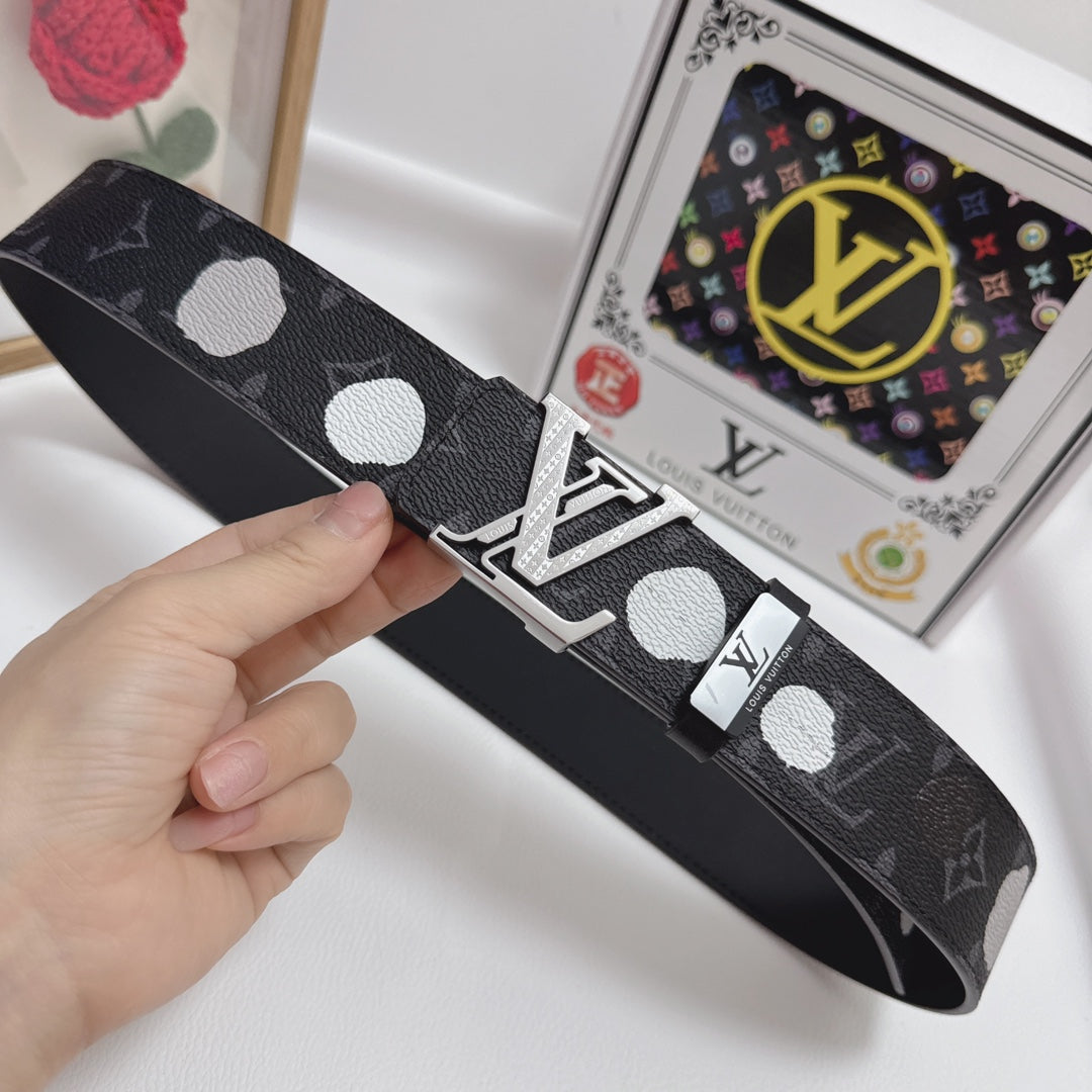 BELT 38MM IN BLACK CALFSKIN WITH WHITE POLKA DOT PATTERN AND 24K GOLD PLATED SILVER STEEL BUCKLE