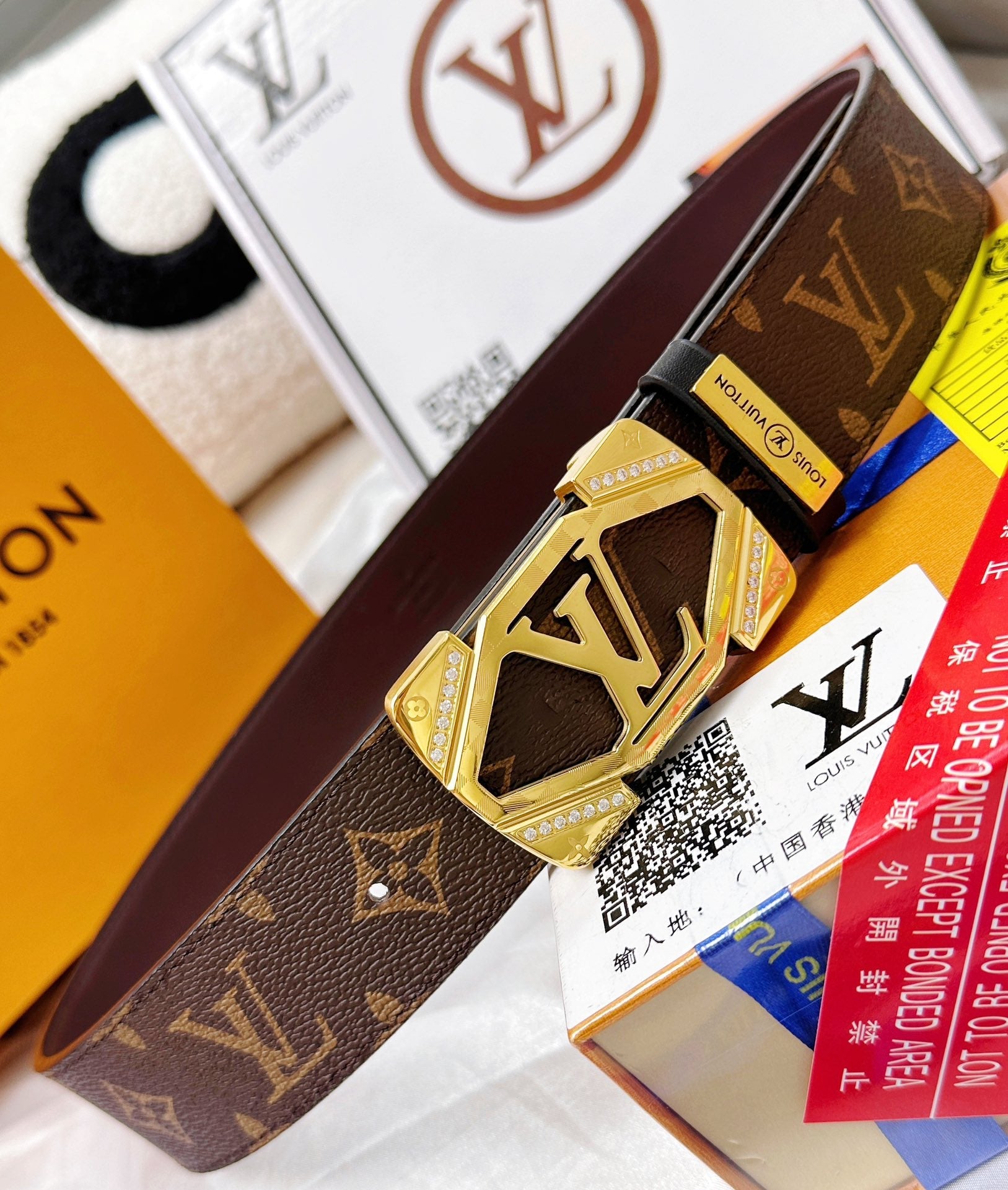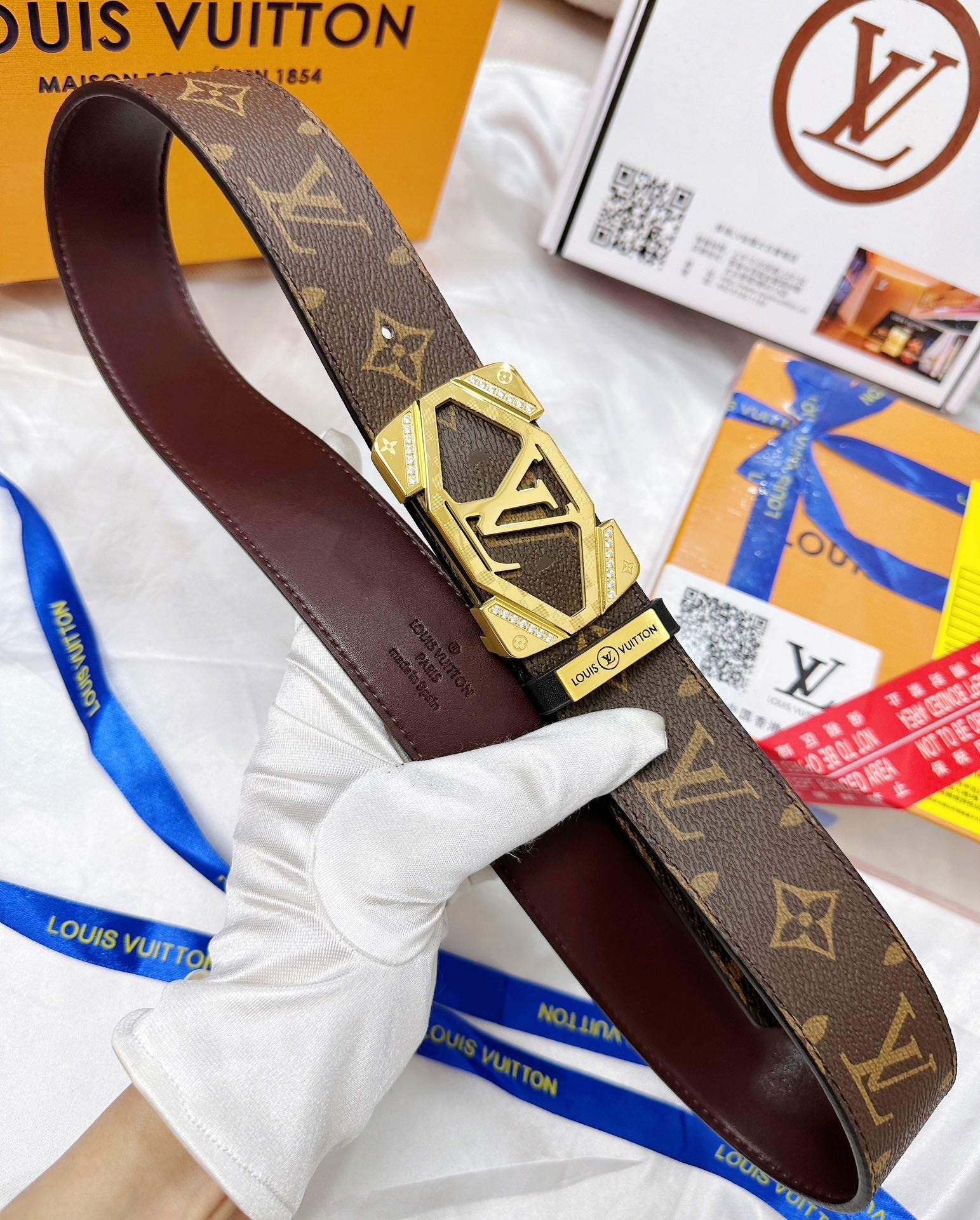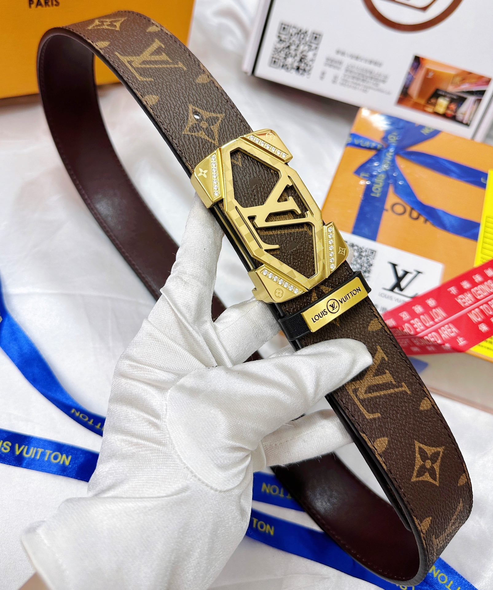 BELT 38MM IN BROWN CHECKERED PATTERN WITH RECTANGULAR GOLD PAVE BUCKLE