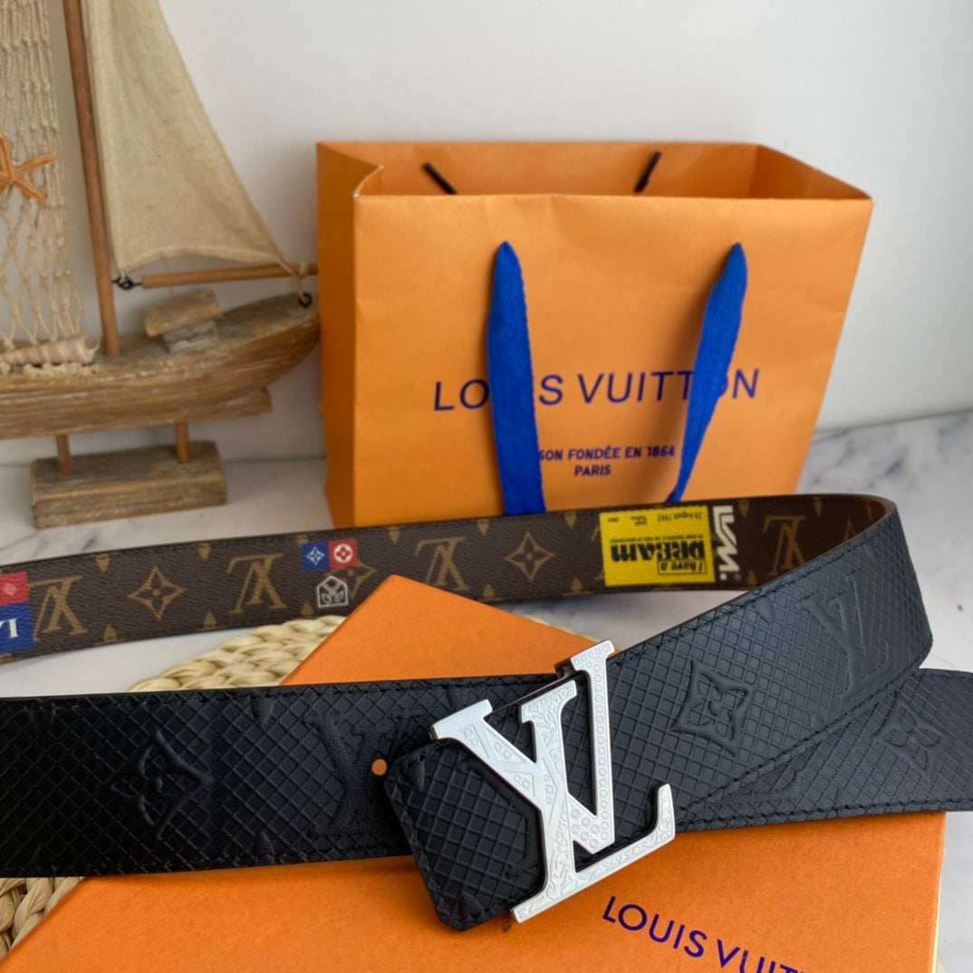 BELT 38MM REVERSIBLE IN BLACK BROWN MULTICOLOR MONOGRAM CALFSKIN WITH SILVER BUCKLE