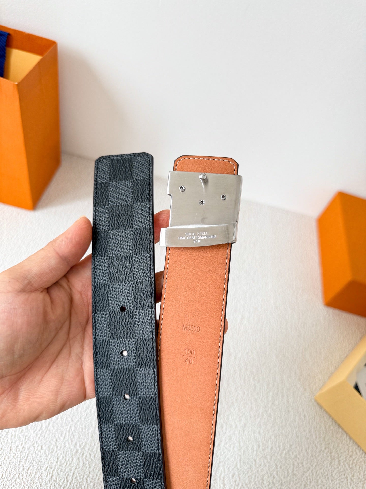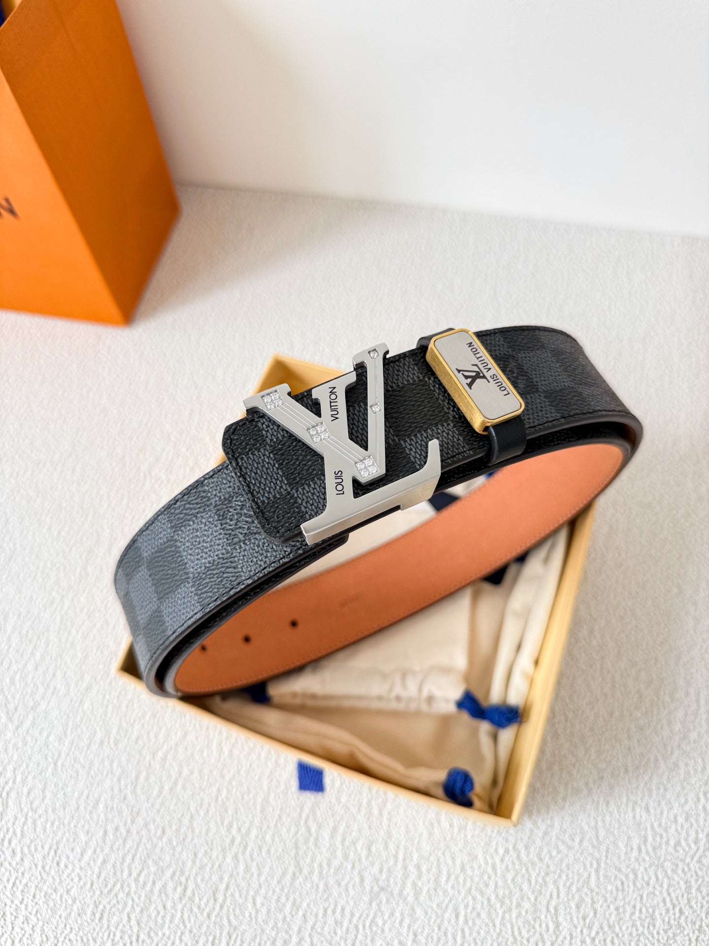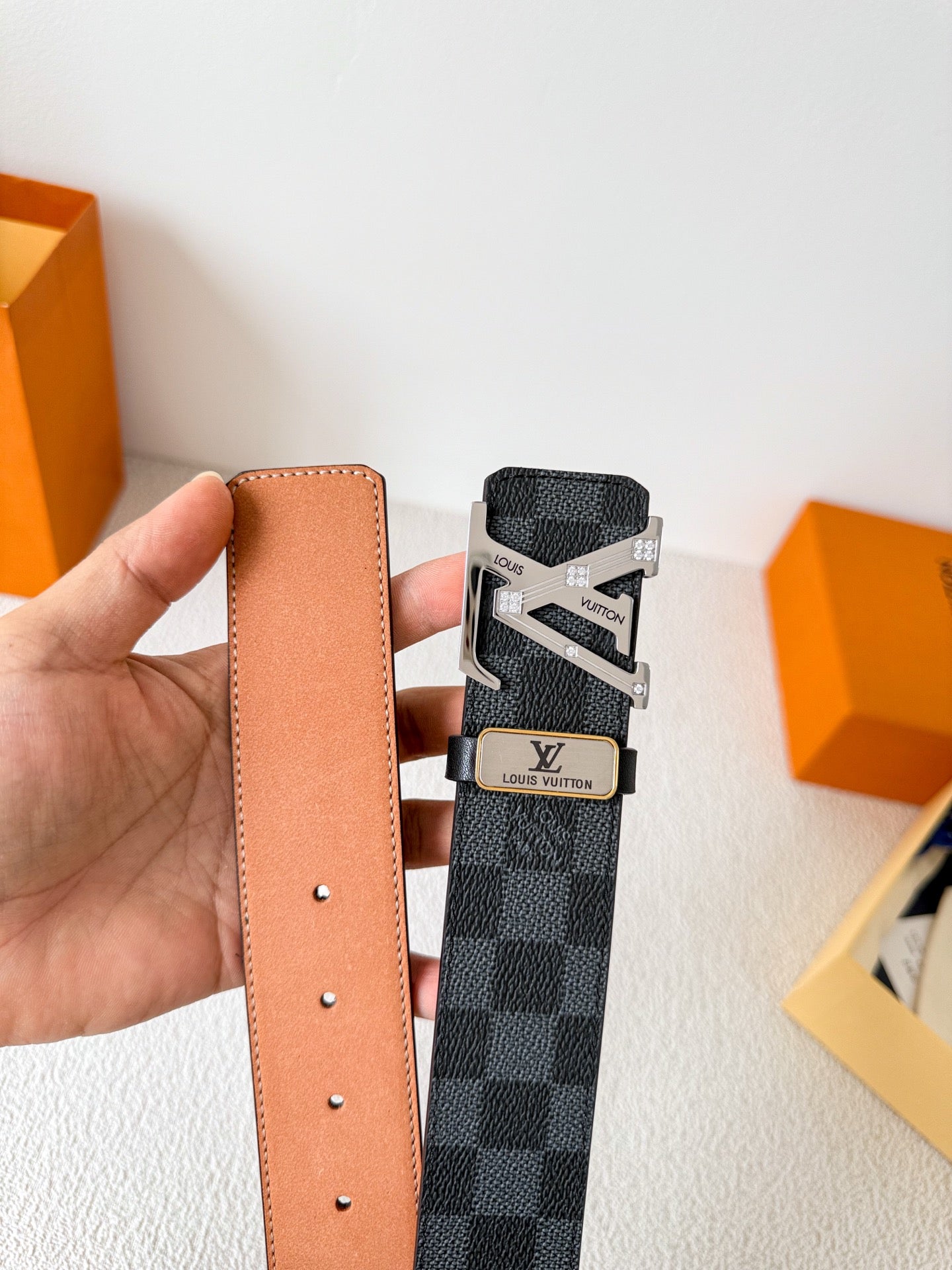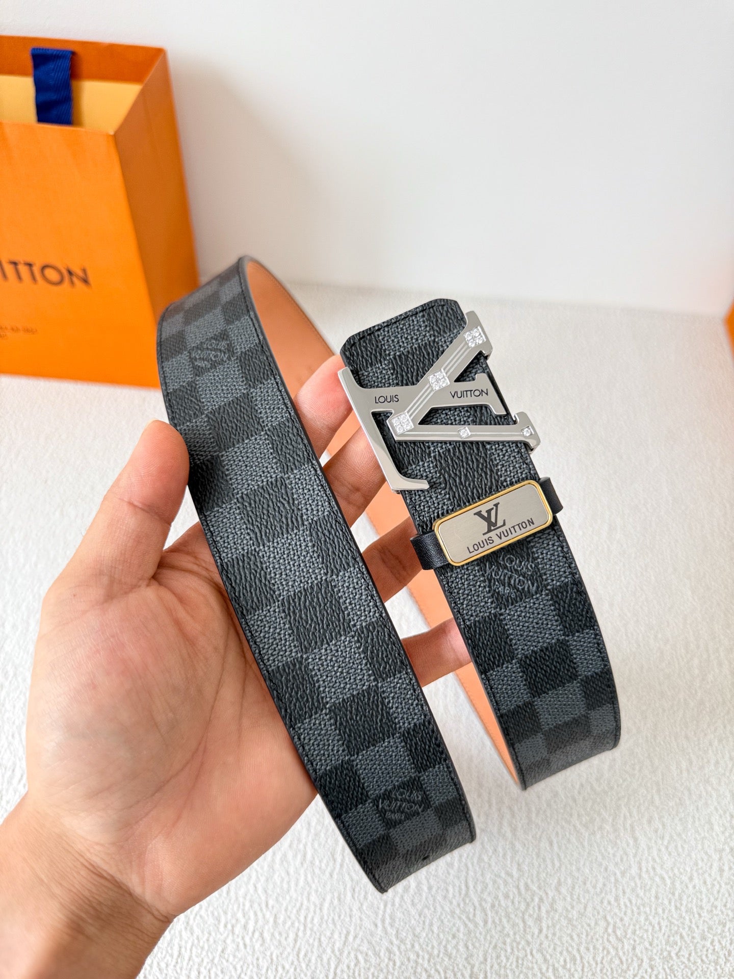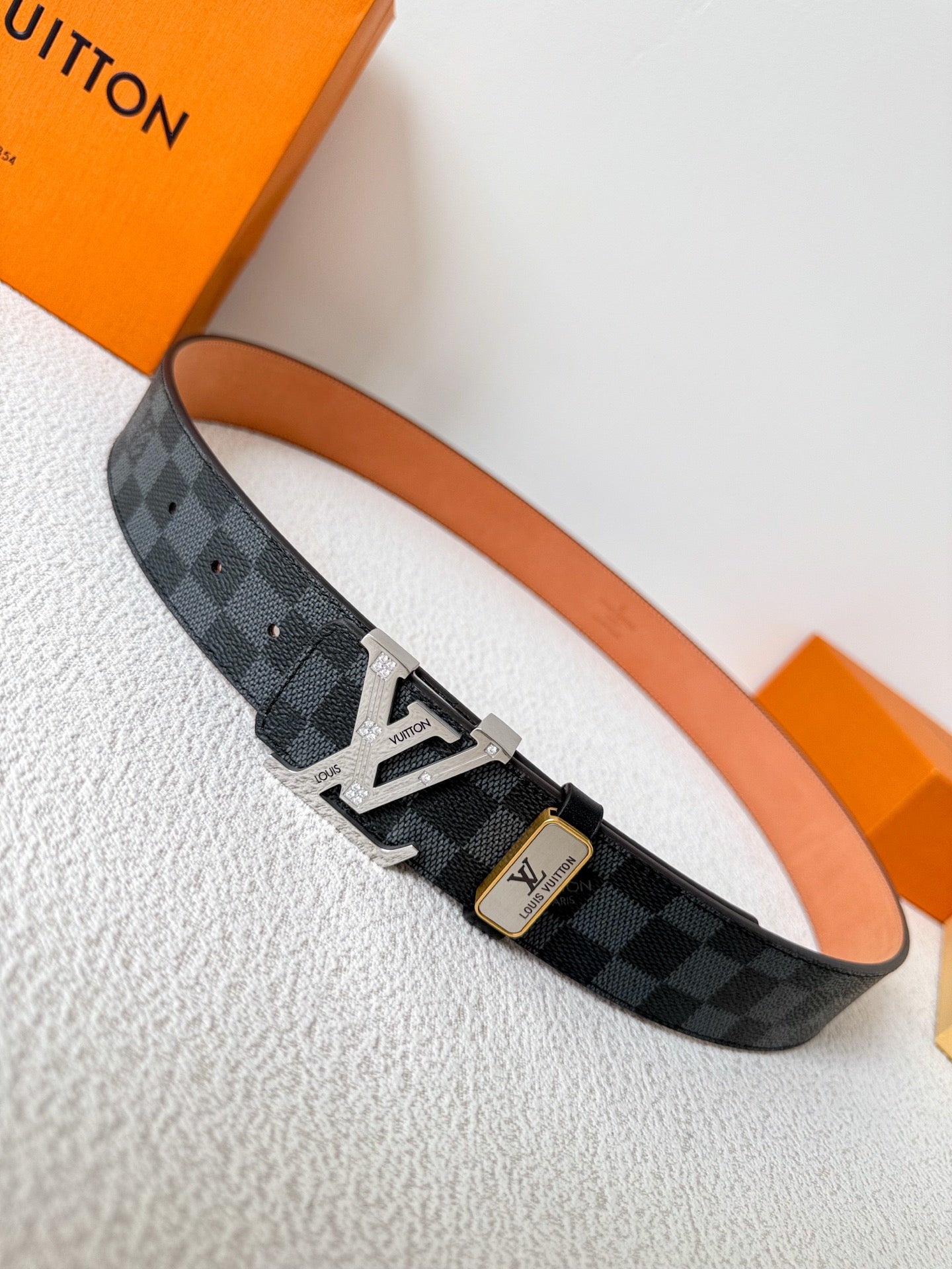 BELT 38MM REVERSIBLE IN BLACK GREY DAMIER CALFSKIN WITH SILVER BUCKLE CRYSTALS
