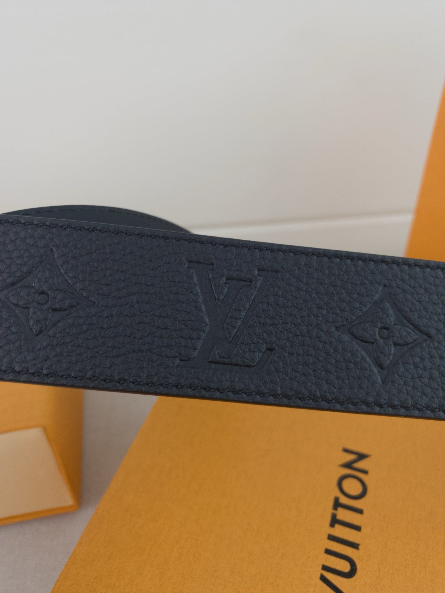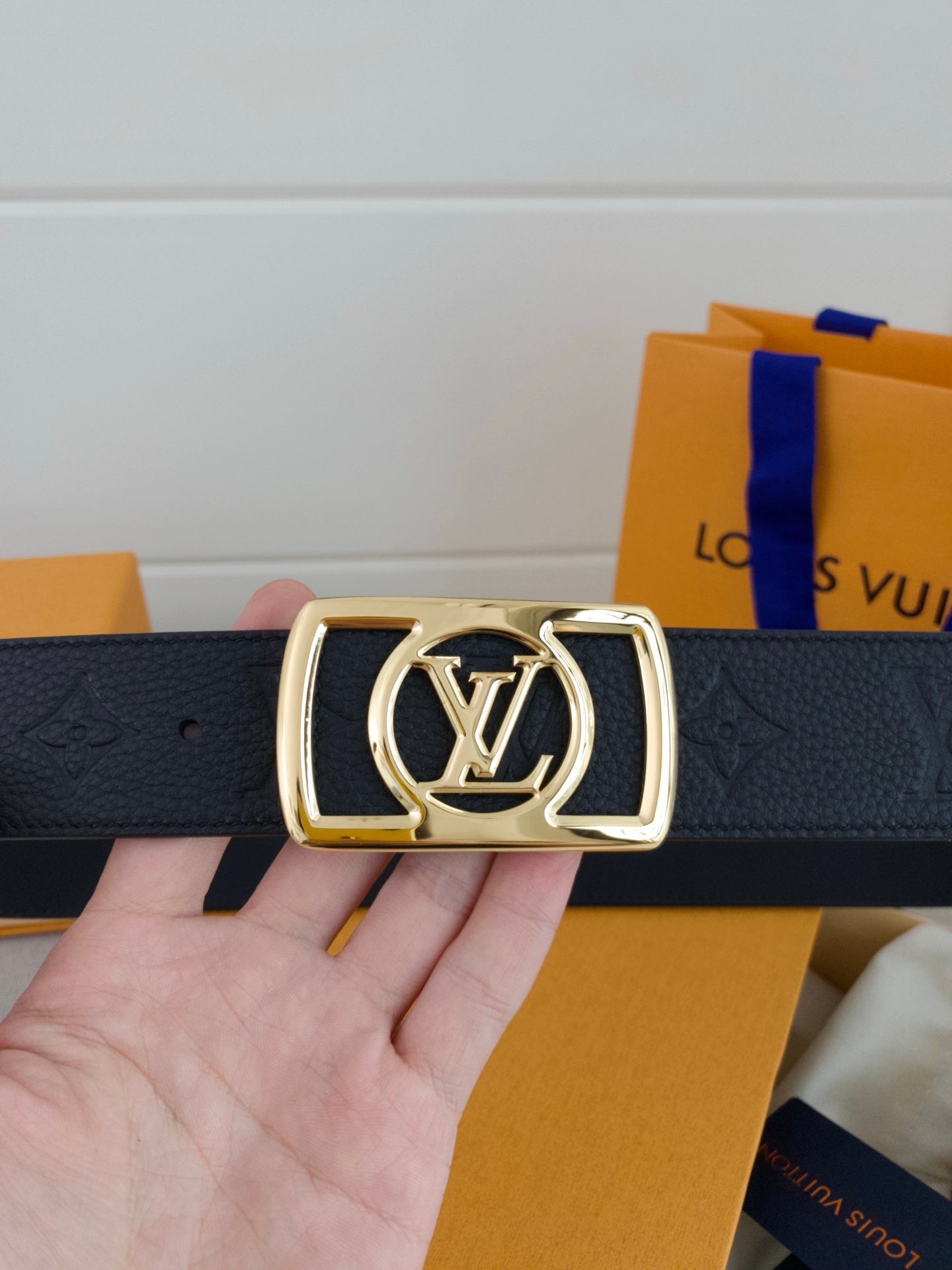 BELT 40MM IN BLACK TAURILLON CALFSKIN WITH EMBOSSED LOGO AND GOLD BUCKLE WITH ROUND LOGO CENTER
