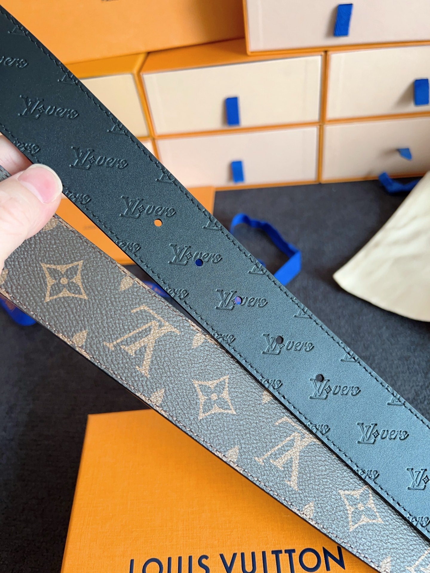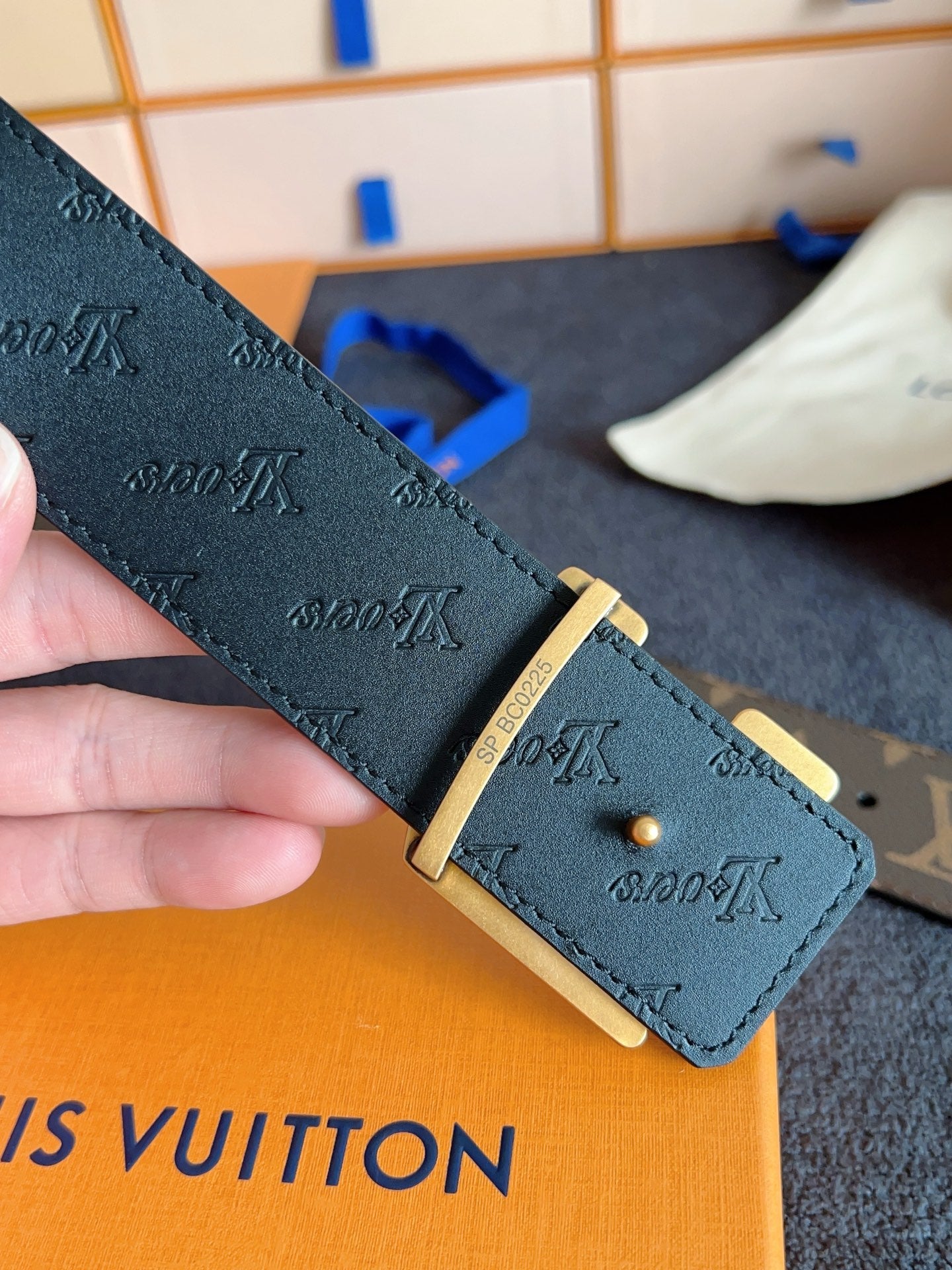 BELT 40MM IN BROWN GRAINED CALFSKIN EMBOSSED LOGO GOLD BUCKLE