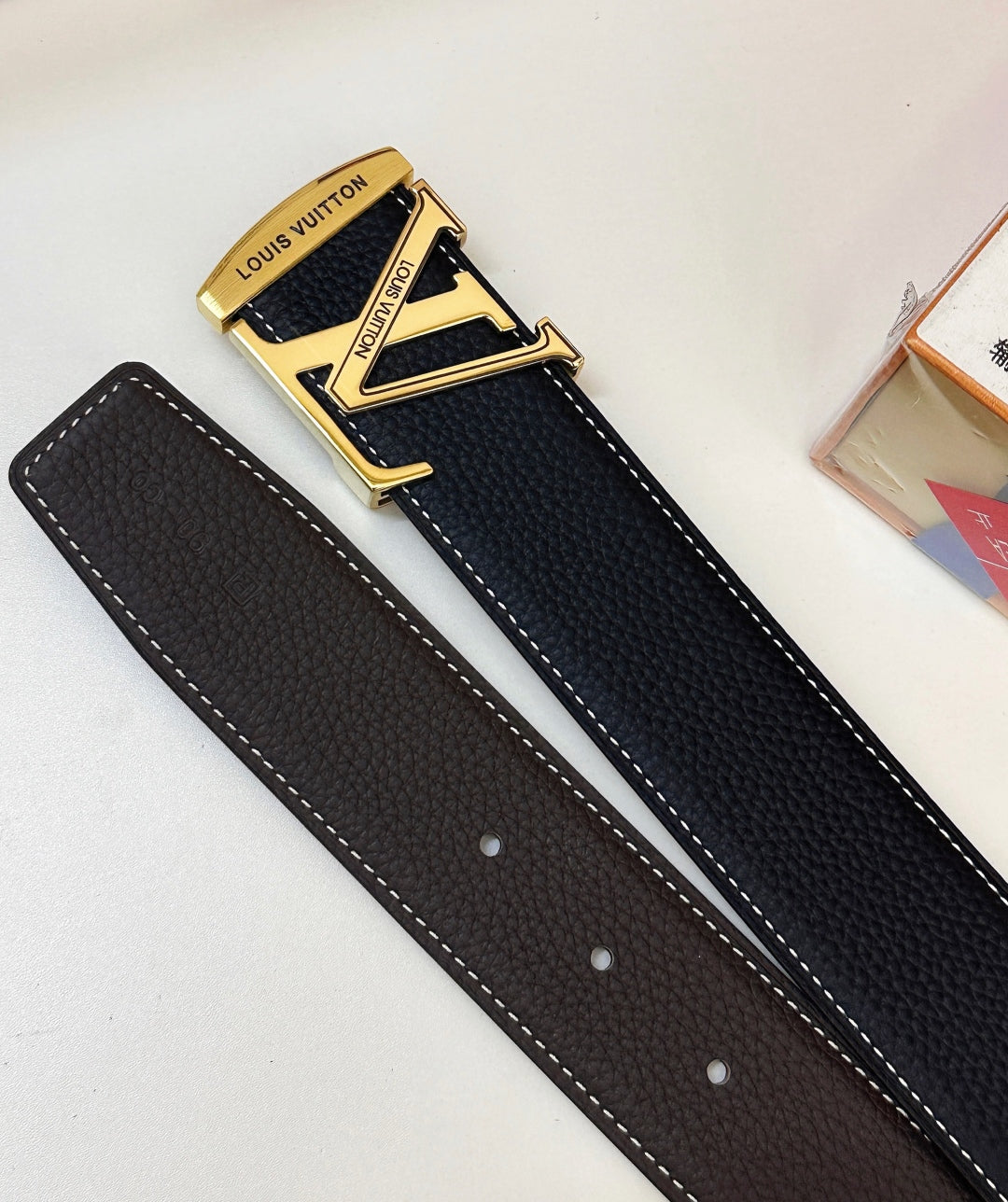 BELT 40MM REVERSIBLE IN BLACK CALFSKIN WITH HIDDEN GOLD BUCKLE DESIGN