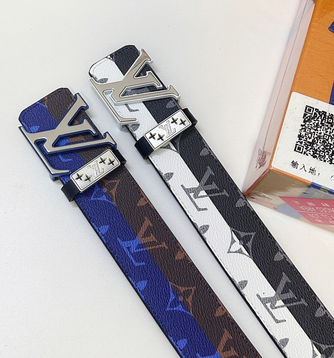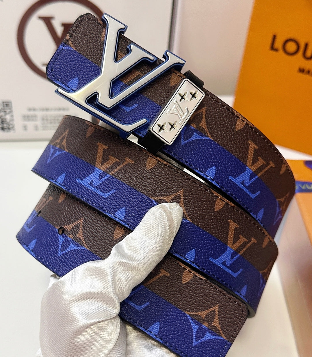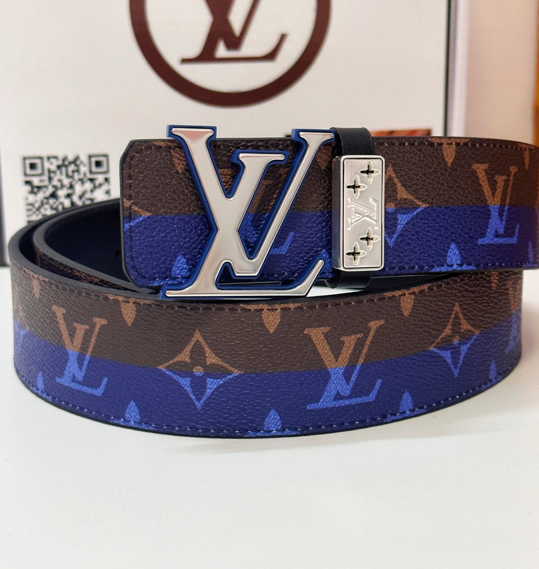 BELT 40MM REVERSIBLE IN BROWN AND BLUE CALFSKIN PRINTED MONOGRAM SILVER BUCKLE