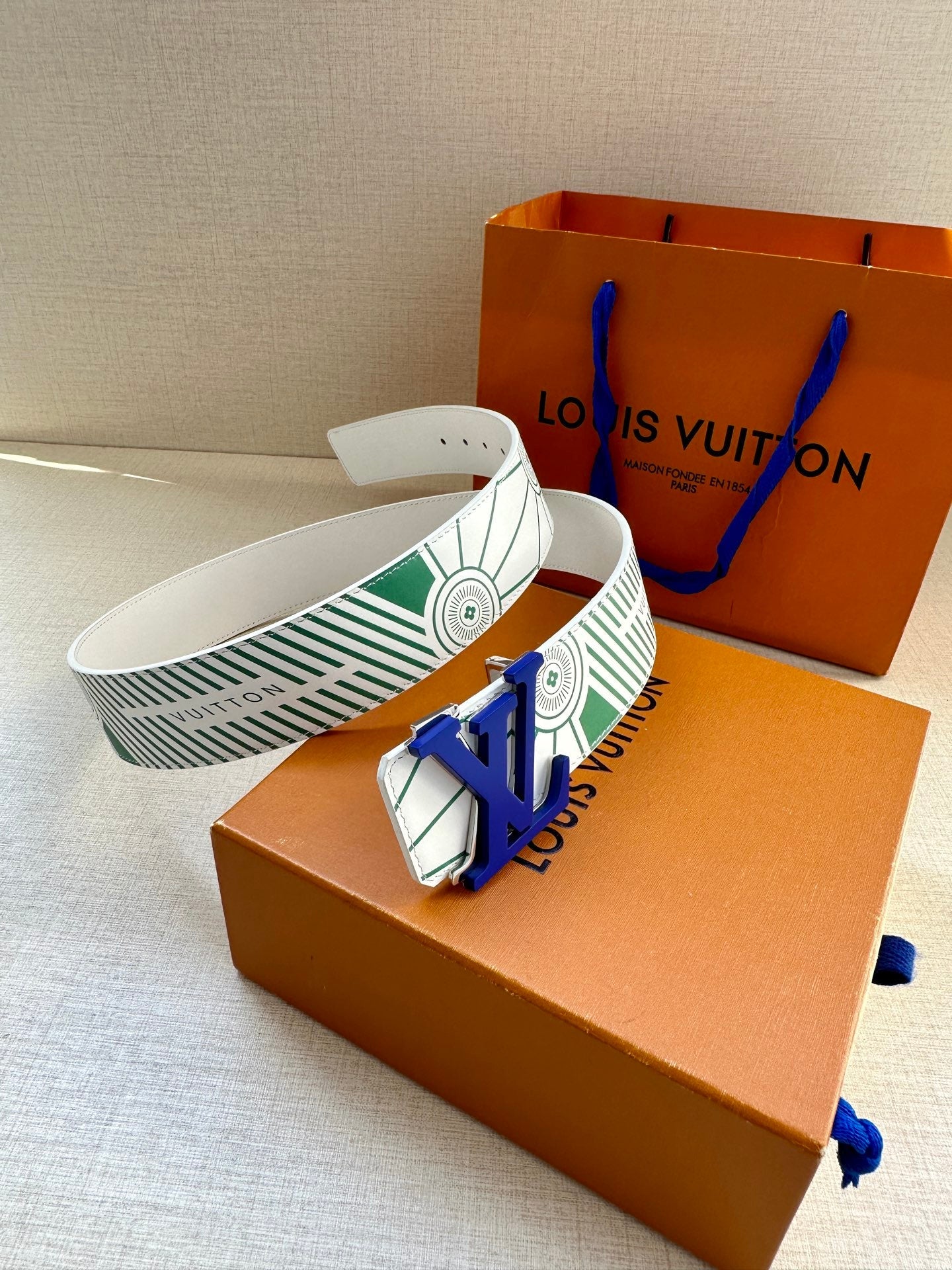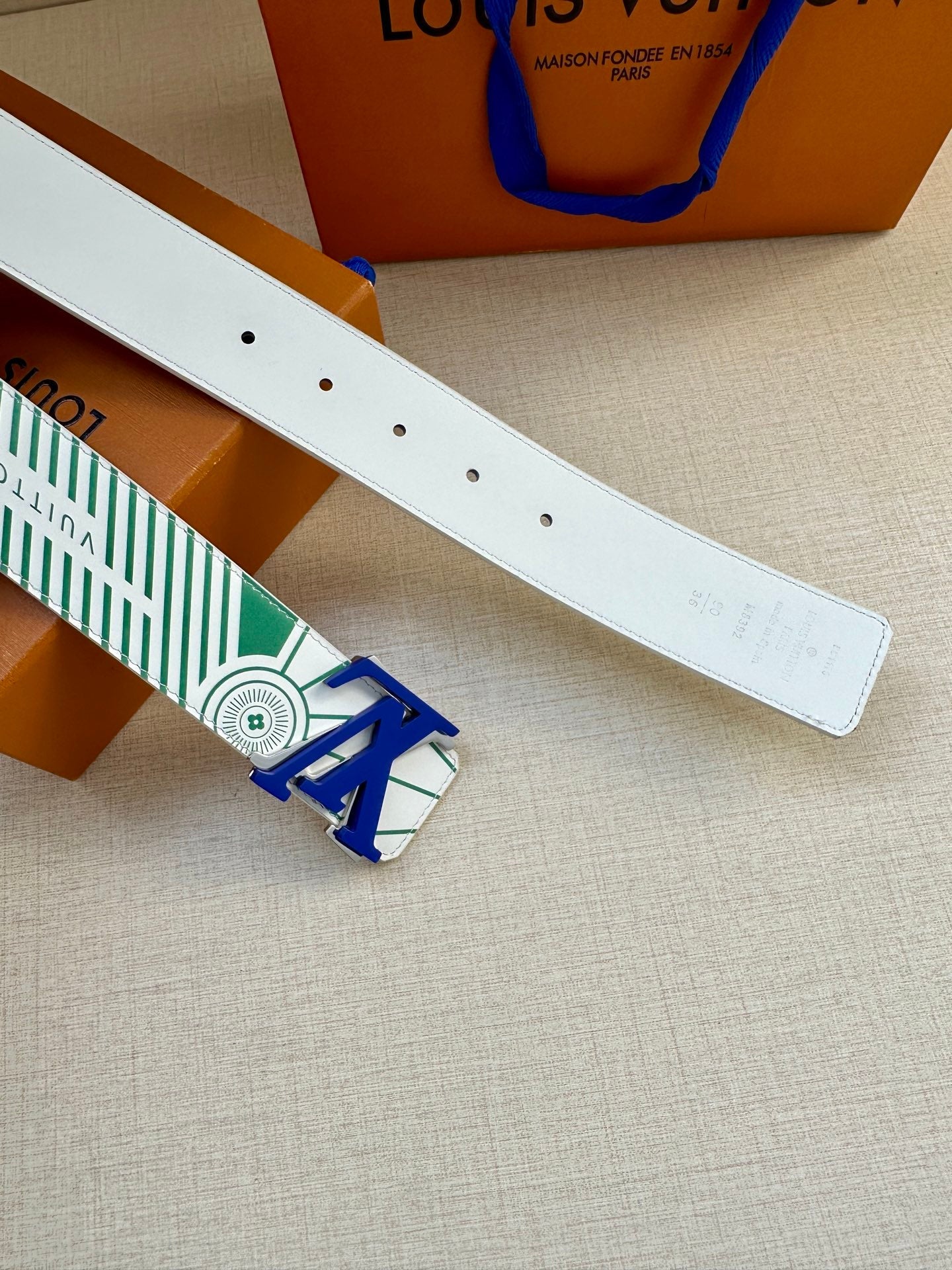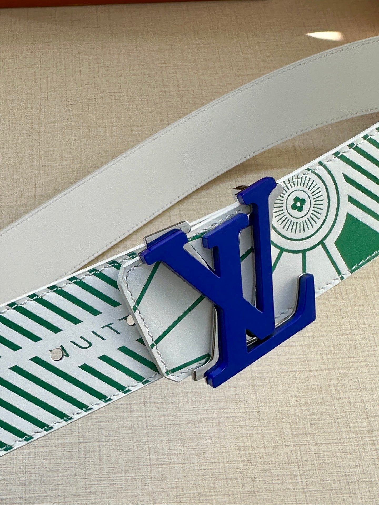 BELT IMPRINT 40MM REVERSIBLE IN WHITE AND GREEN CALFSKIN BLUE GRADIENT BUCKLE