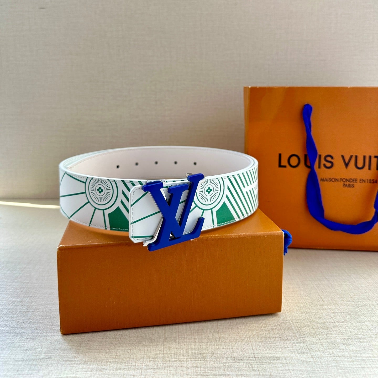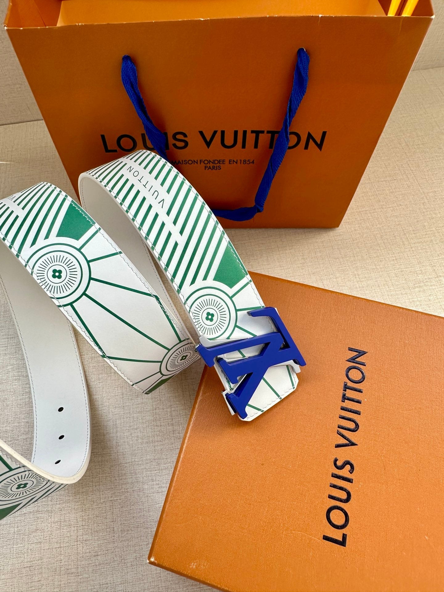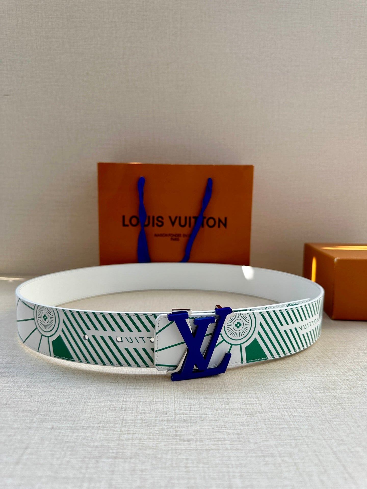 BELT IMPRINT 40MM REVERSIBLE IN WHITE AND GREEN CALFSKIN BLUE GRADIENT BUCKLE
