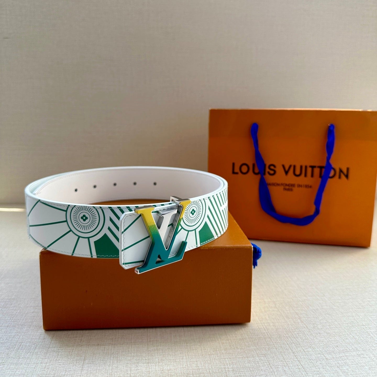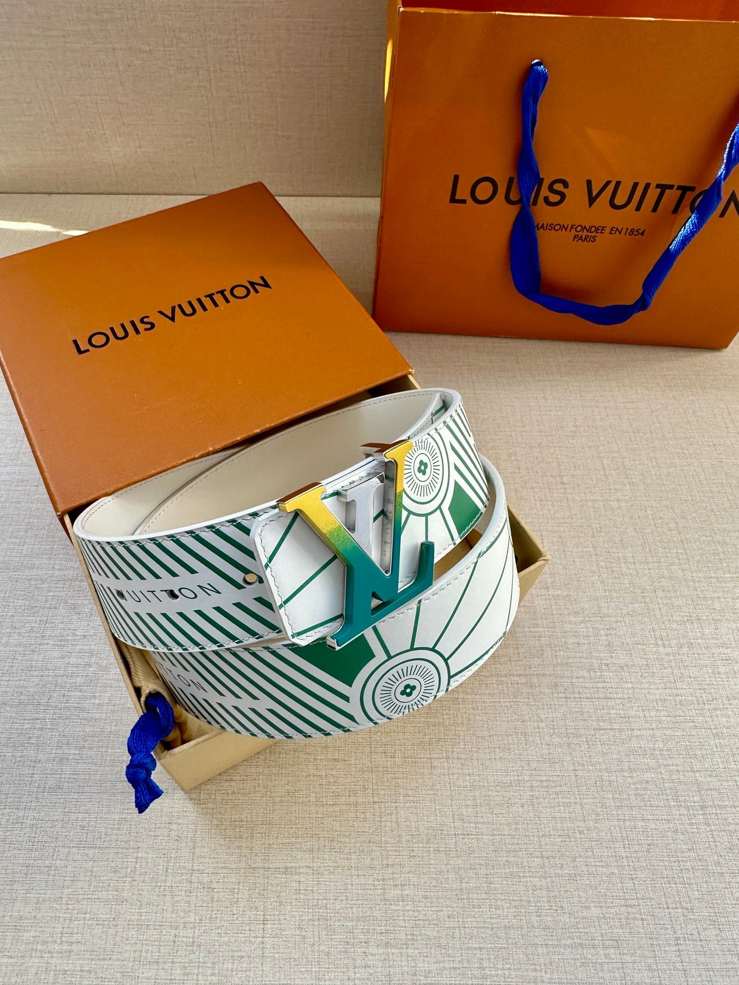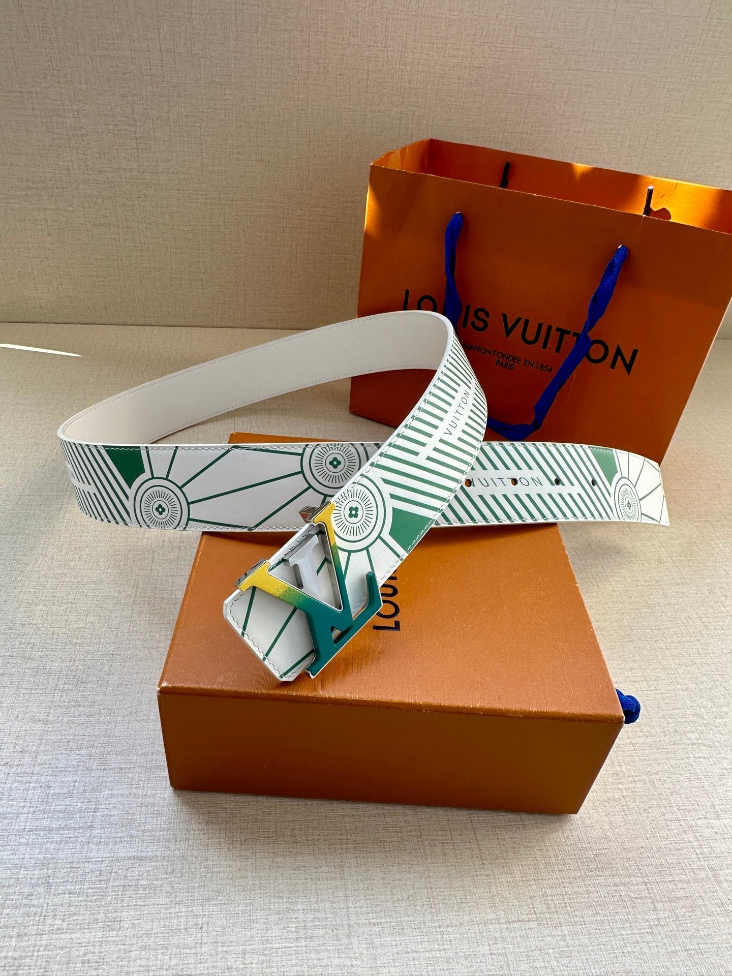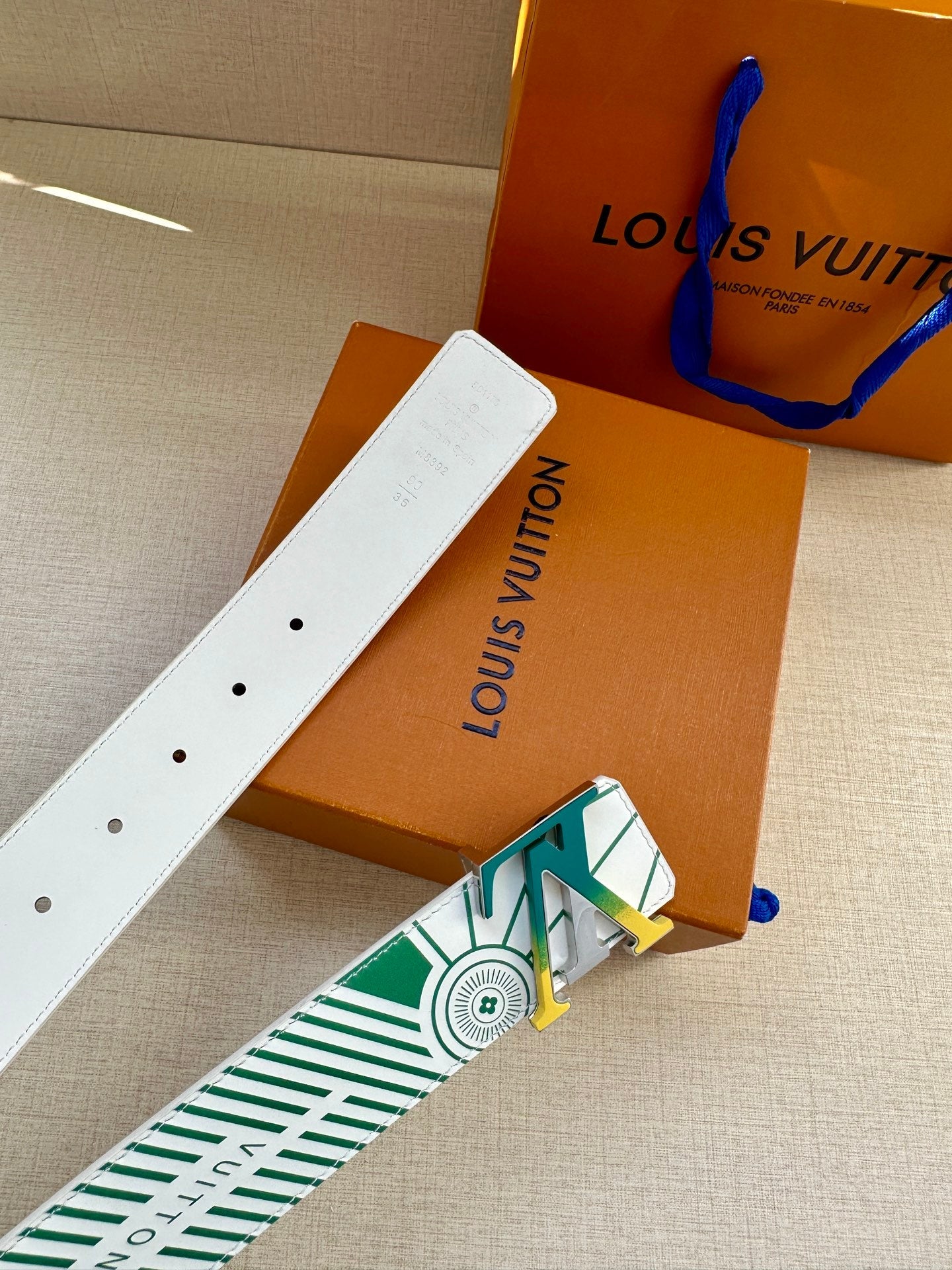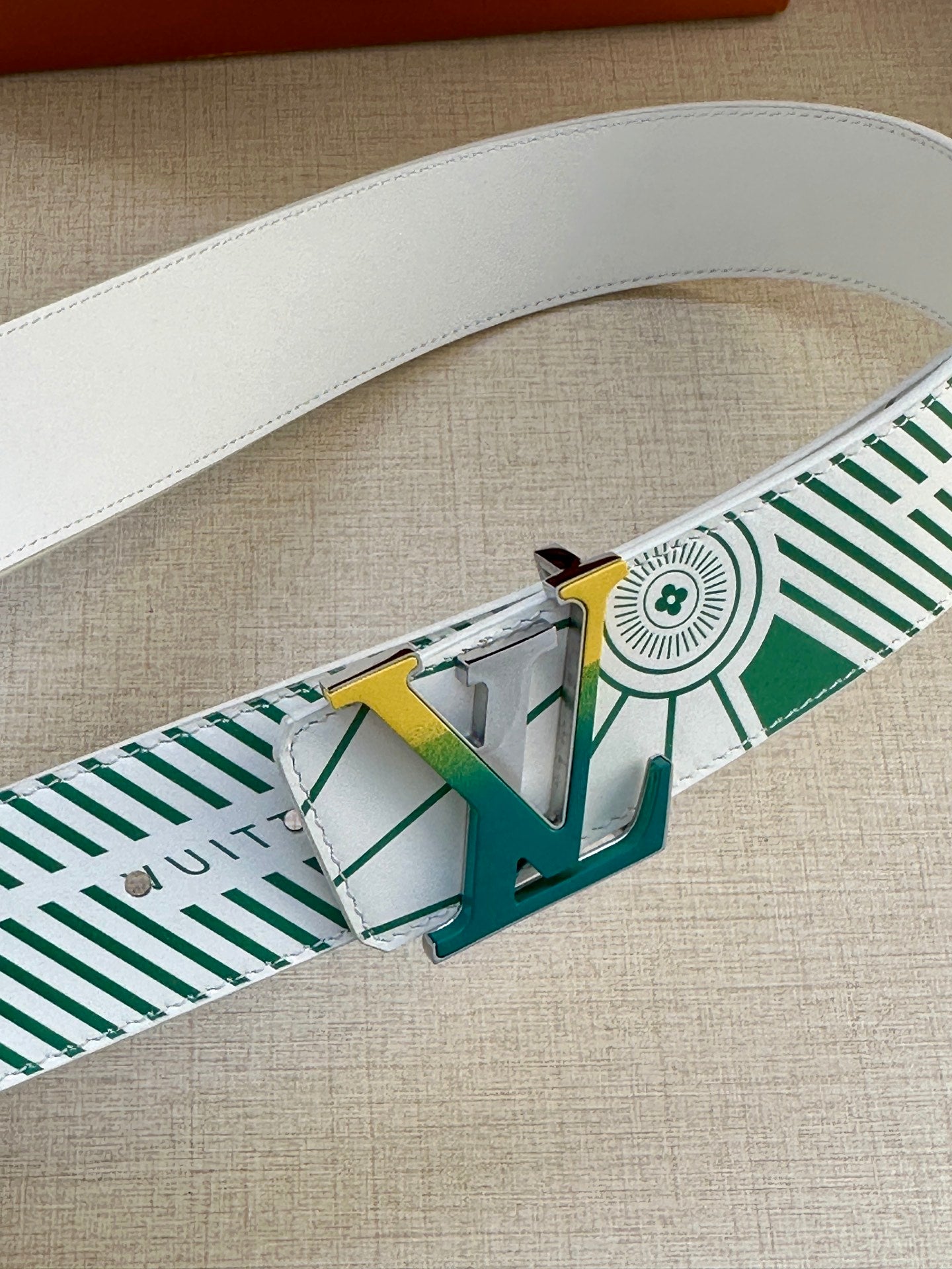 BELT IMPRINT 40MM REVERSIBLE IN WHITE AND GREEN CALFSKIN WITH YELLOW TO GREEN GRADIENT BUCKLE