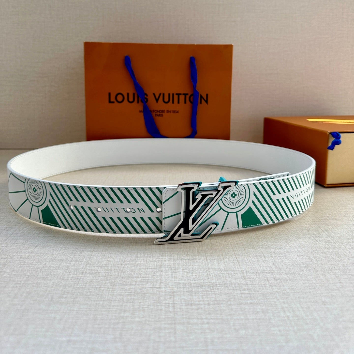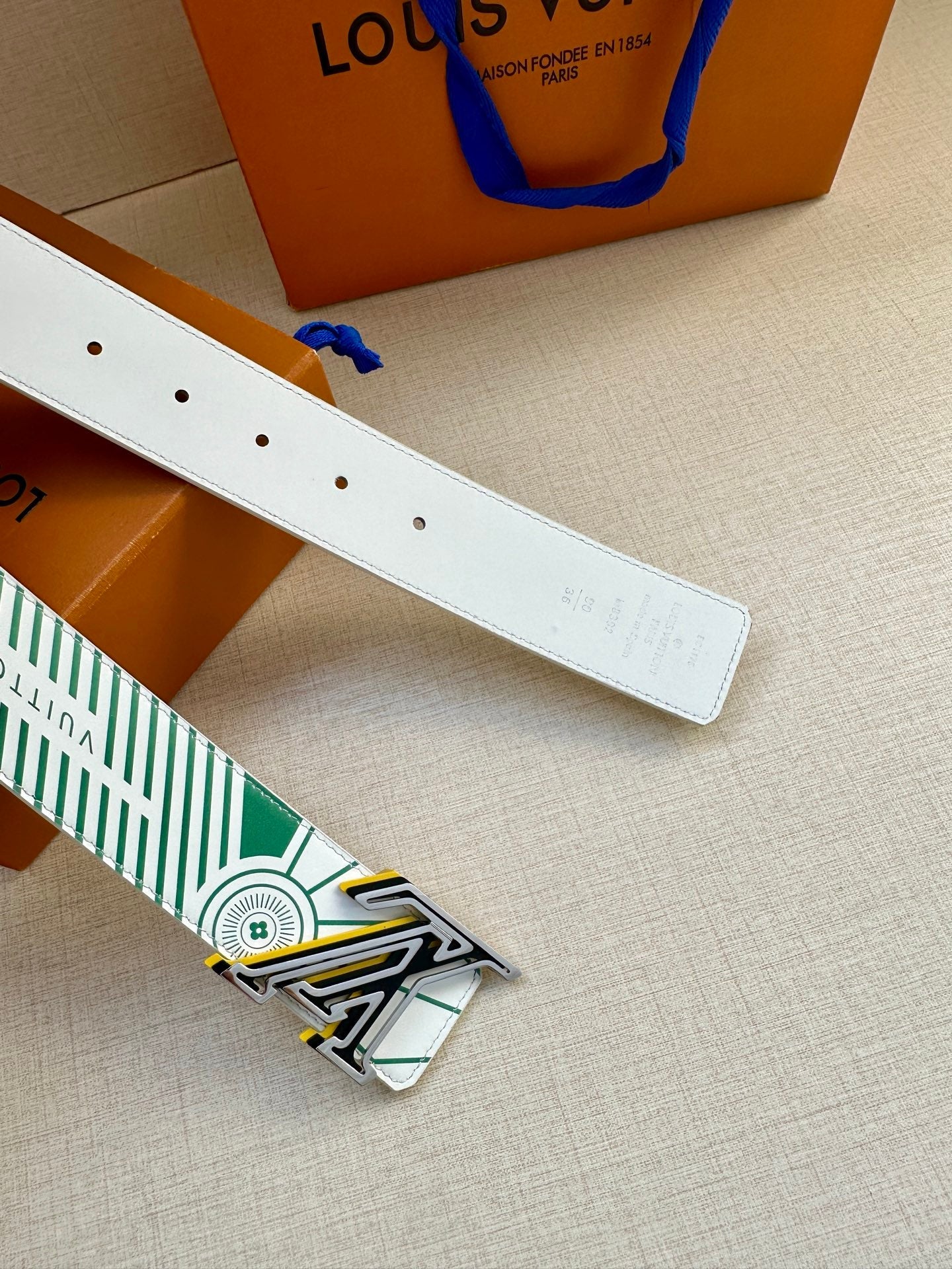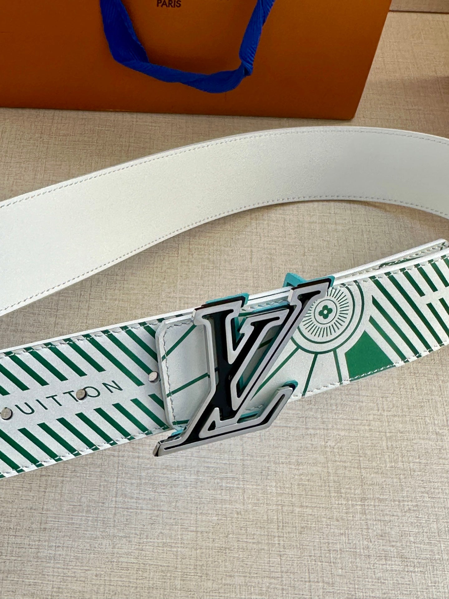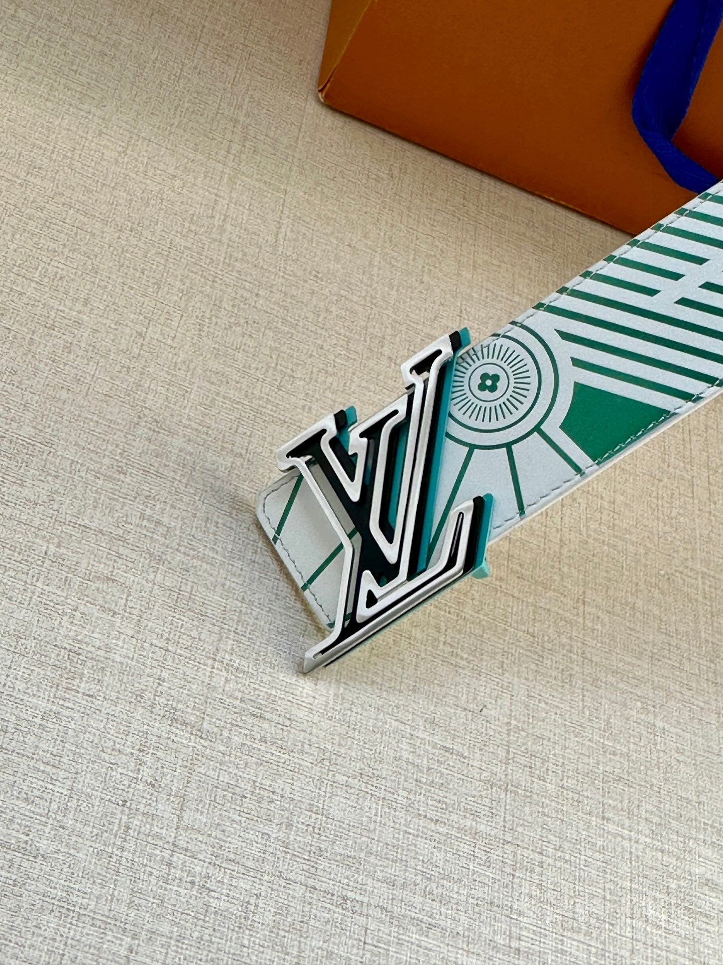 BELT IMPRINT 40MM REVERSIBLE IN WHITE AND GREEN DIAGONAL EMBOSSED CALFSKIN WITH SILVER AND BLACK BUCKLE