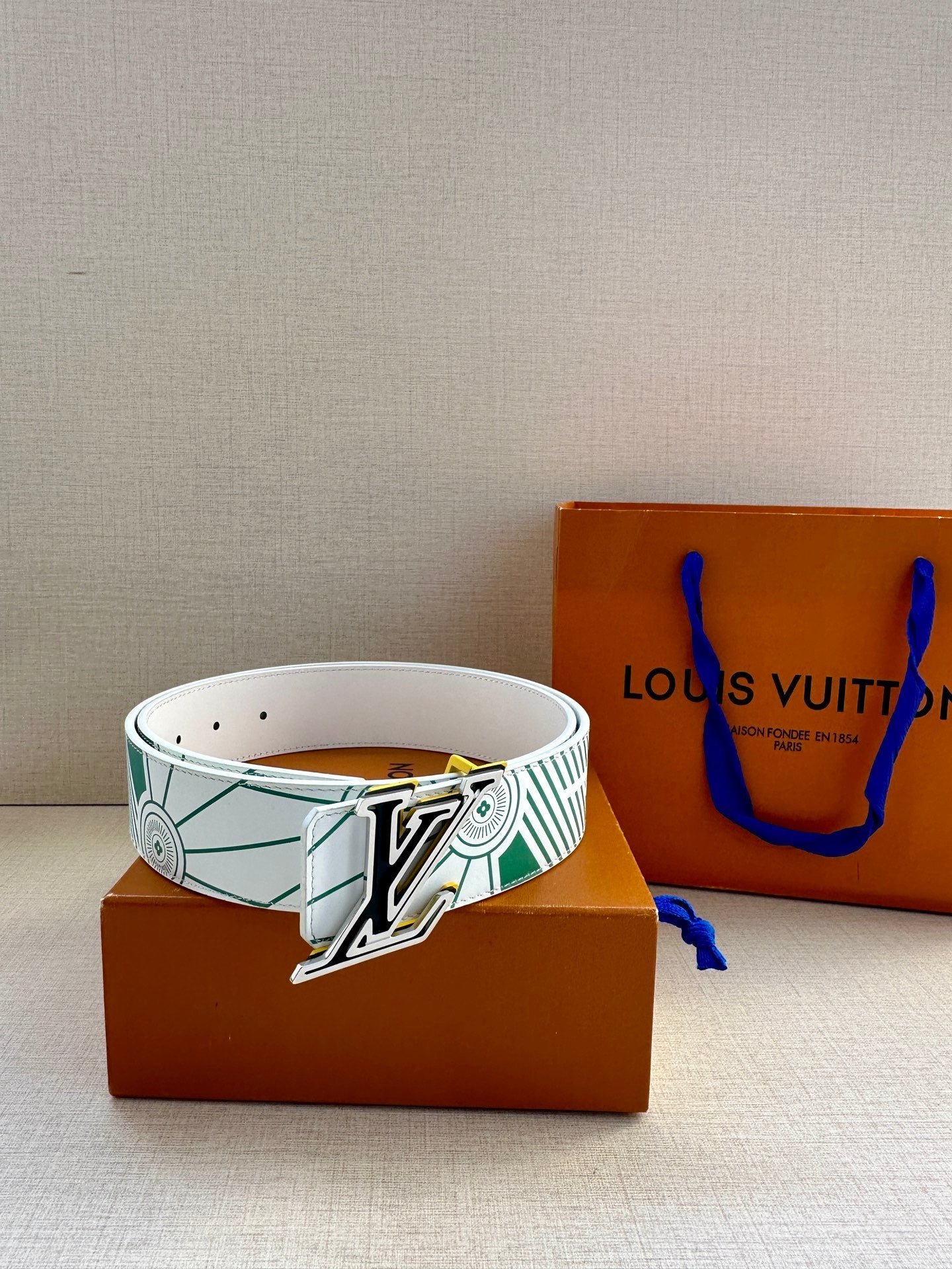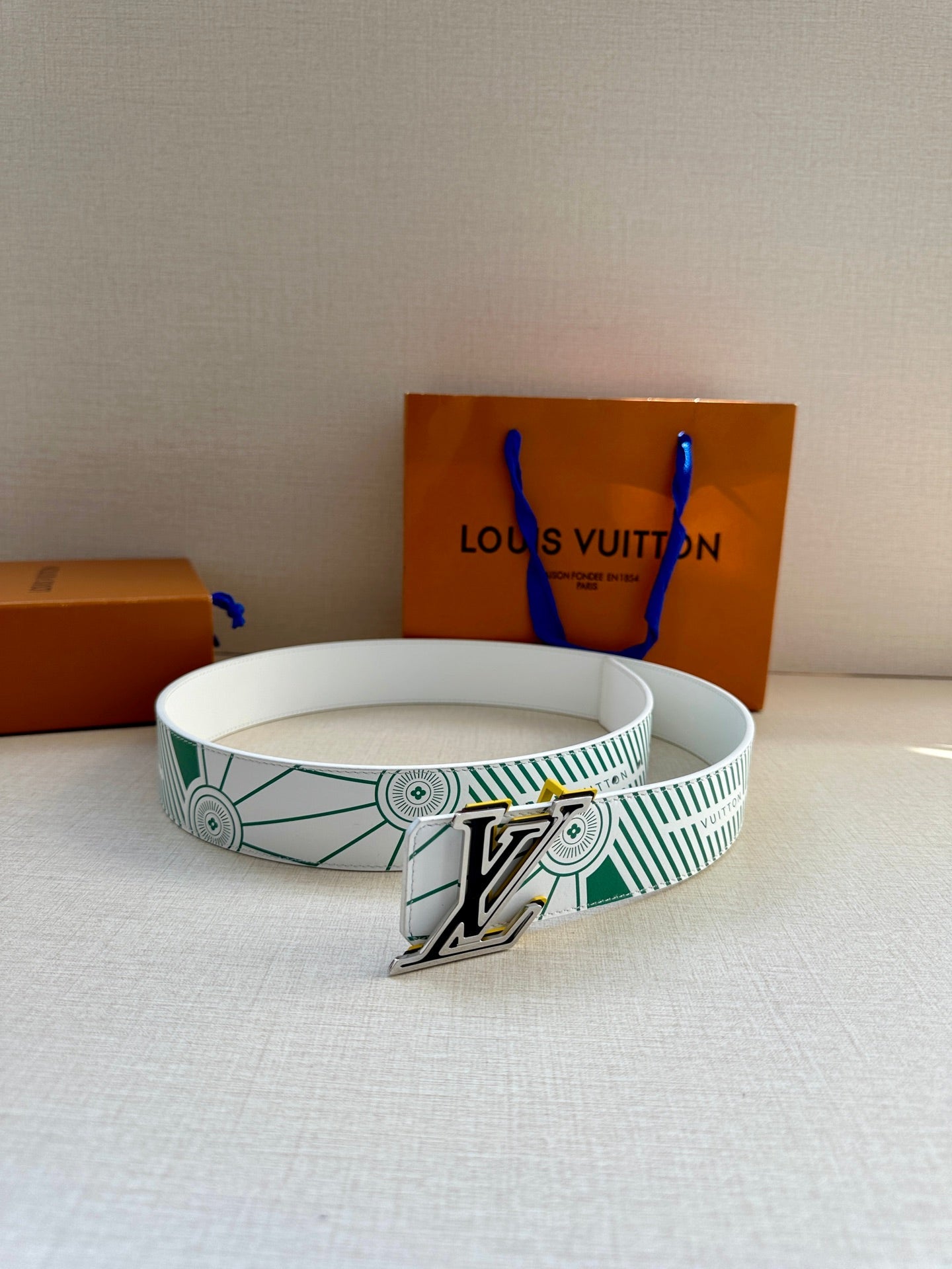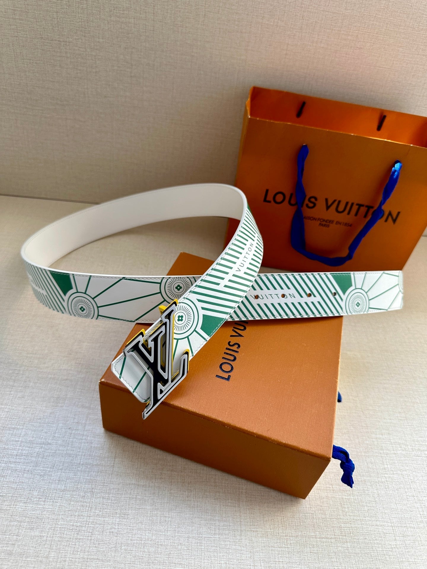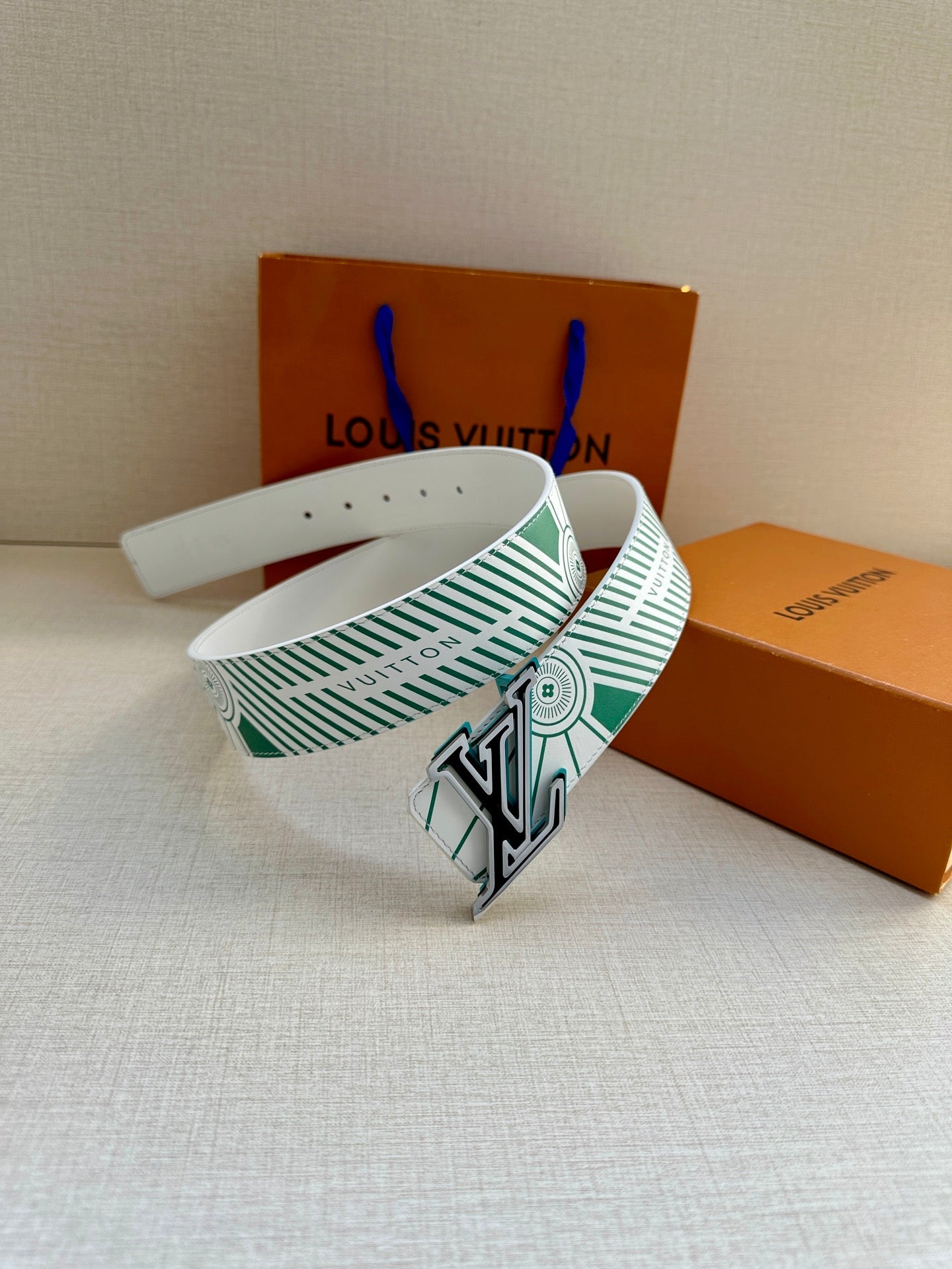 BELT IMPRINT 40MM REVERSIBLE IN WHITE AND GREEN DIAGONAL EMBOSSED CALFSKIN WITH SILVER AND BLACK BUCKLE