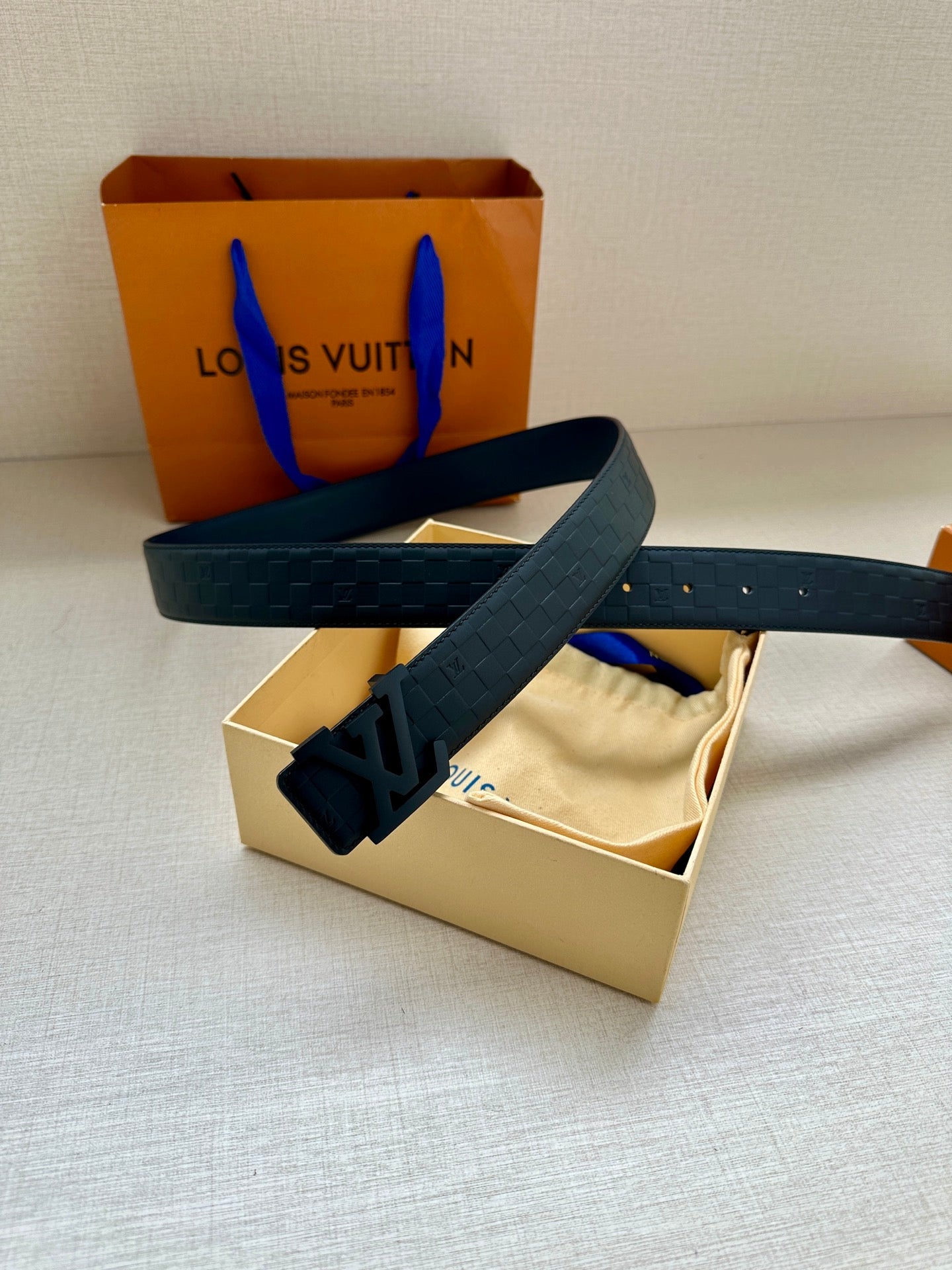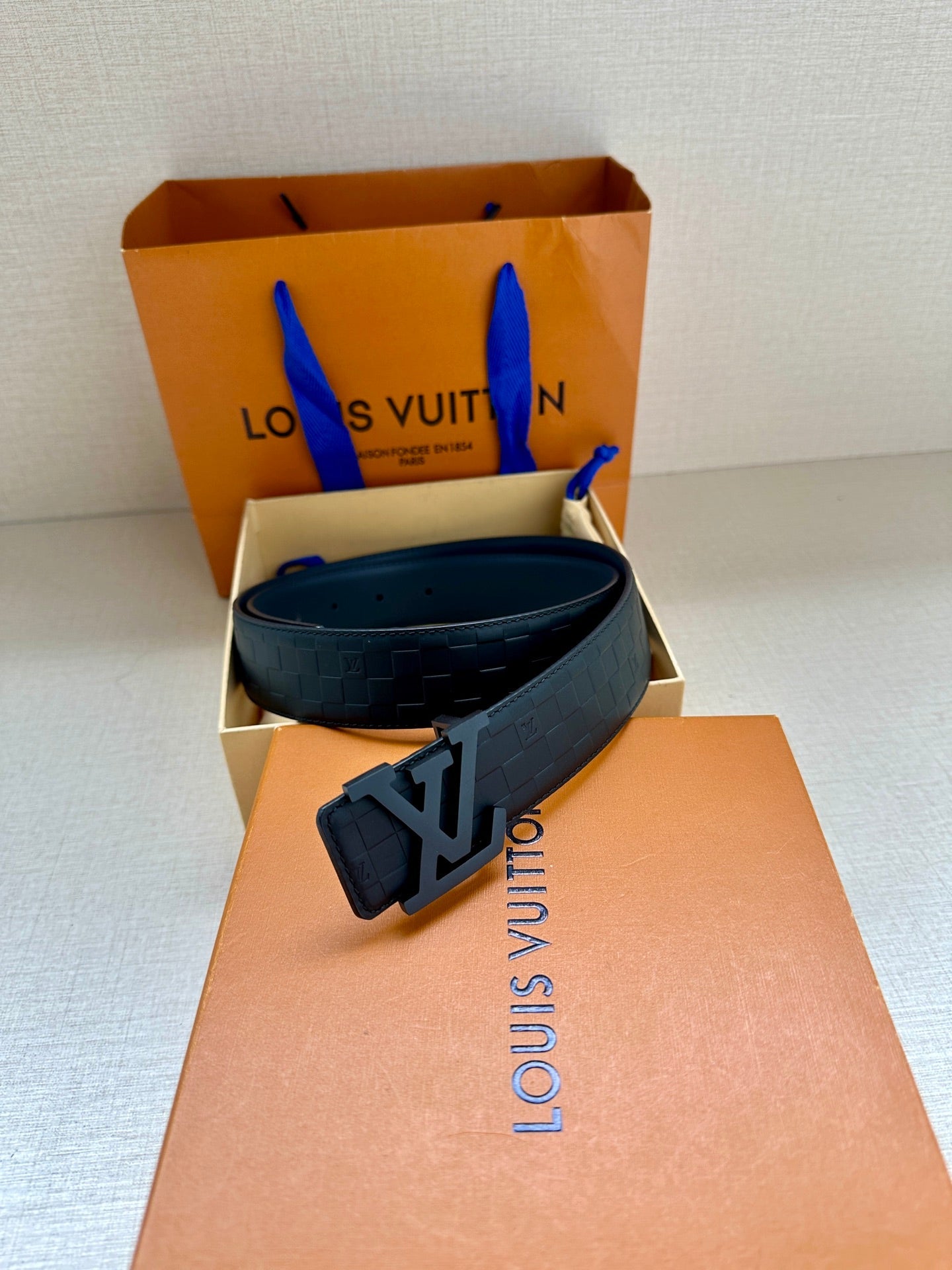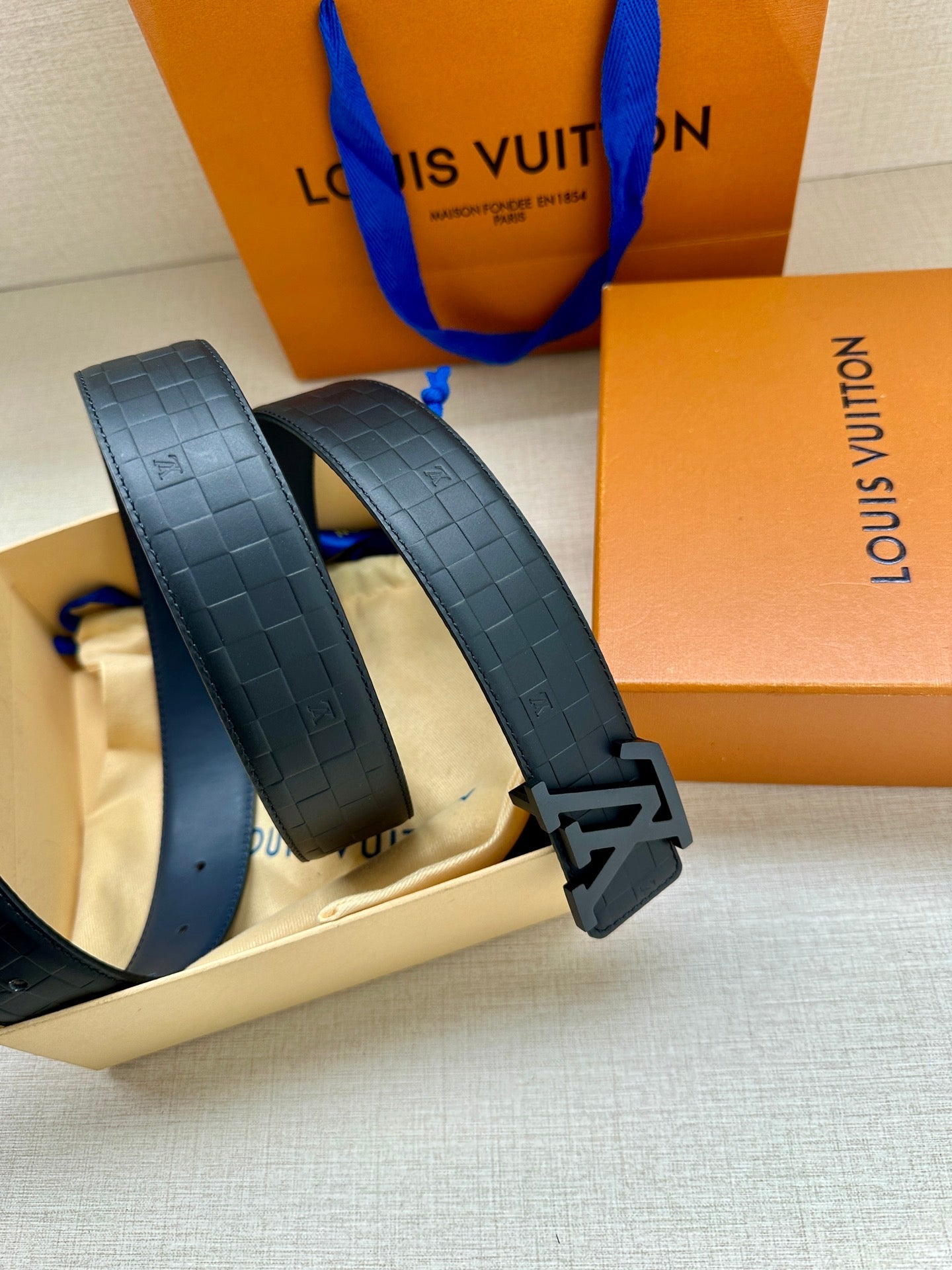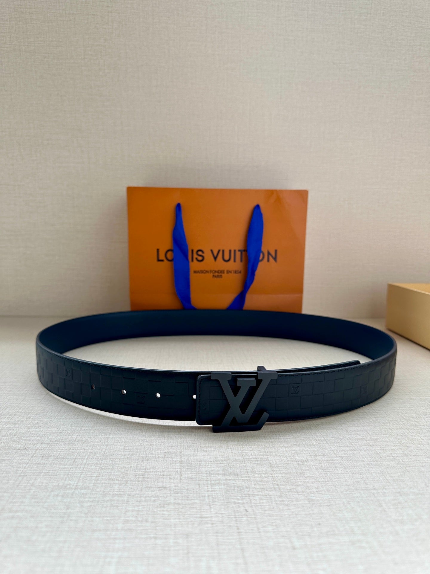 BELT PYRAMIDE GLITTER 34MM IN BLACK DAMIER CANVAS AND BLACK SMOOTH LEATHER WITH BLACK BUCKLE