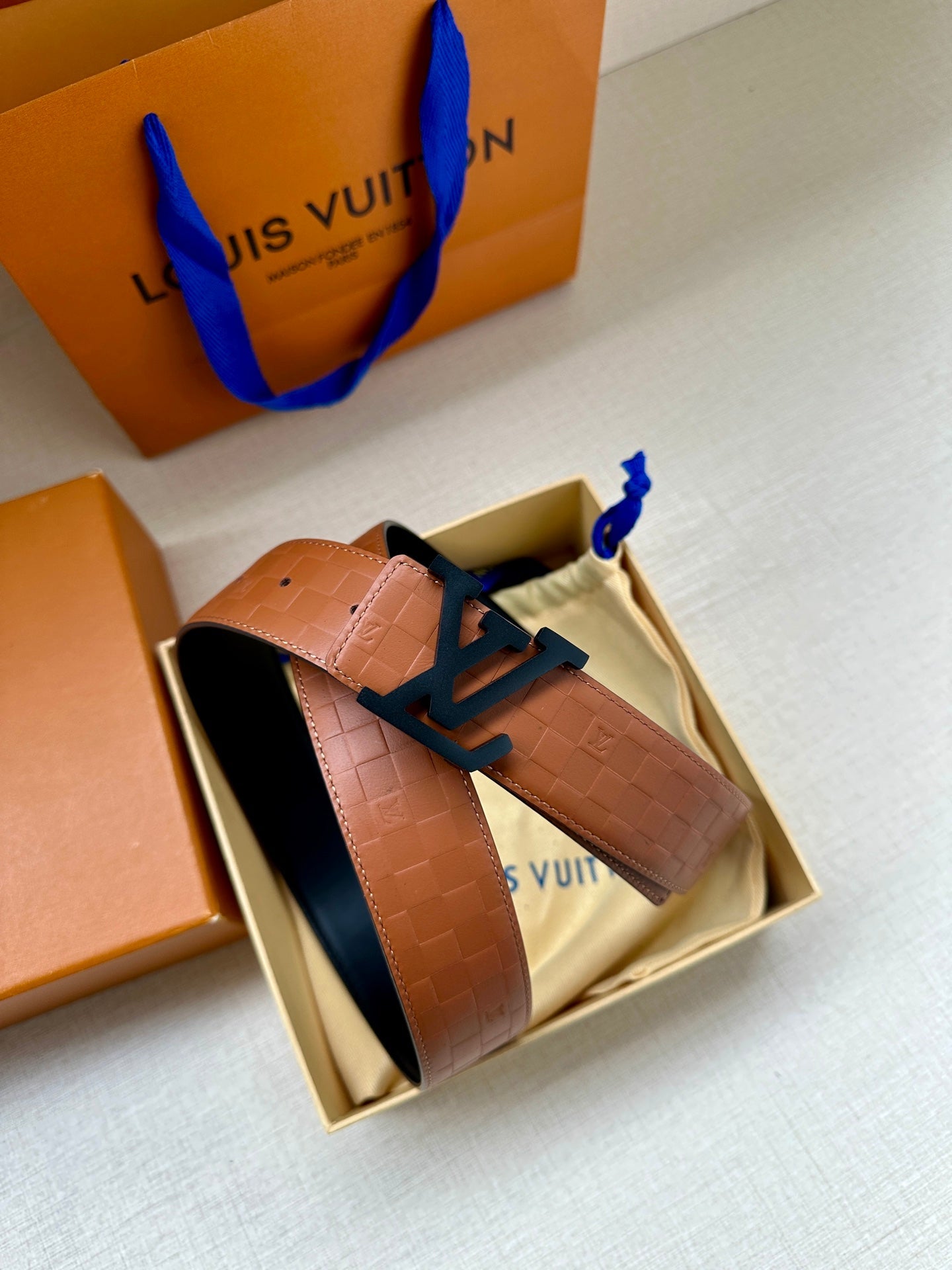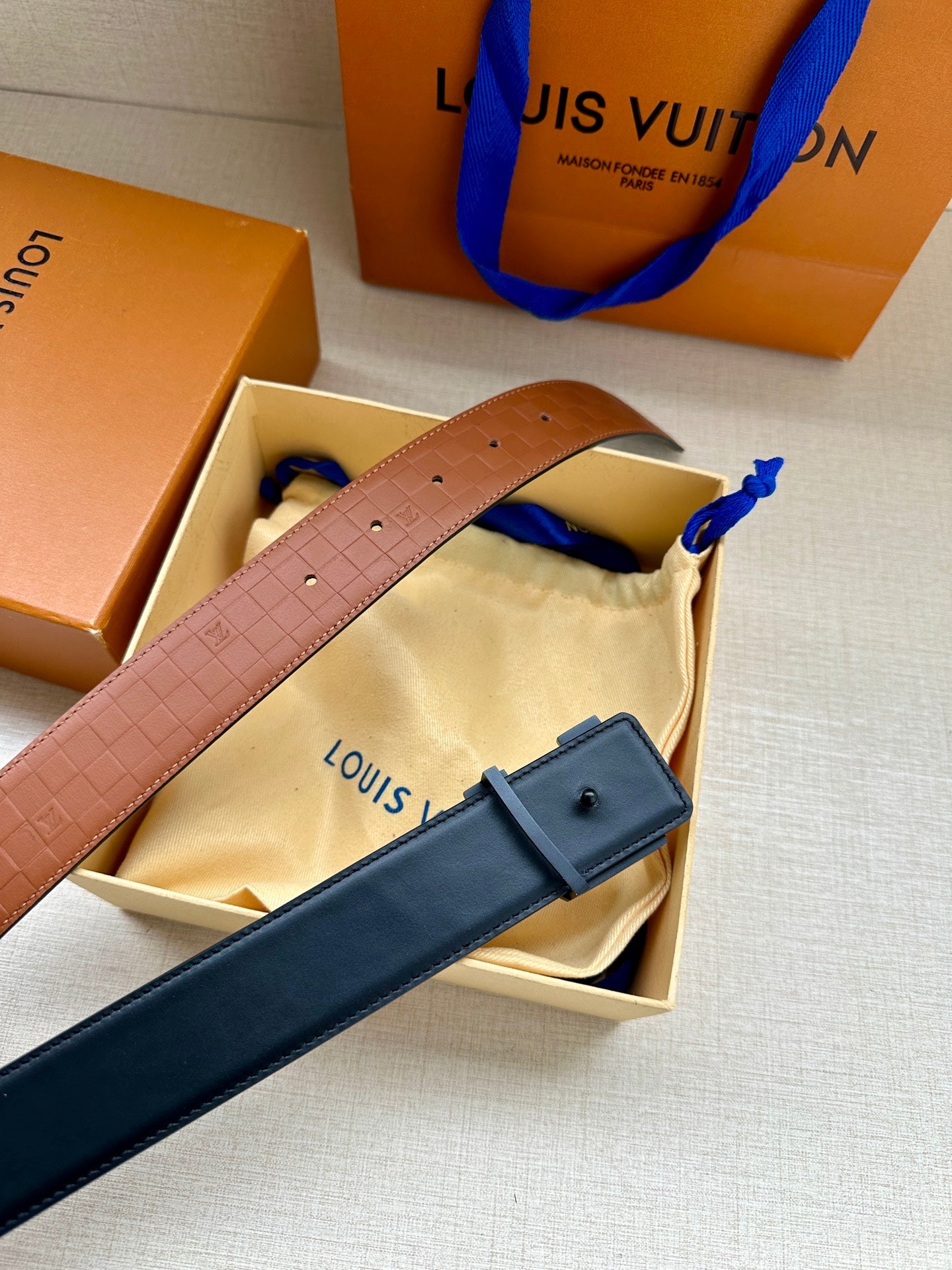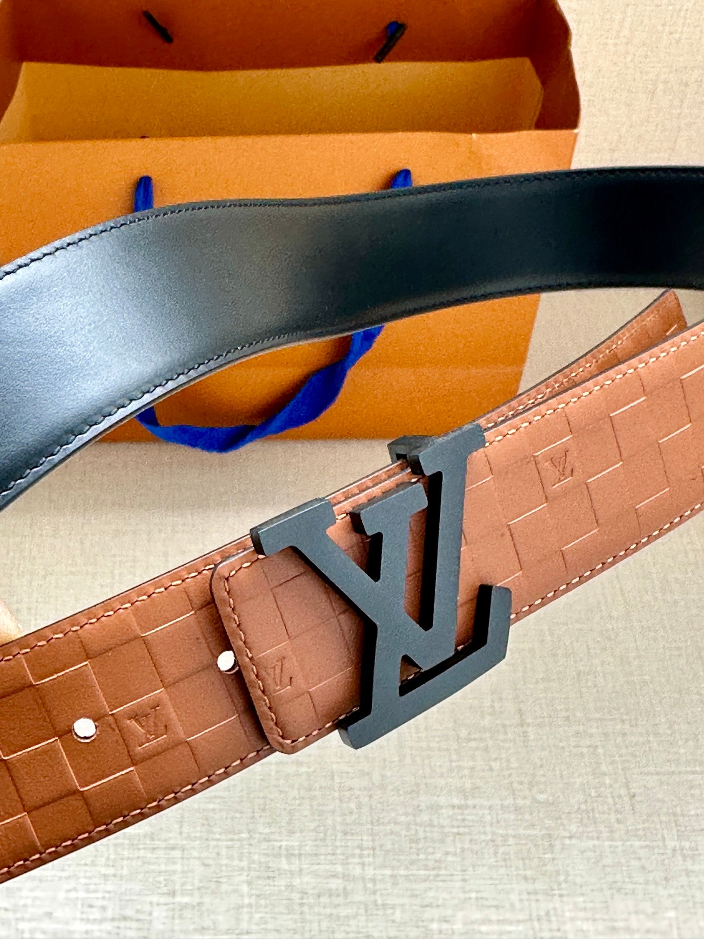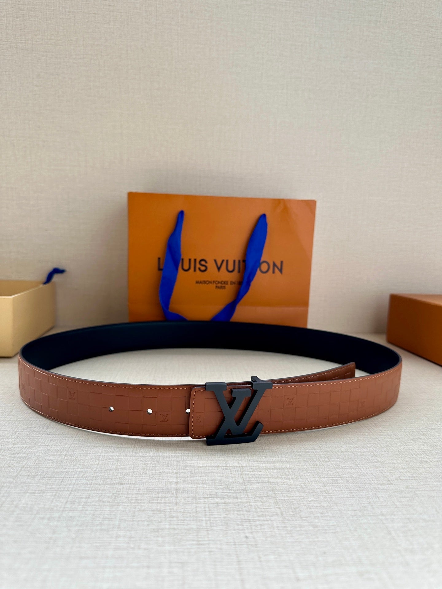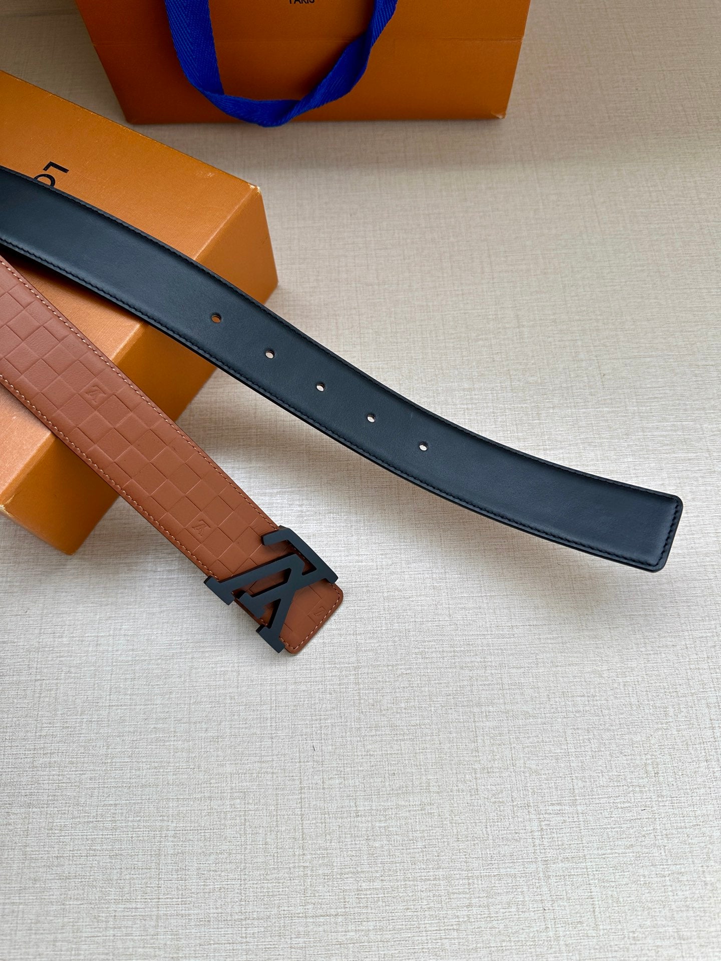 BELT PYRAMIDE GLITTER 34MM REVERSIBLE IN BROWN DAMIER BLACK LEATHER WITH BLACK BUCKLE