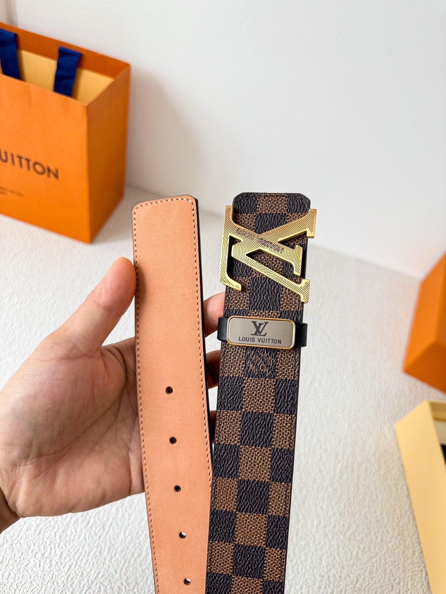 BELT SQUARE BUCKLE 38MM REVERSIBLE IN BLACK AND BROWN CALFSKIN GOLD PLATED BUCKLE