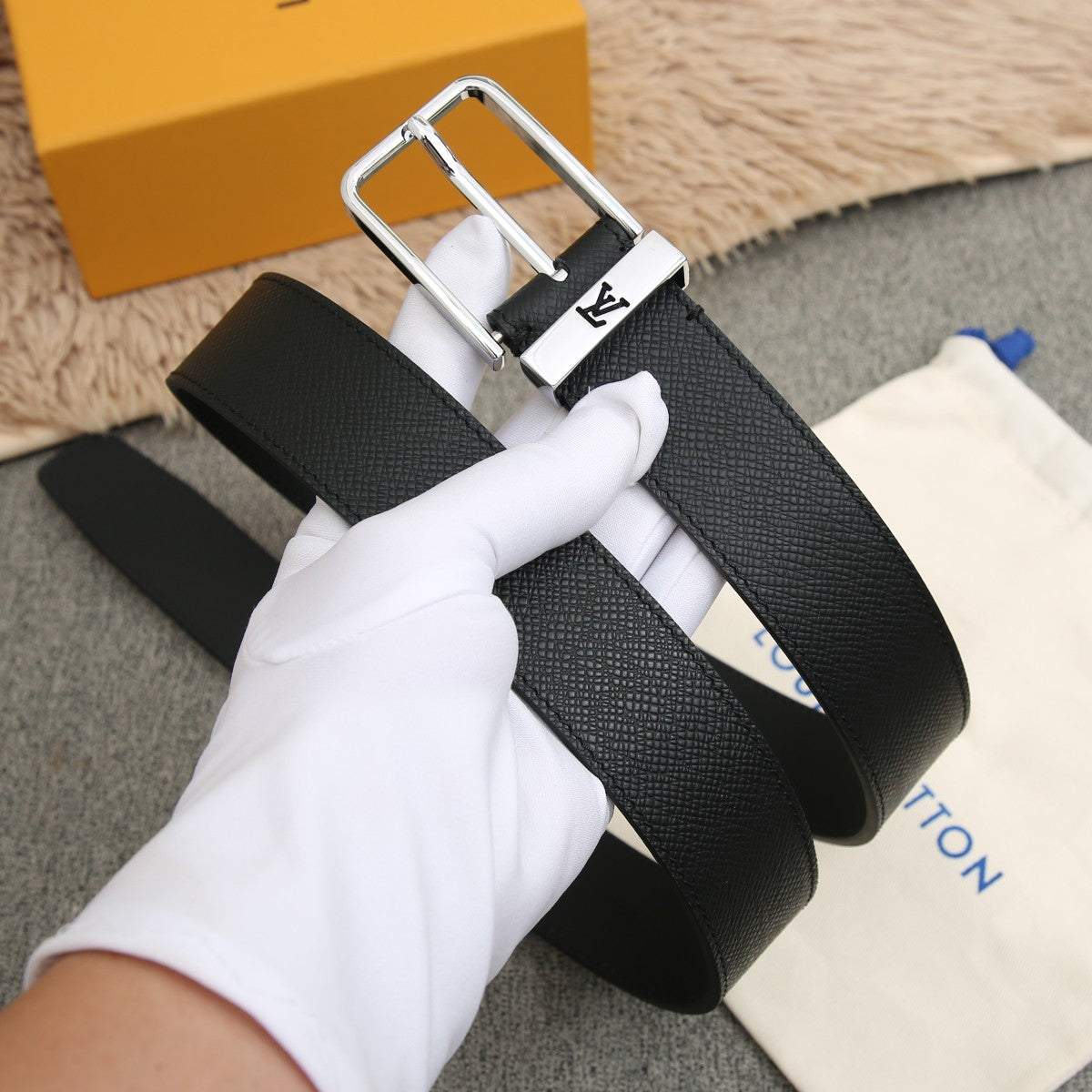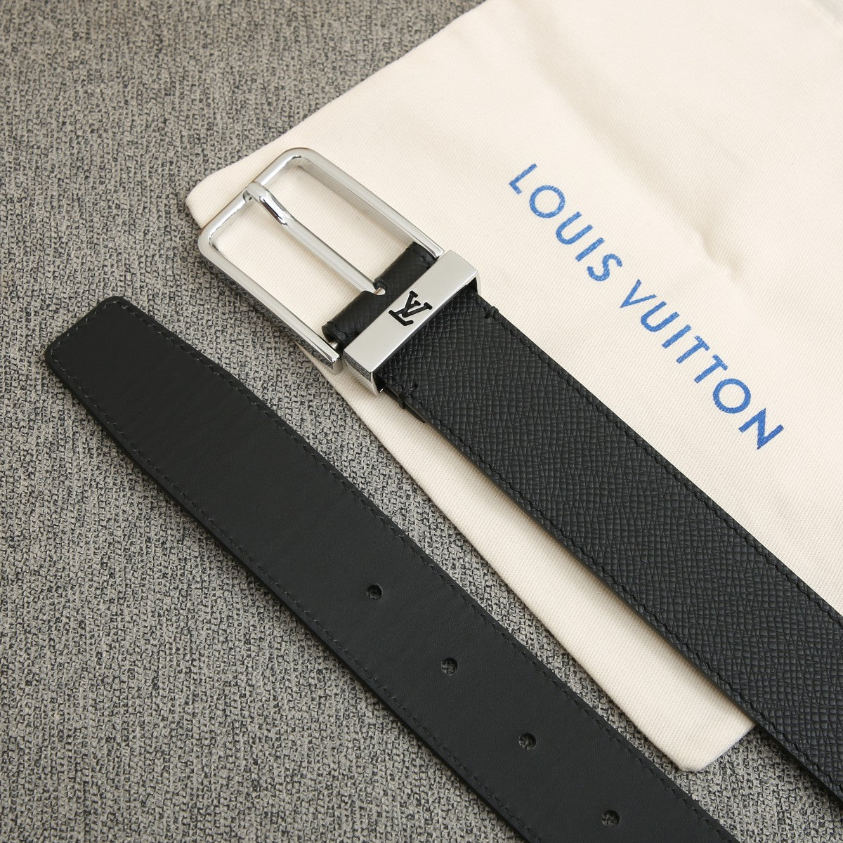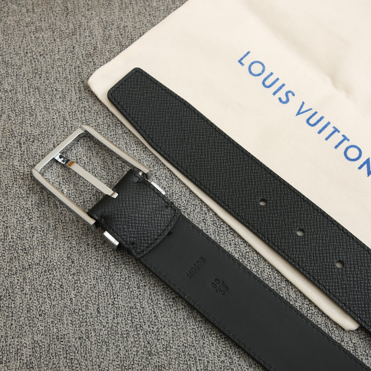 BELT VENDOME 35CM IN BLACK SMOOTH CALFSKIN WITH SILVER LV LETTER BUCKLE