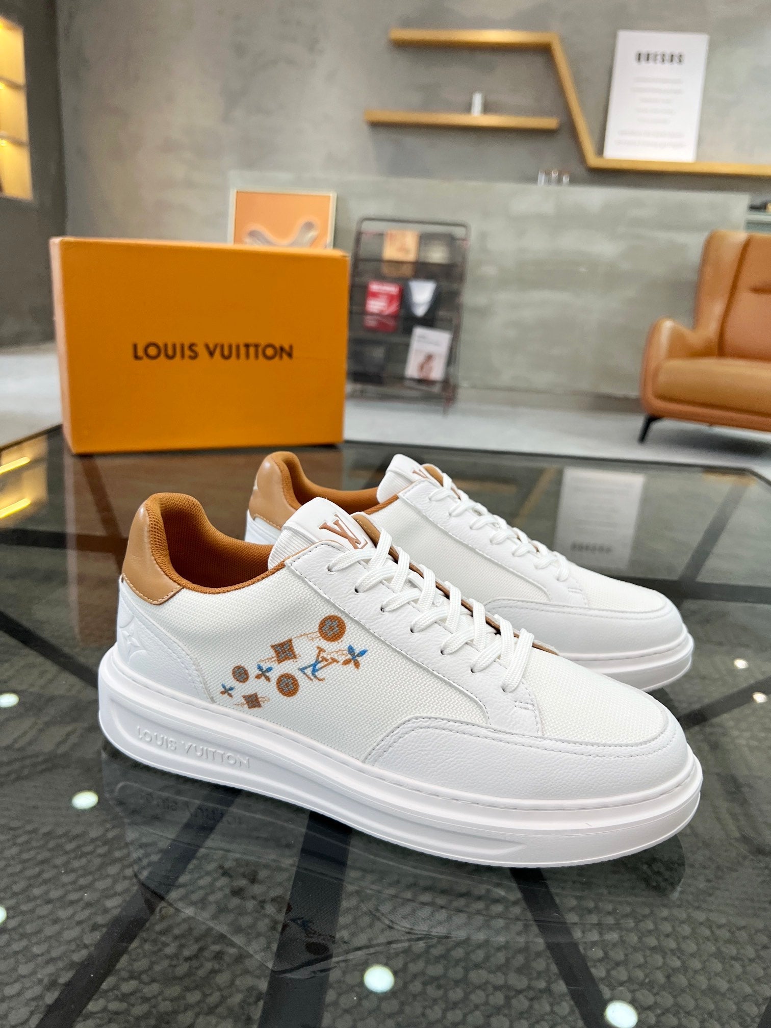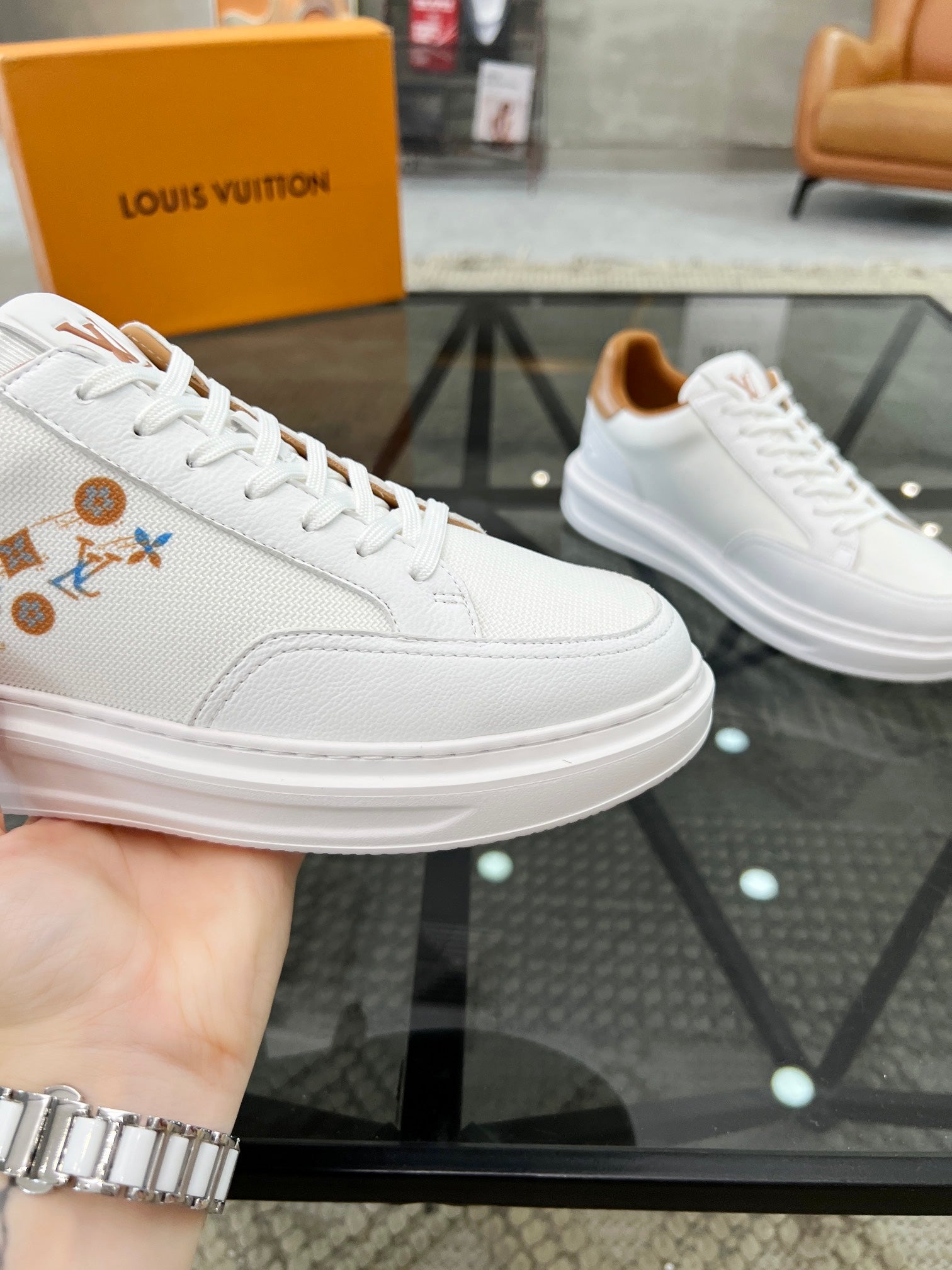 BEVERLY HILLS TRAINERS WHITE MIX BROWN CALFSKIN AND MESH FABRIC