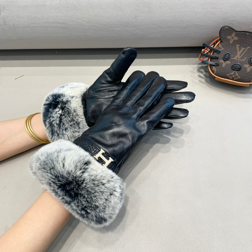 BIG H RABBIT FUR AND LAMBSKIN GLOVES BLACK 353541