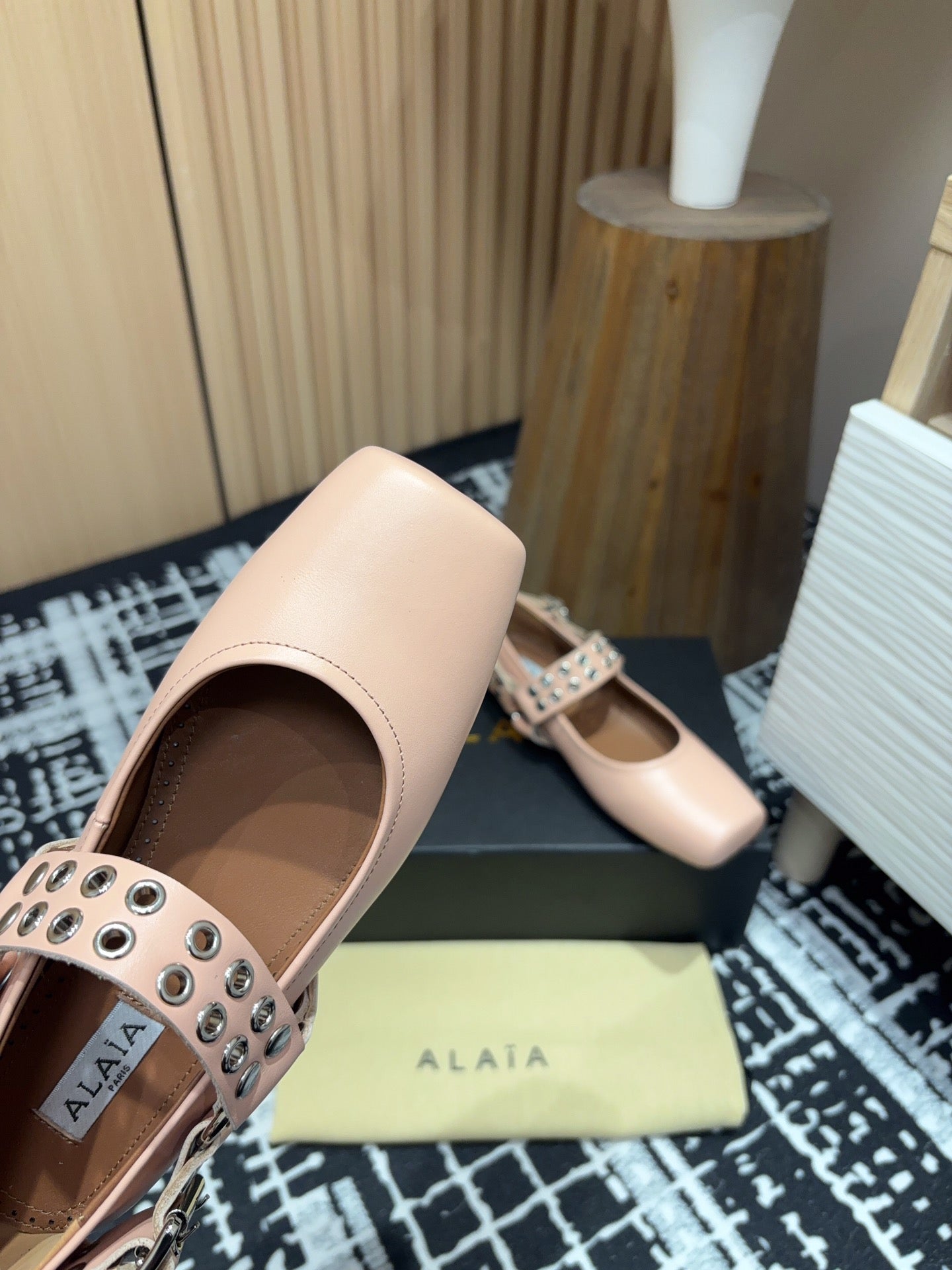 BIKER BALLET FLATS IN PEACH PINK CALFSKIN