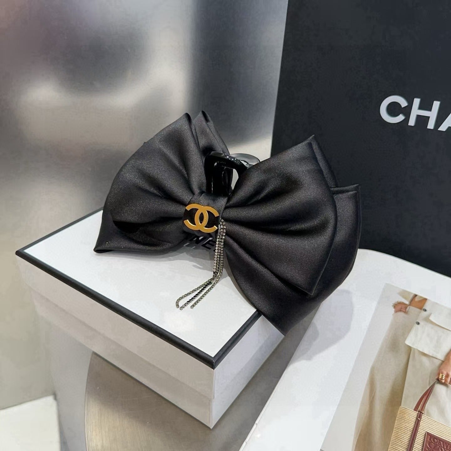 BLACK FABRIC AND RESIN CLAWCLIP GOLD-TONE LOGO