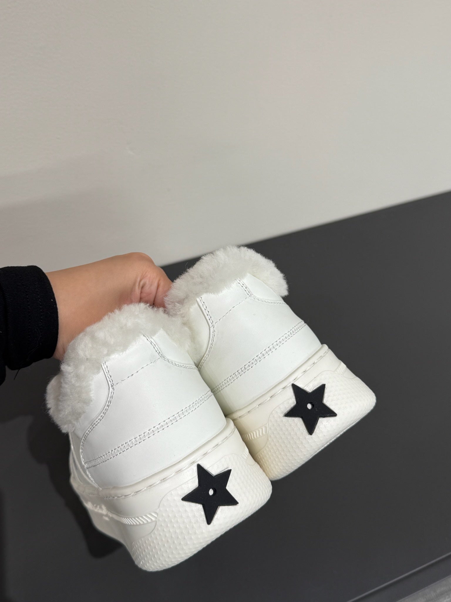 BLACK STAR SNEAKER WHITE CALFSKIN AND SUEDE CALFSKIN WITH SHEARLING LINING