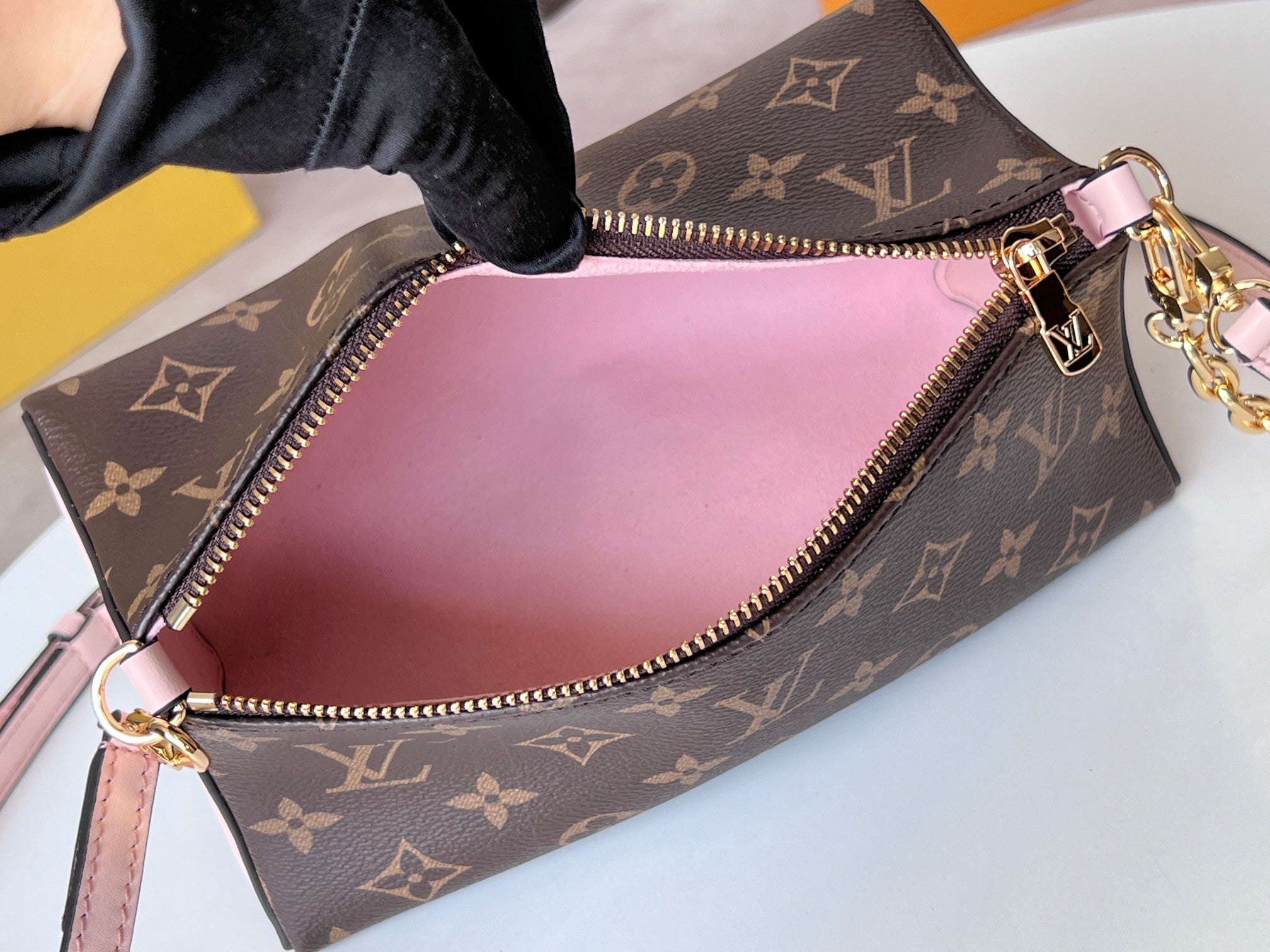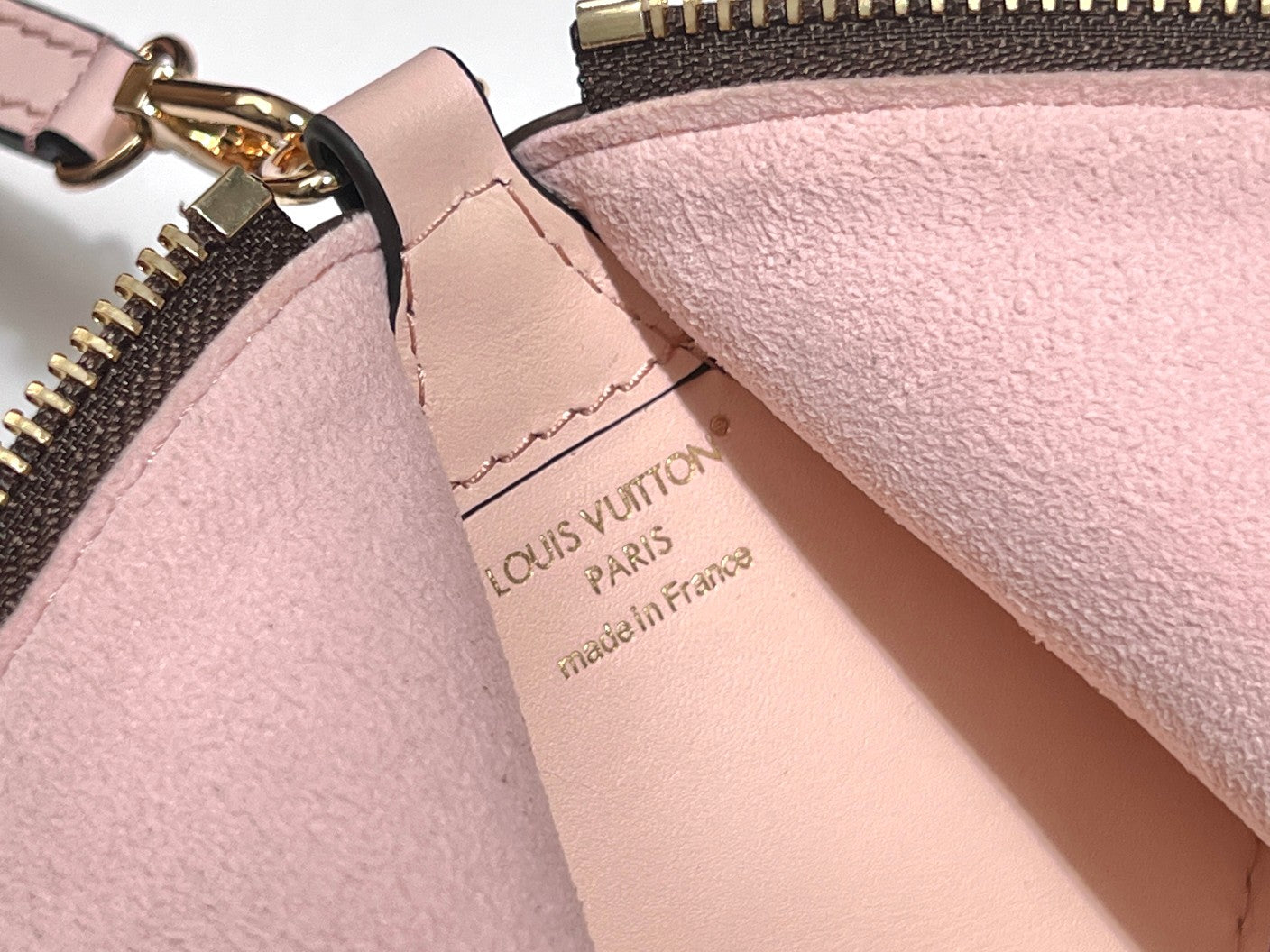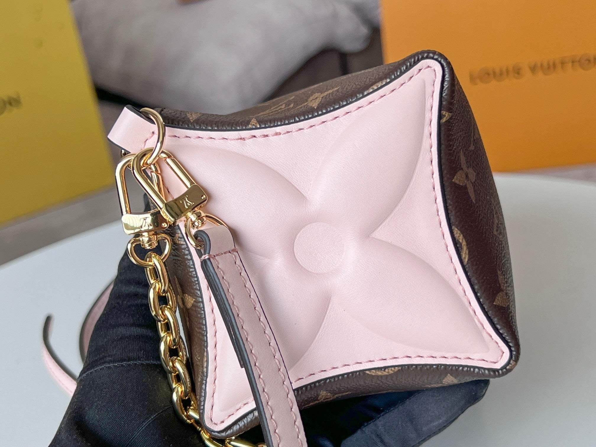 BLOOM POUCH 22 IN BROWN MONOGRAM CANVAS AND PASTEL PINK CALFSKIN SIDES