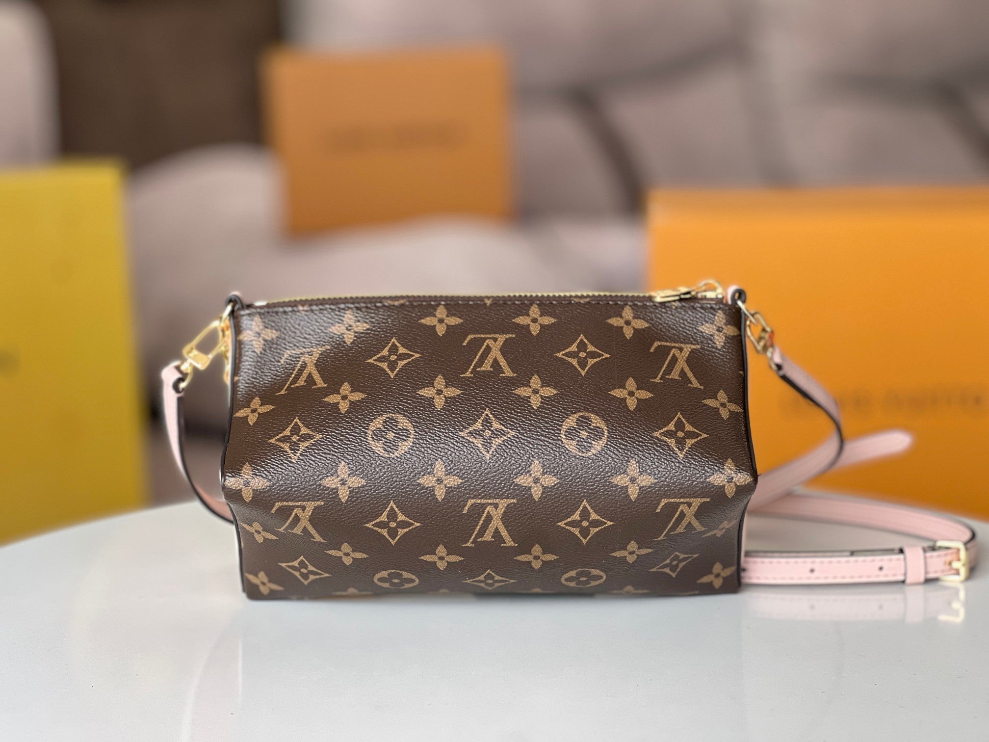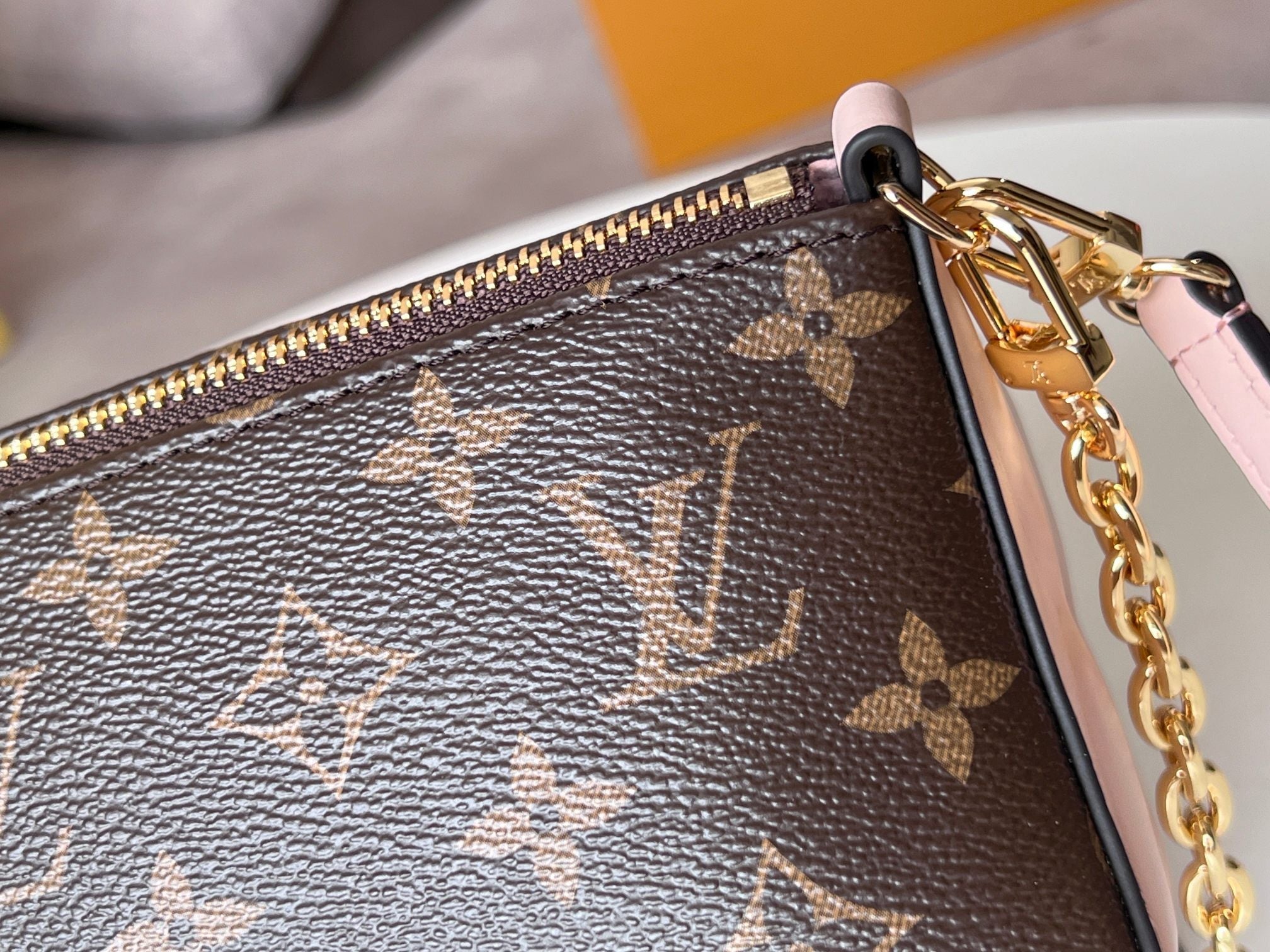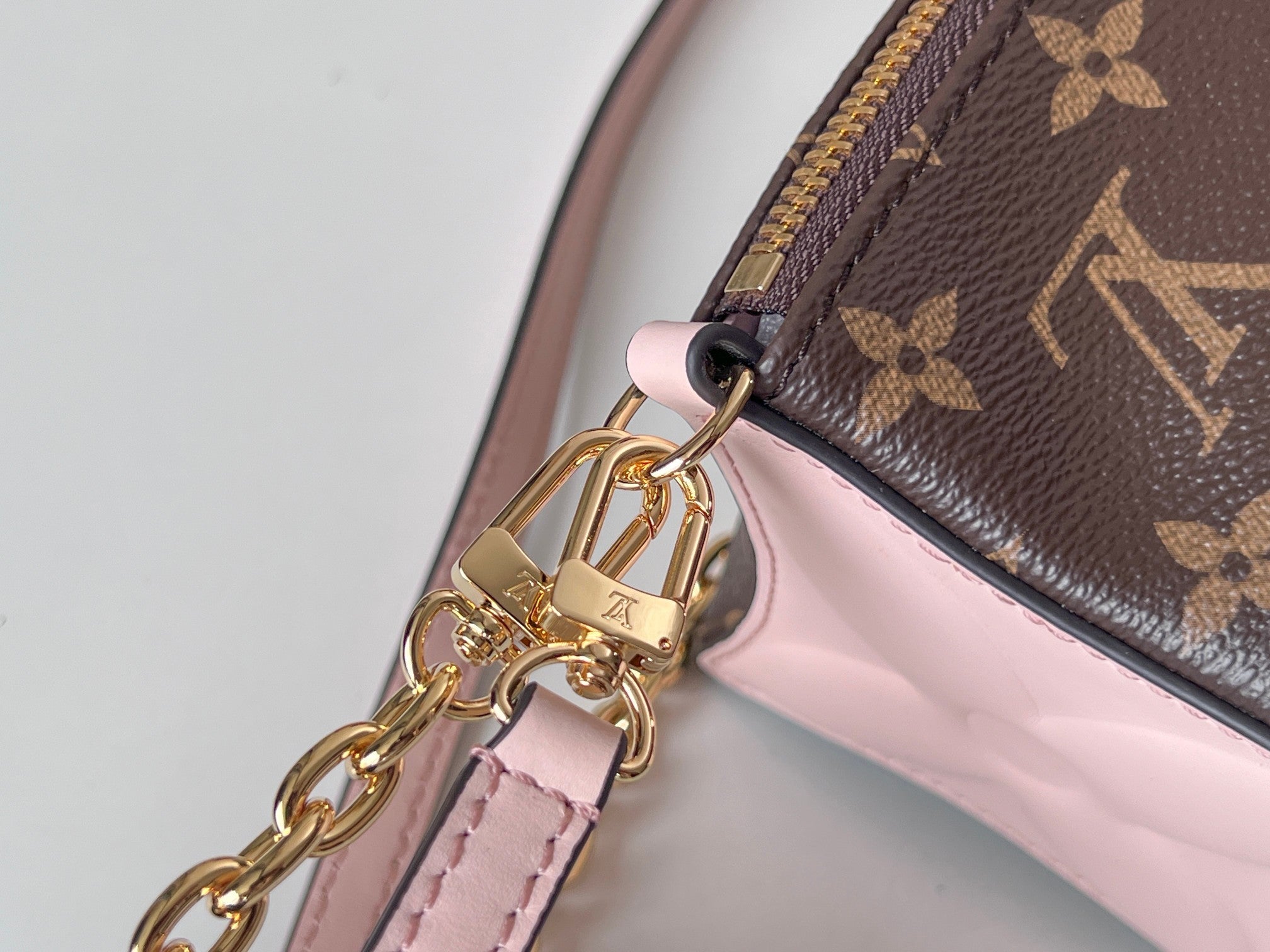 BLOOM POUCH 22 IN BROWN MONOGRAM CANVAS AND PASTEL PINK CALFSKIN SIDES