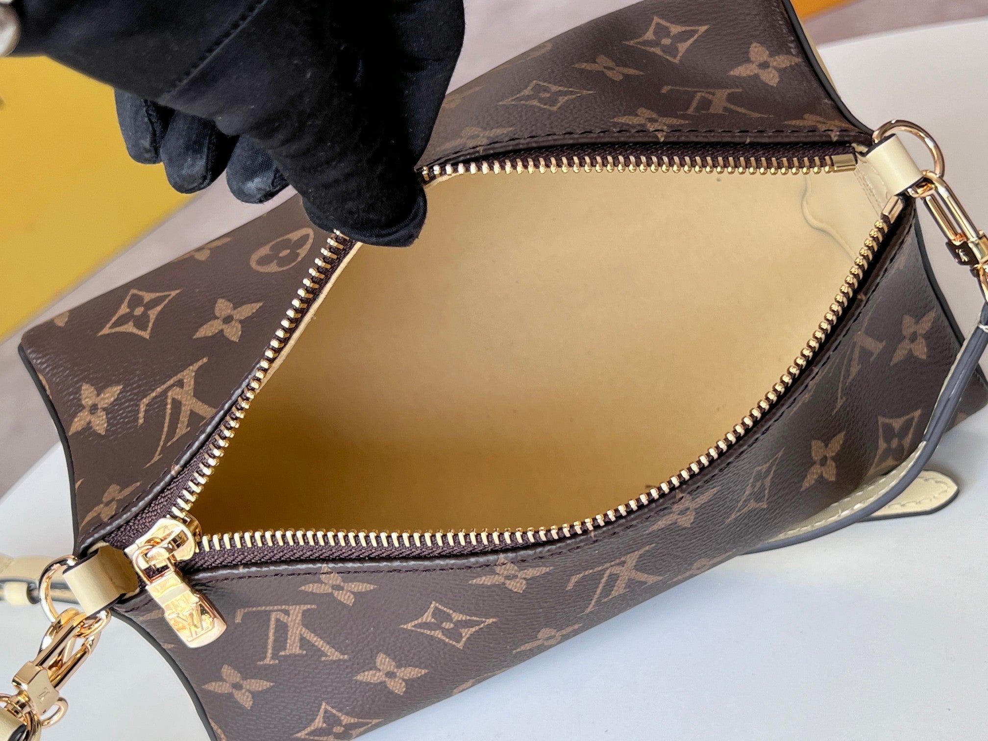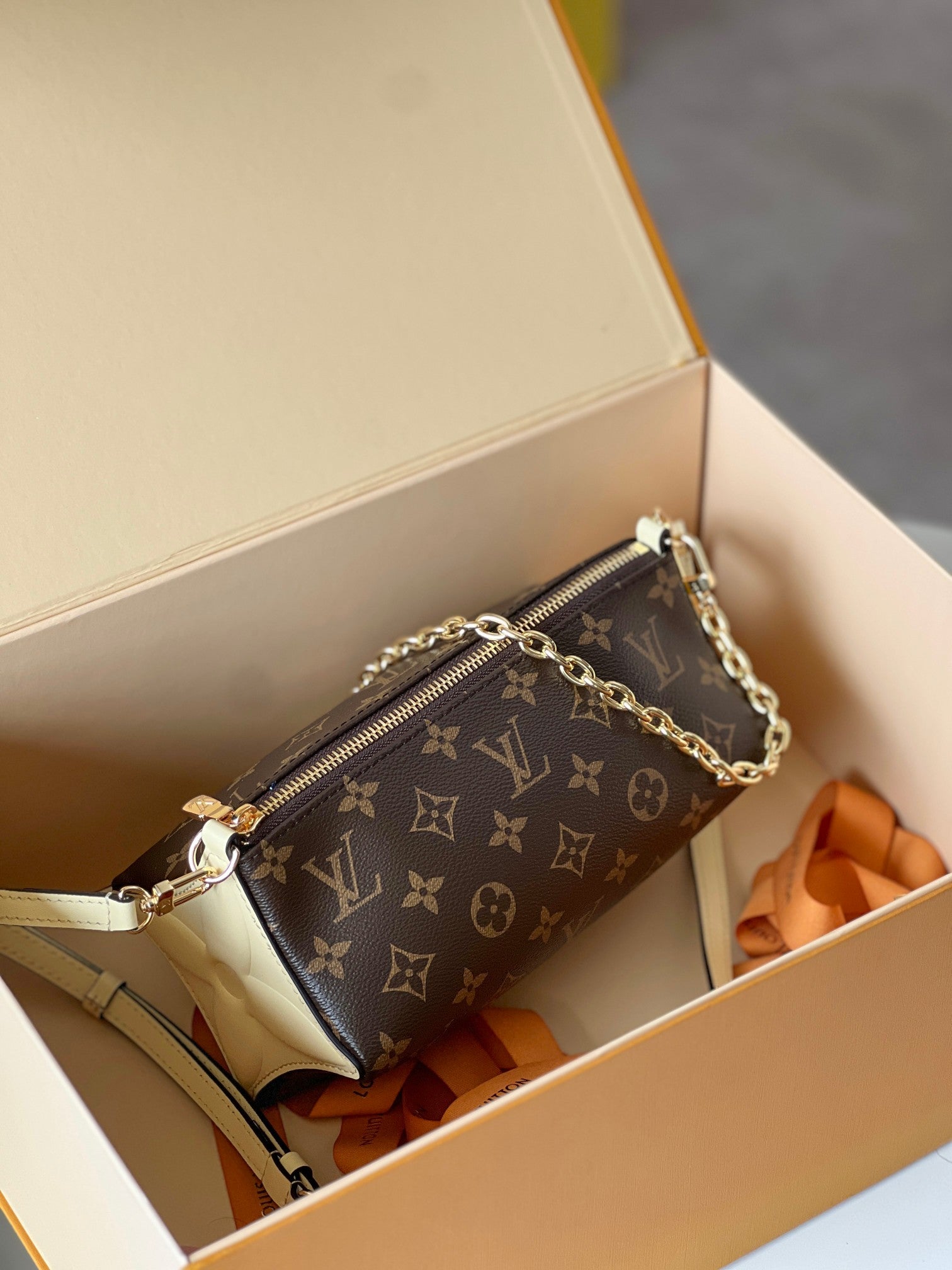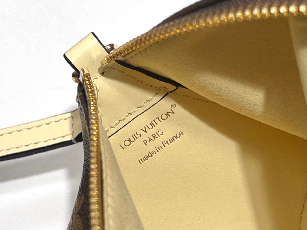 BLOOM POUCH 22 IN BROWN MONOGRAM CANVAS AND PASTEL YELLOW CALFSKIN SIDES