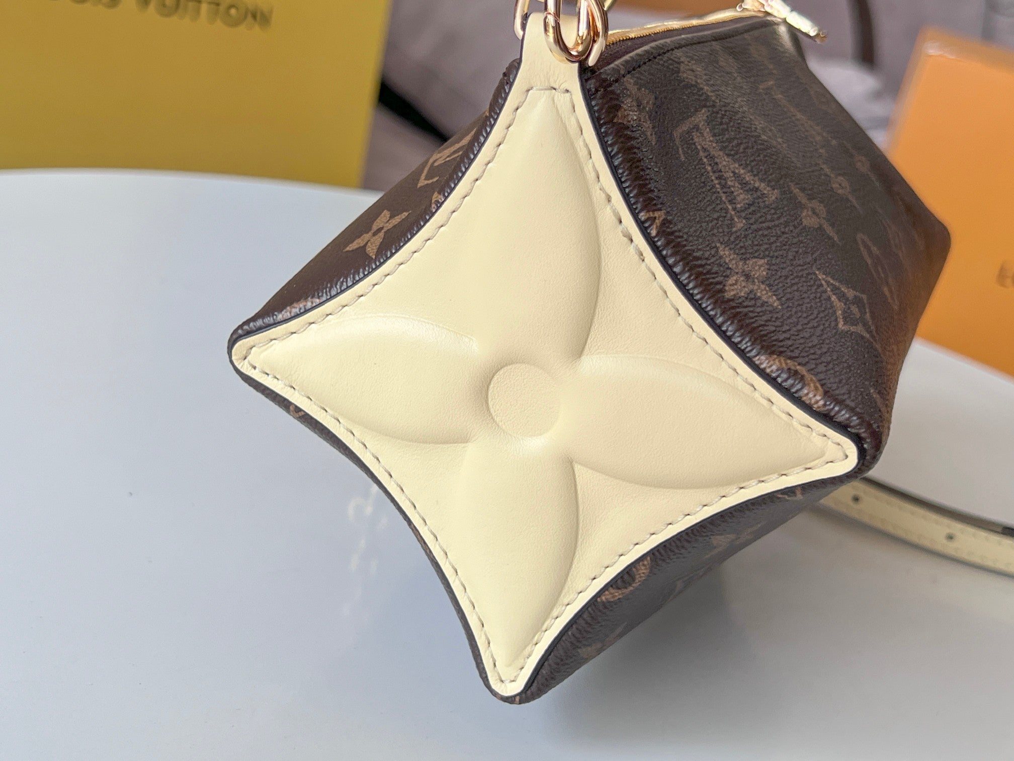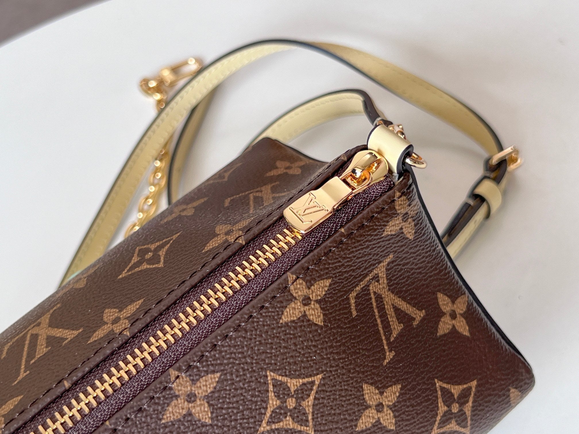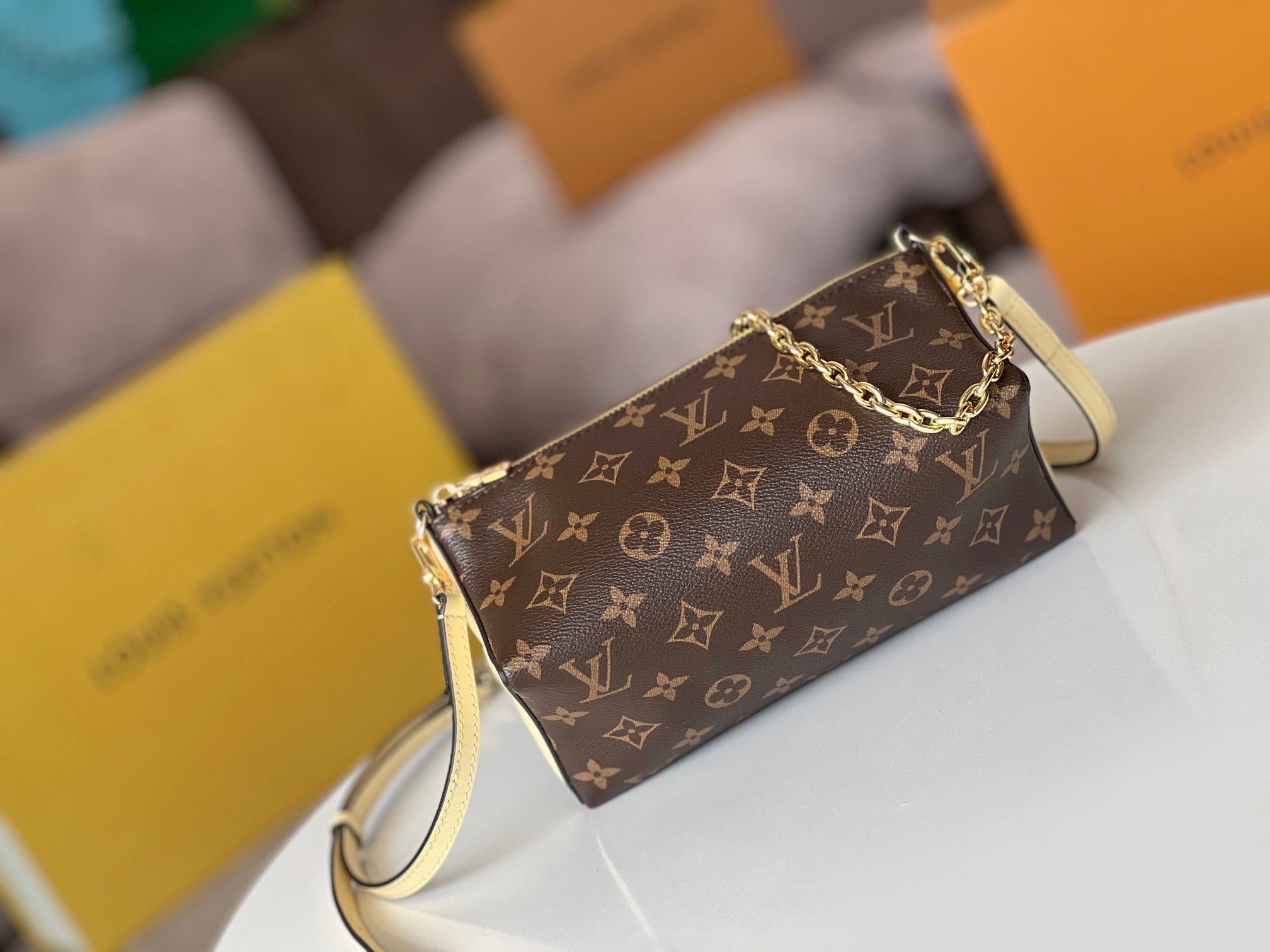 BLOOM POUCH 22 IN BROWN MONOGRAM CANVAS AND PASTEL YELLOW CALFSKIN SIDES