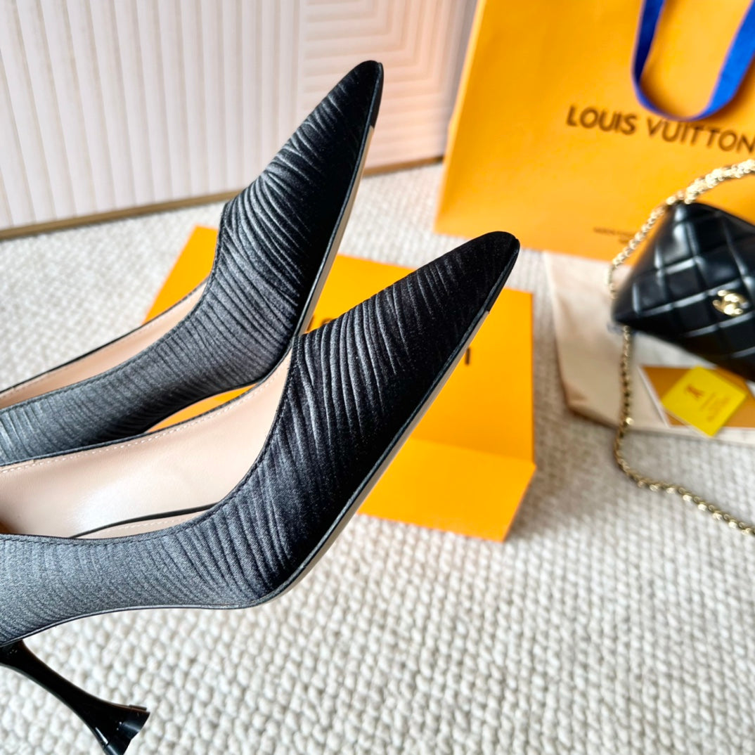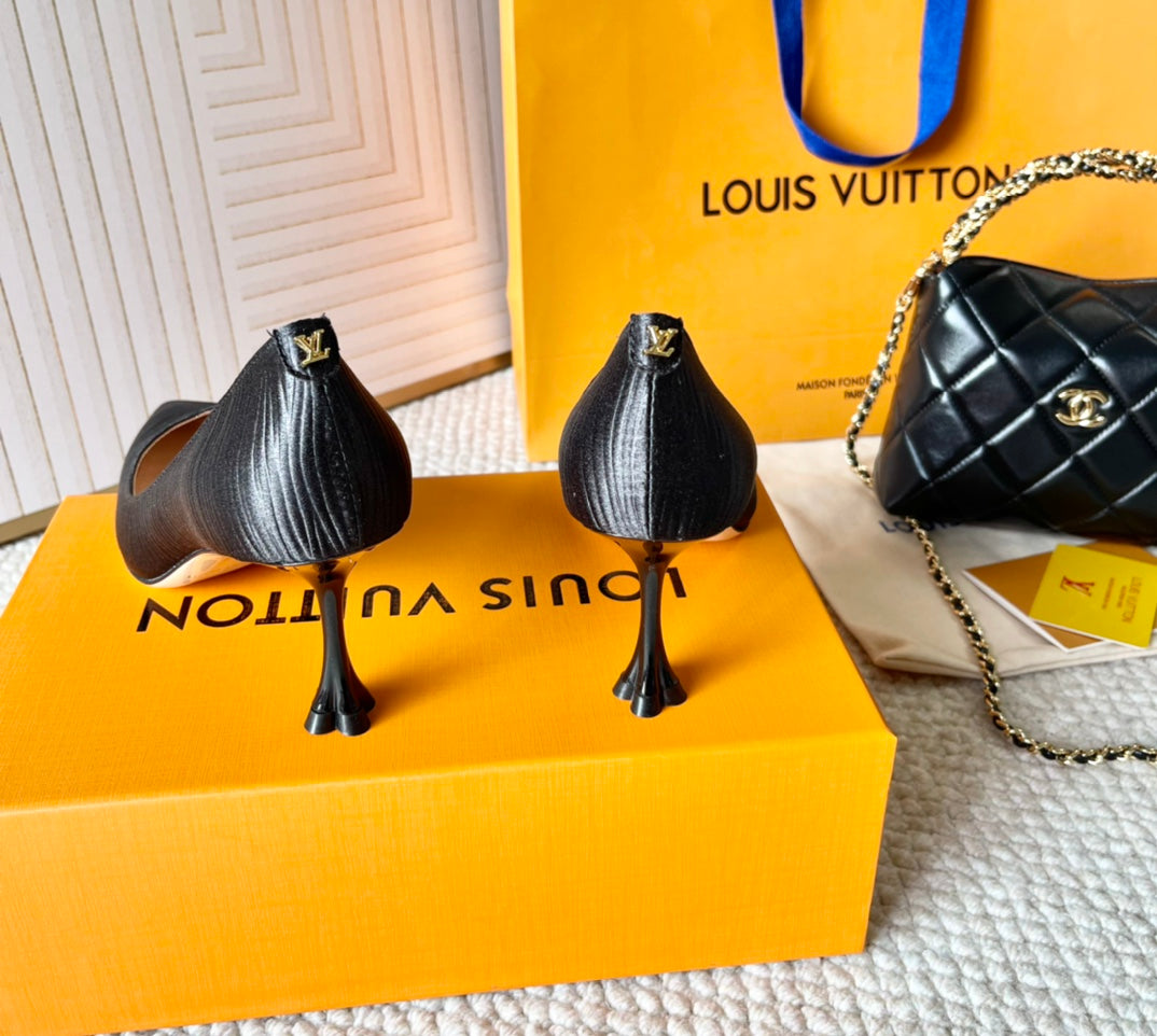 BLOSSOM PUMP 75 MM IN BLACK IMPORTED STRIPED SILK SATIN