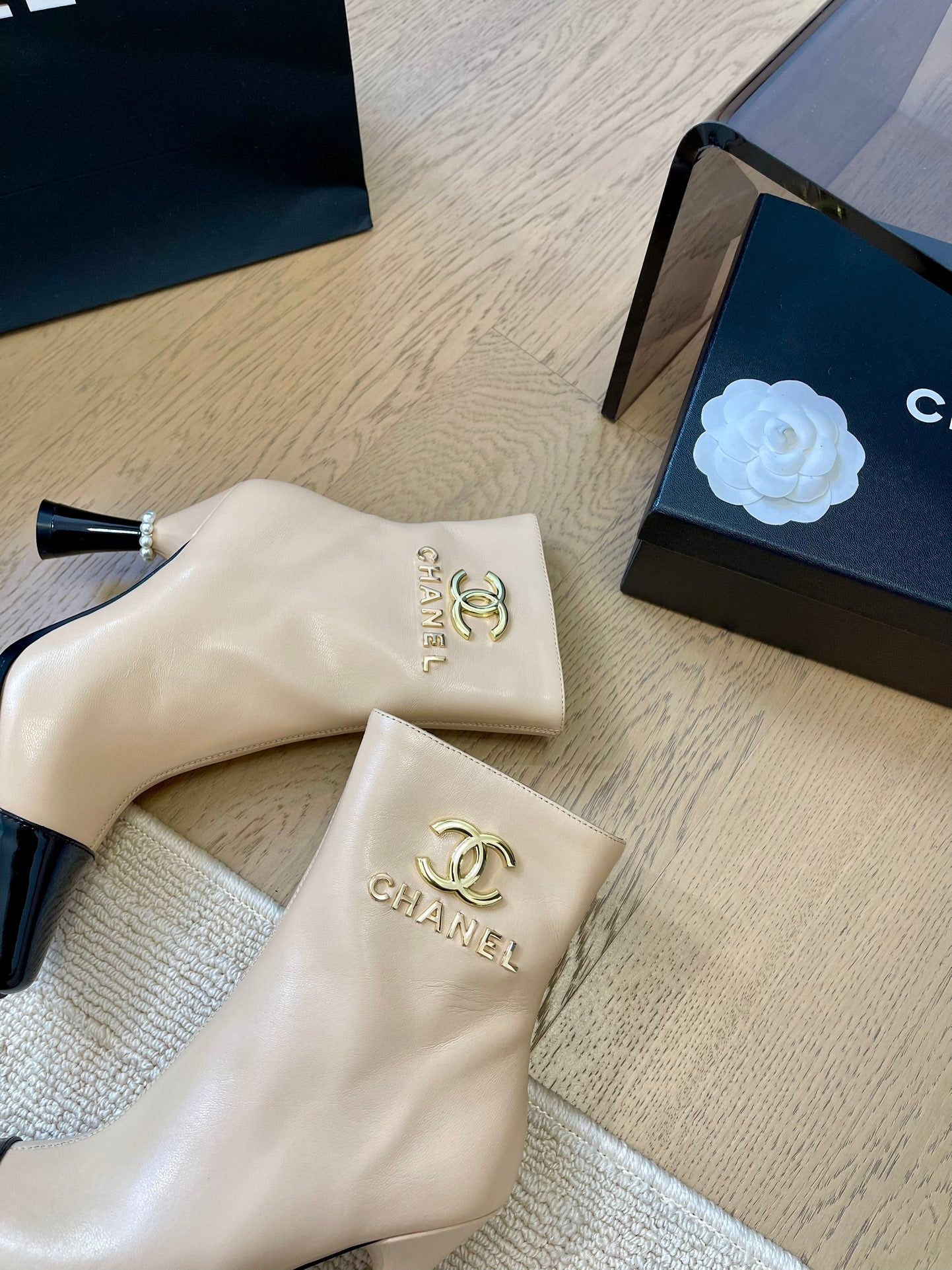 BONGADE BOOTS IN BEIGE MIX BLACK CALFSKIN
