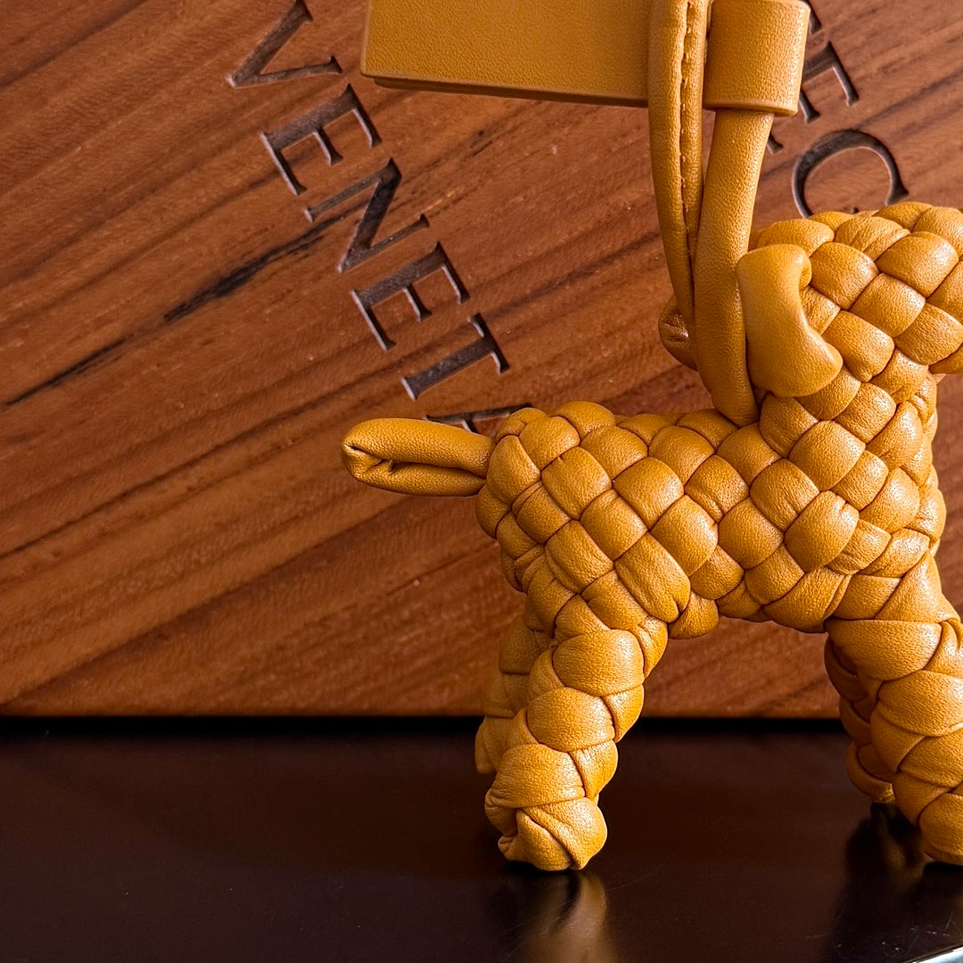 BOTTEGA VENETA 25S DOG CHARM IN BURNT ORANGE CALFSKIN