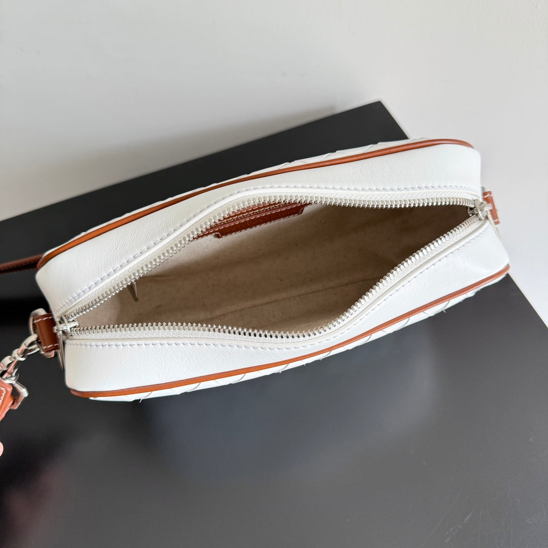 BOTTEGA VENETA 25S SMALL INTRECCIATO CAMERA BAG 24 IN WHITE CALFSKIN