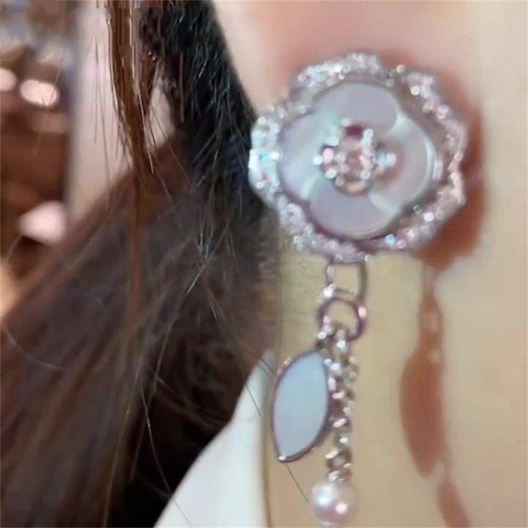 BOUTON DE EARRINGS SILVER DIAMOND PEARL