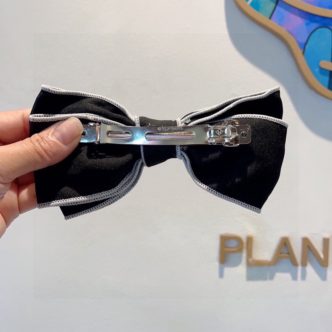 BOW HAIRPIN IN BLACK AND WHITE TRIM COTTON 406022