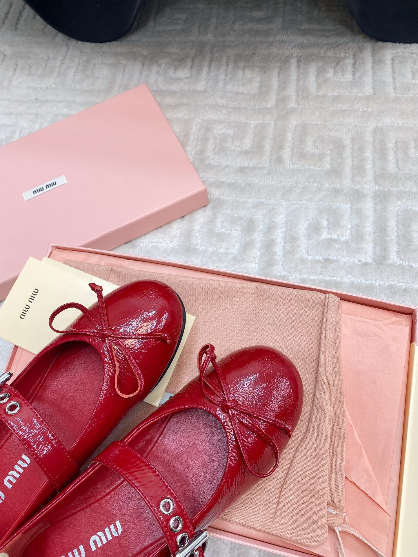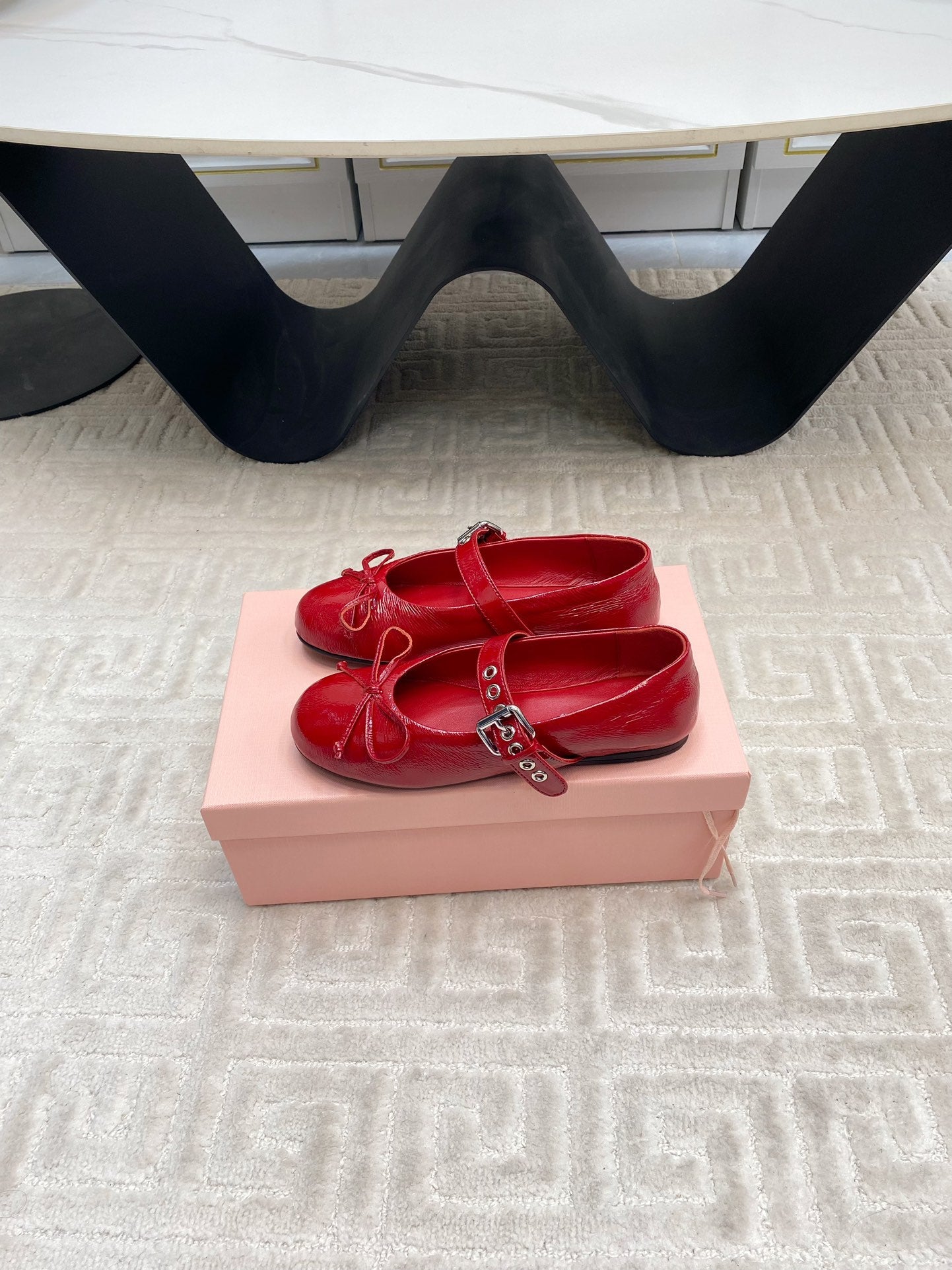 BOW MARY JANE FLAT IN RED NAPLAK LAMBSKIN