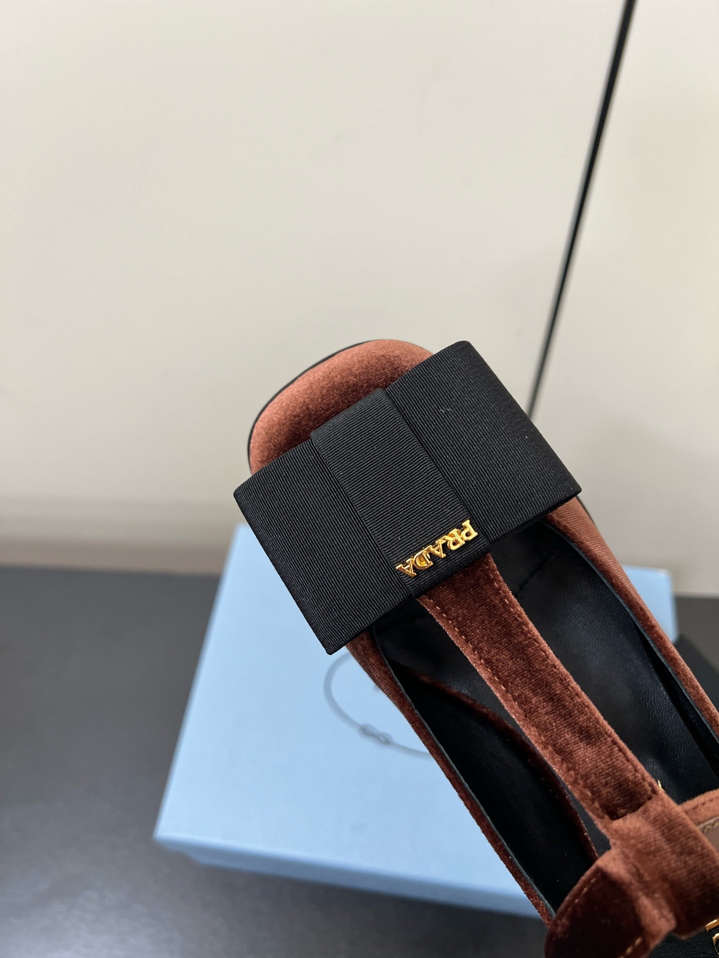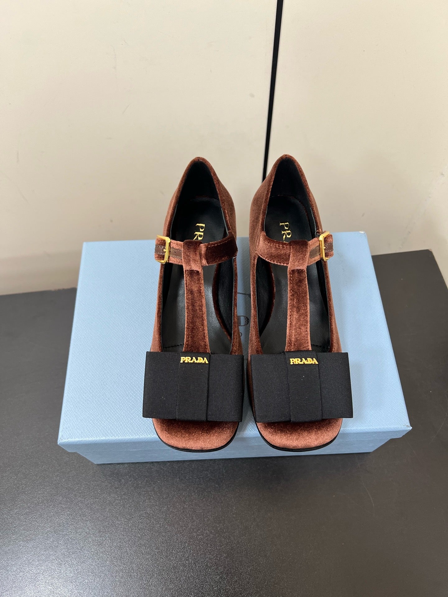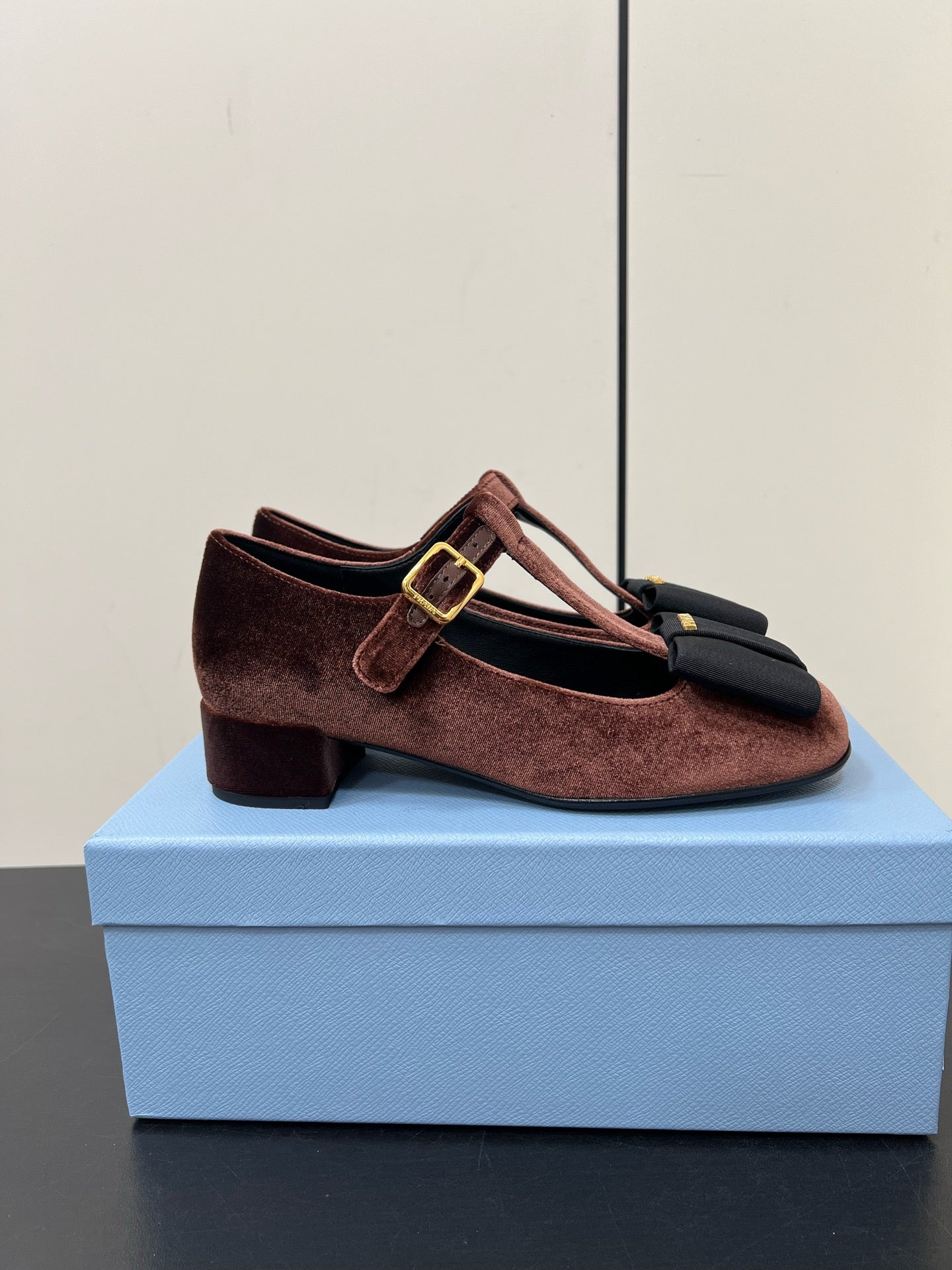 BOW MARY JANE PUMPS WITH T-STRAP IN UMBER BROWN VELVET