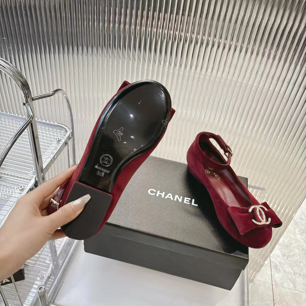 BOW MARY JANE SHOES IN GARNET RED VELVET