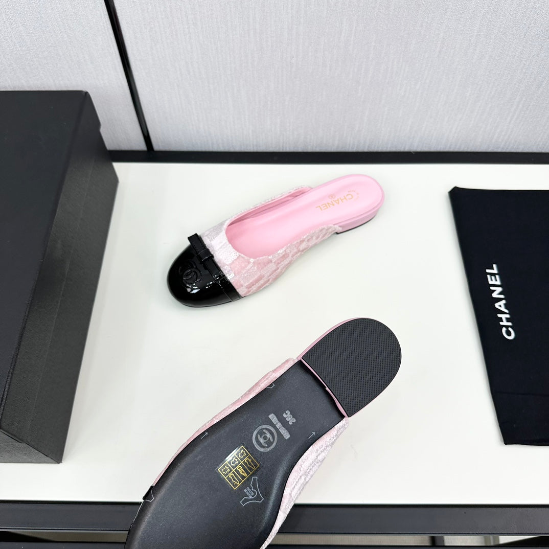 BOW MULE IN LIGHT PINK FABRIC AND BLACK CALFSKIN