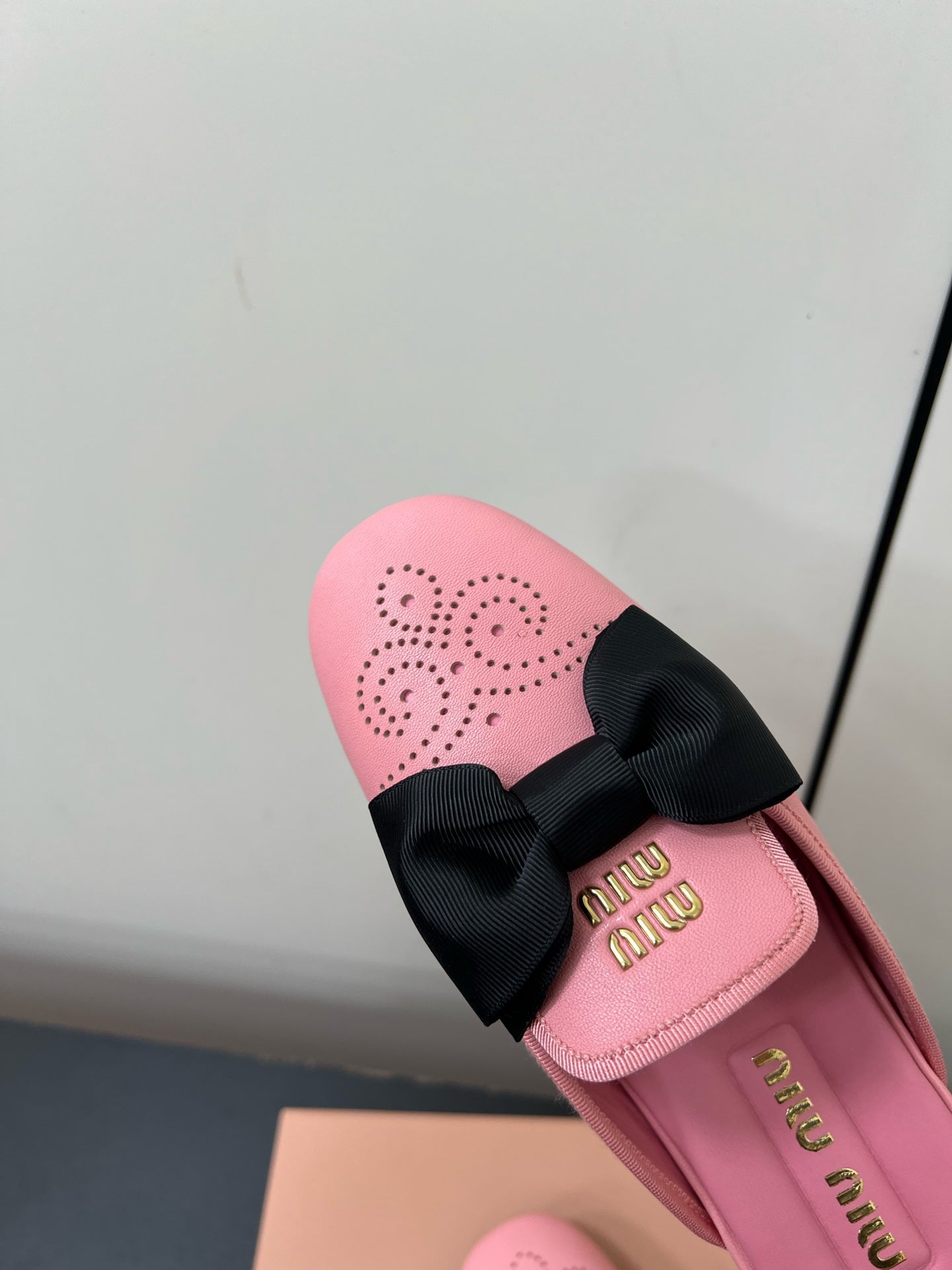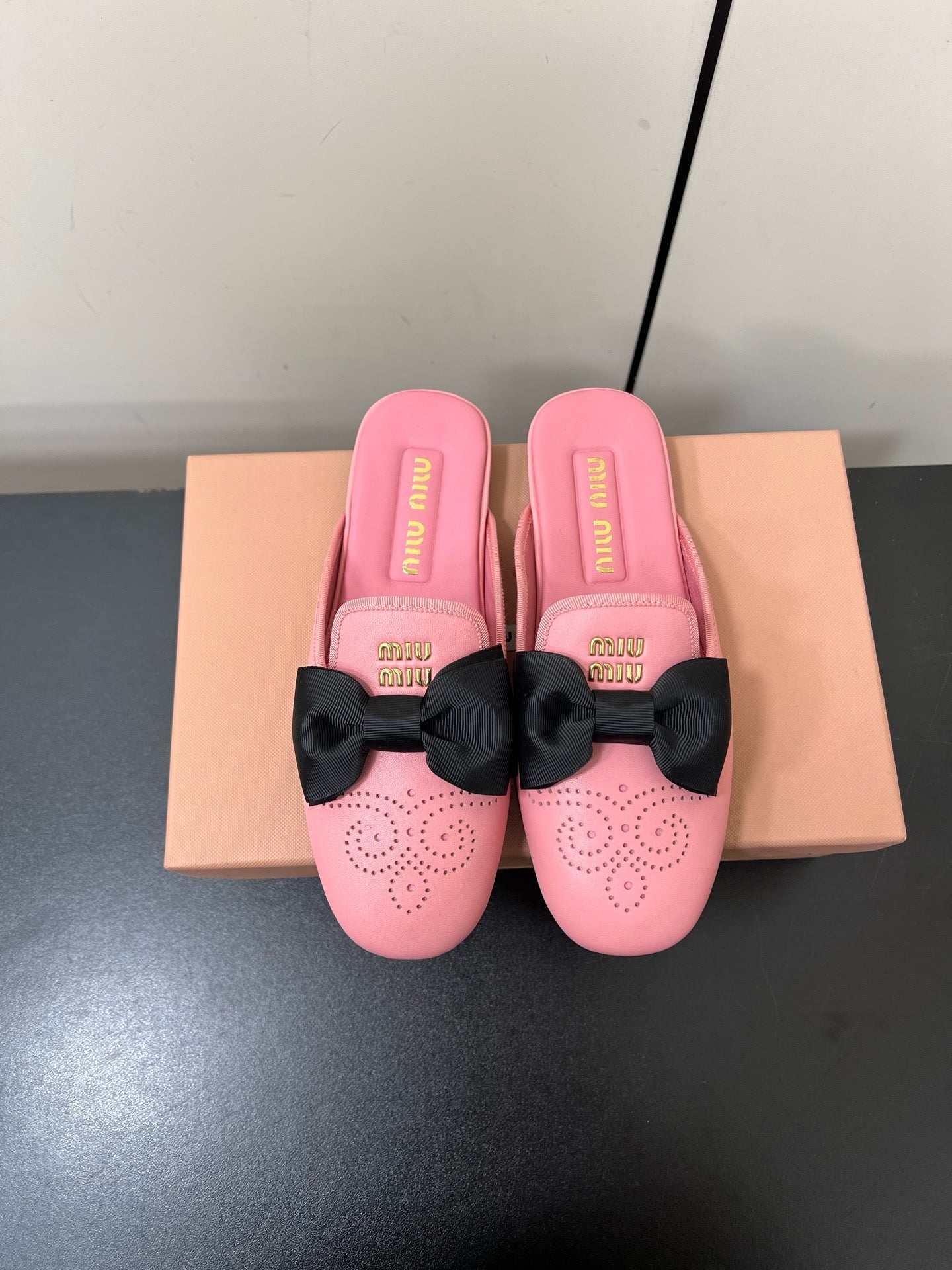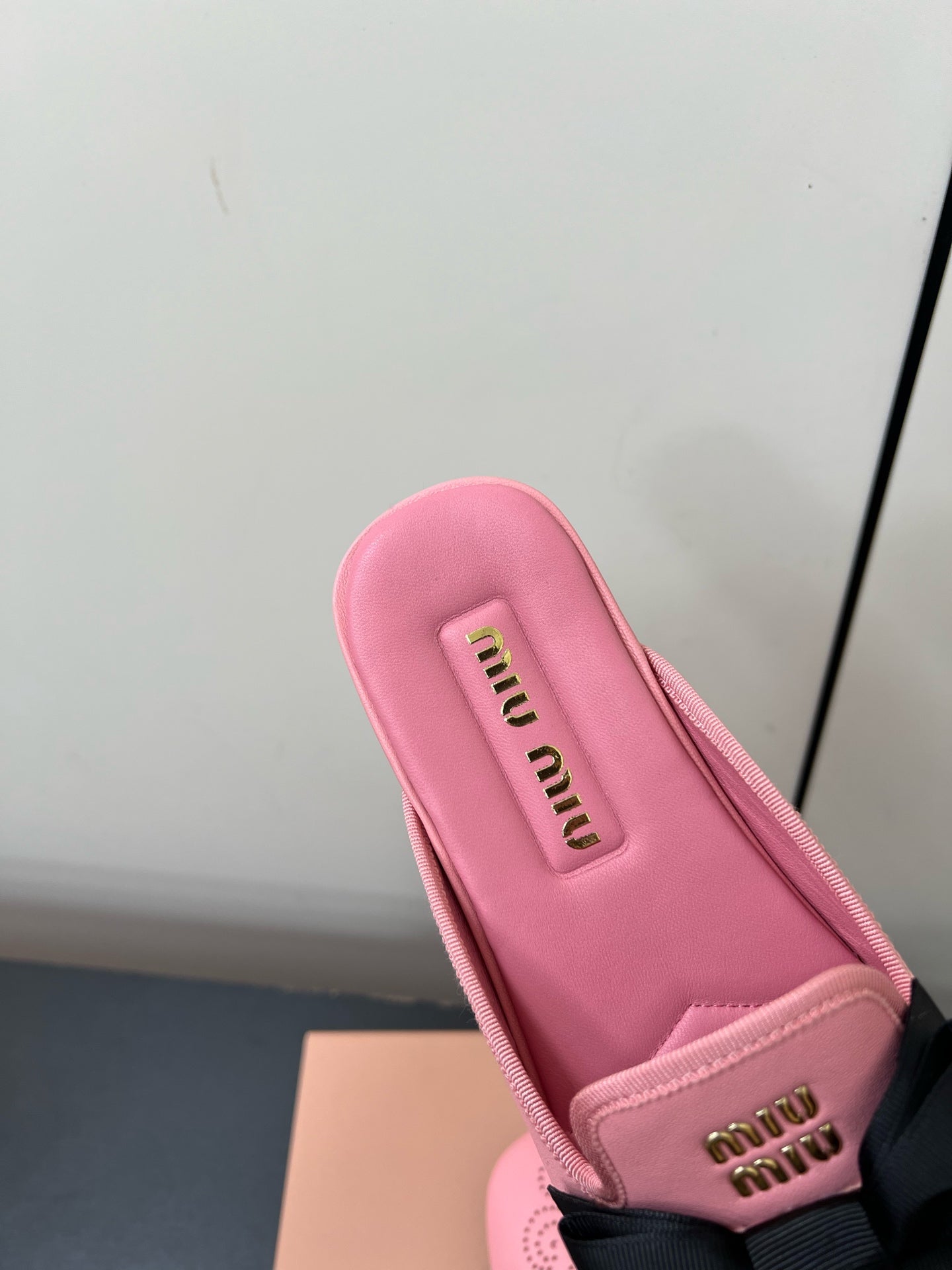 BOW MULES IN PINK SHEEPSKIN