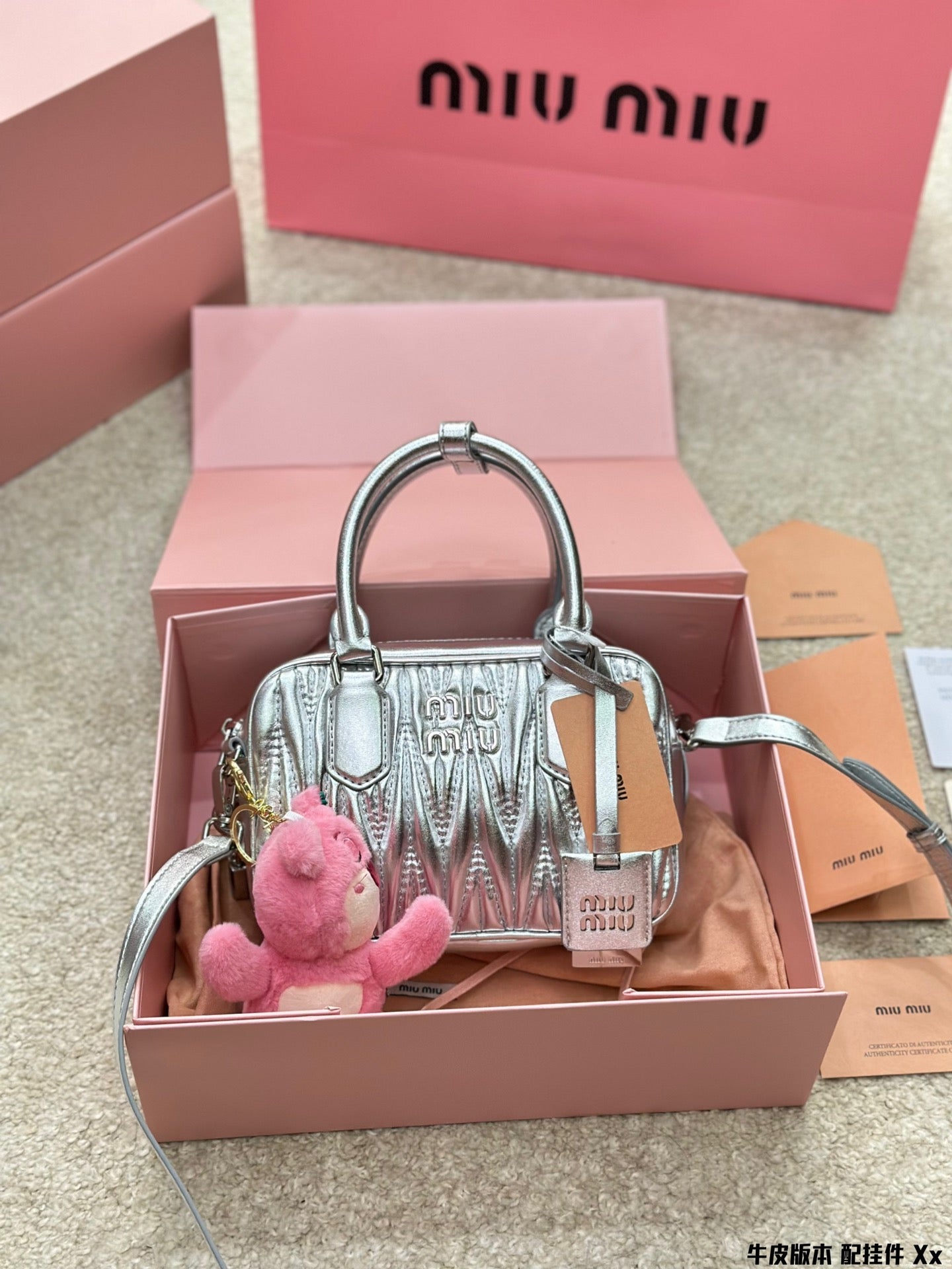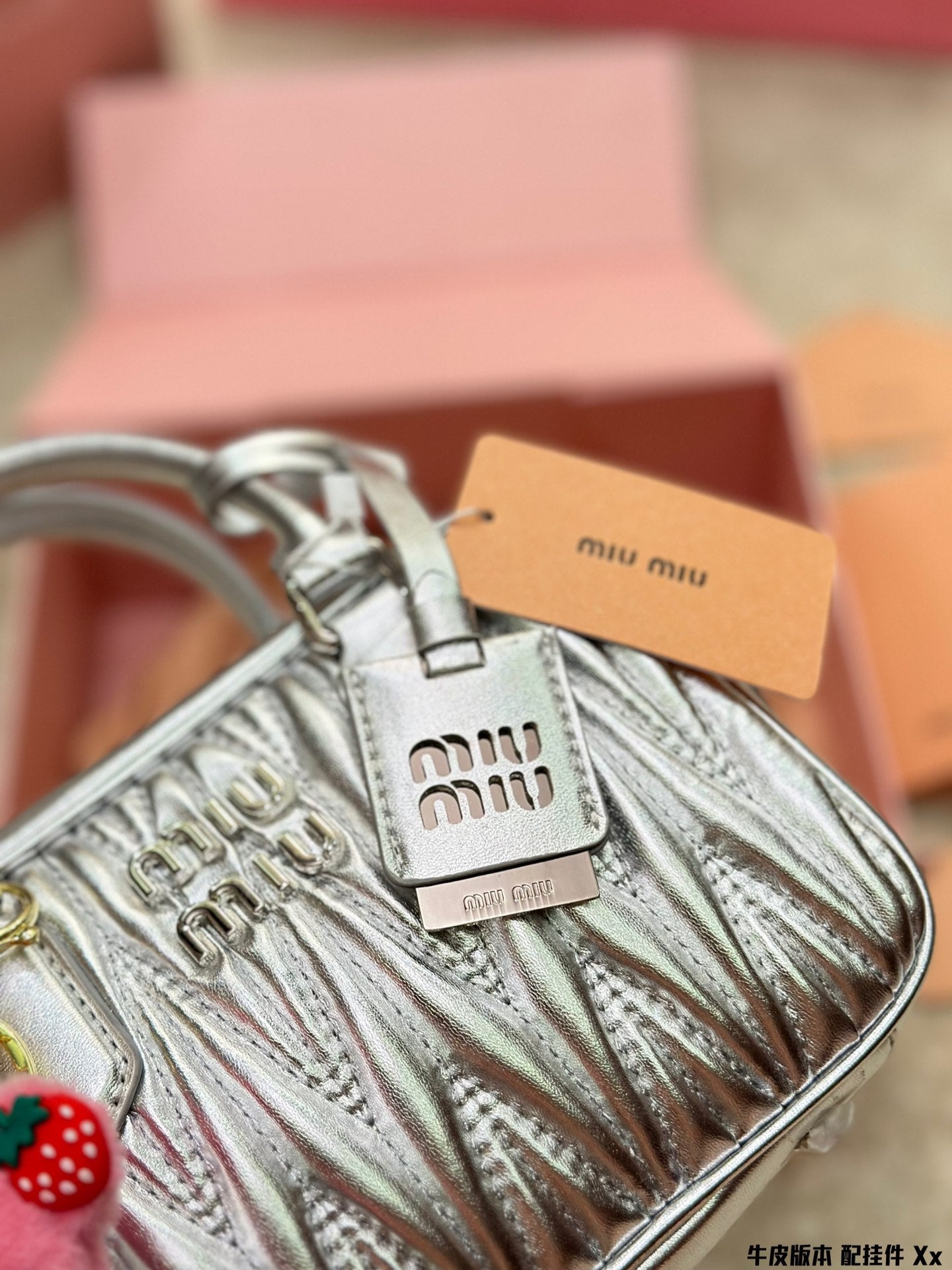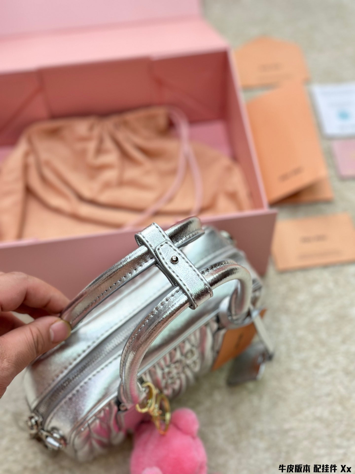 BOWLING BAG 21 IN SILVER LAMBSKIN