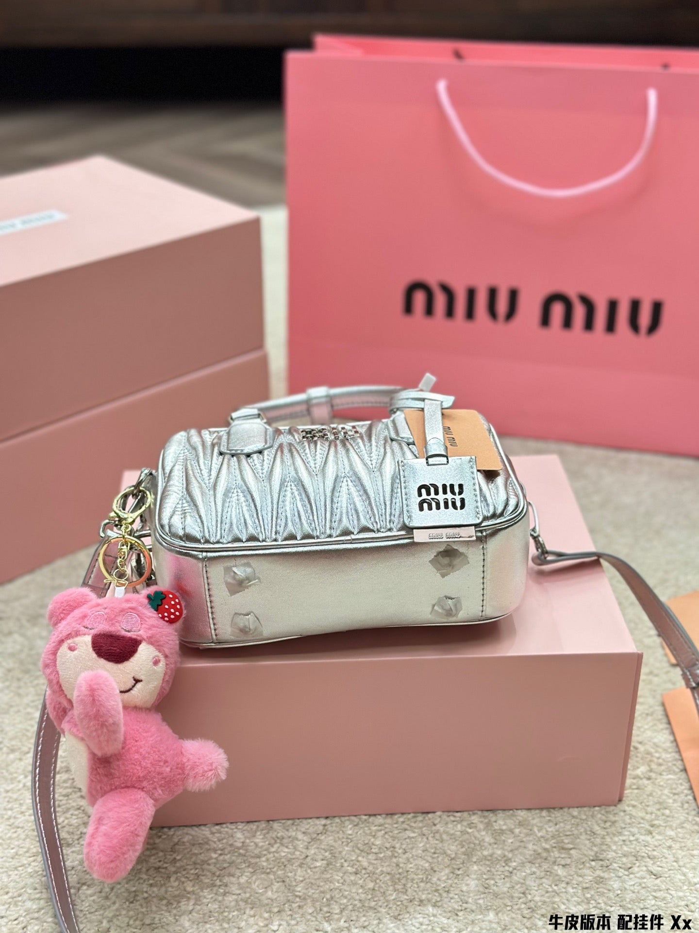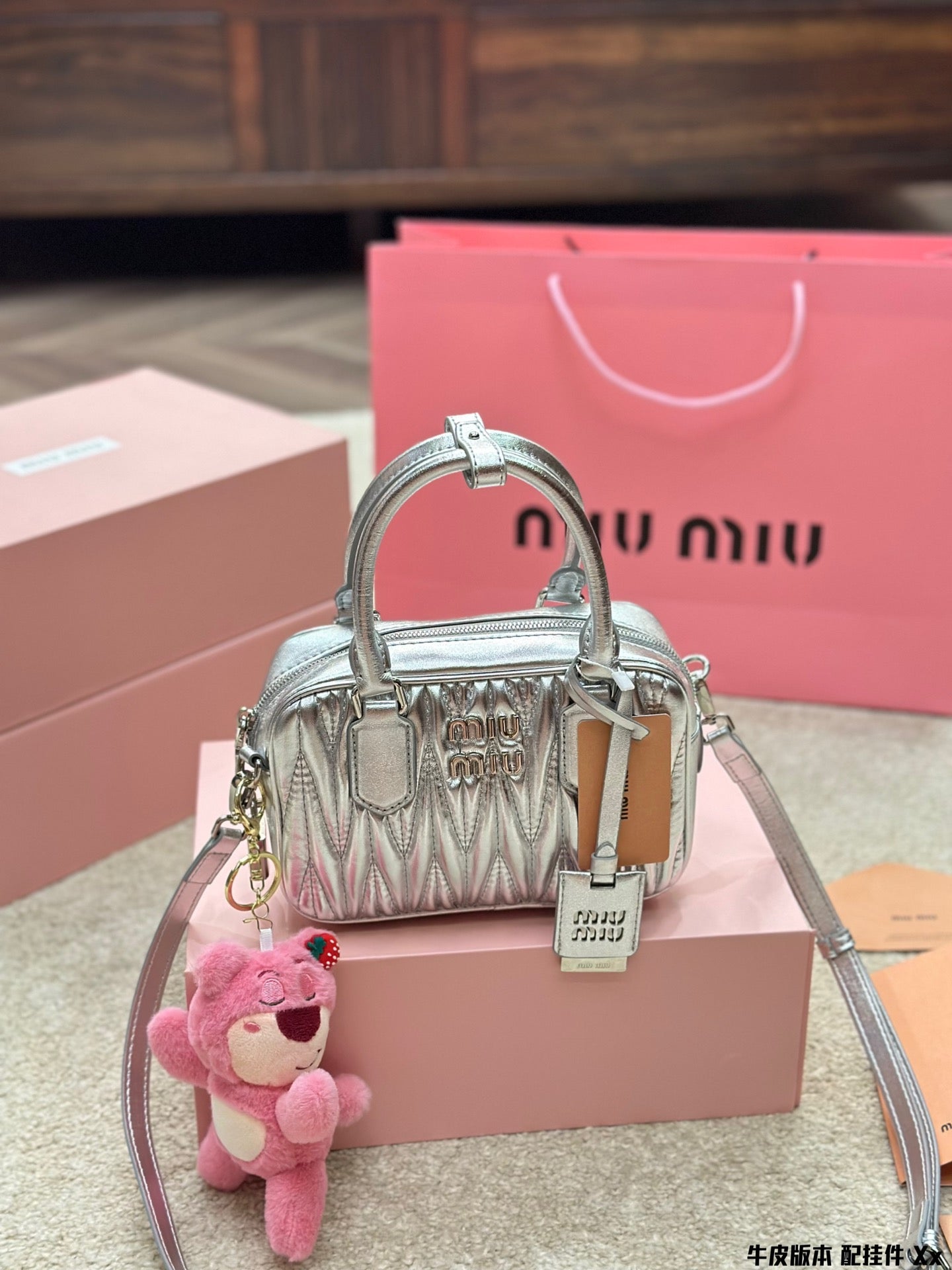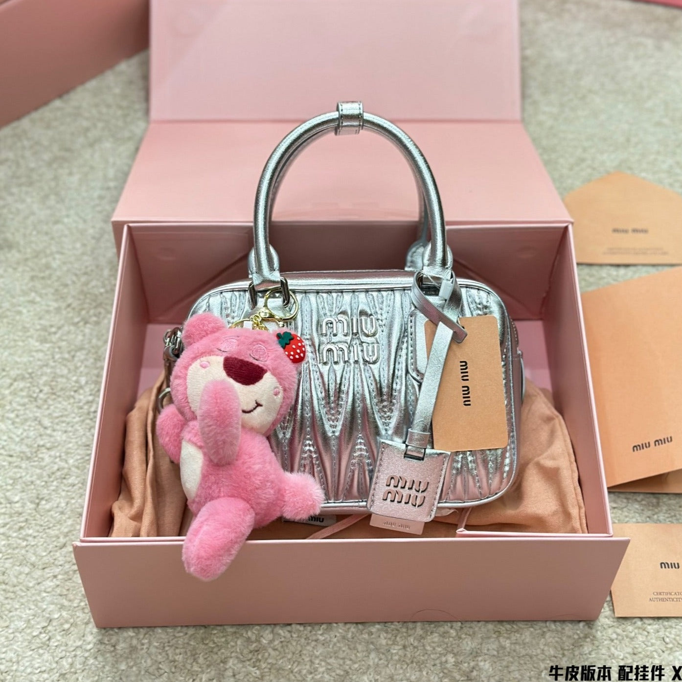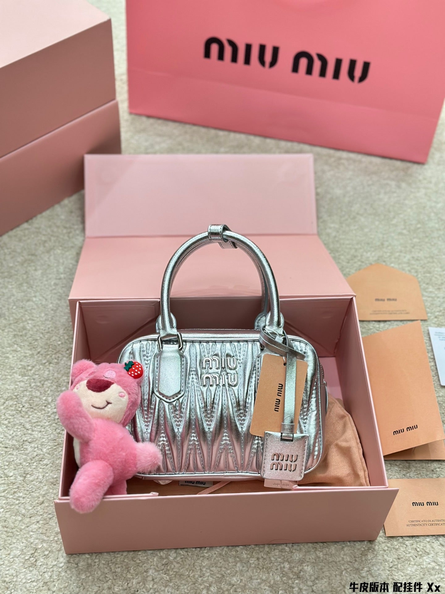 BOWLING BAG 21 IN SILVER LAMBSKIN