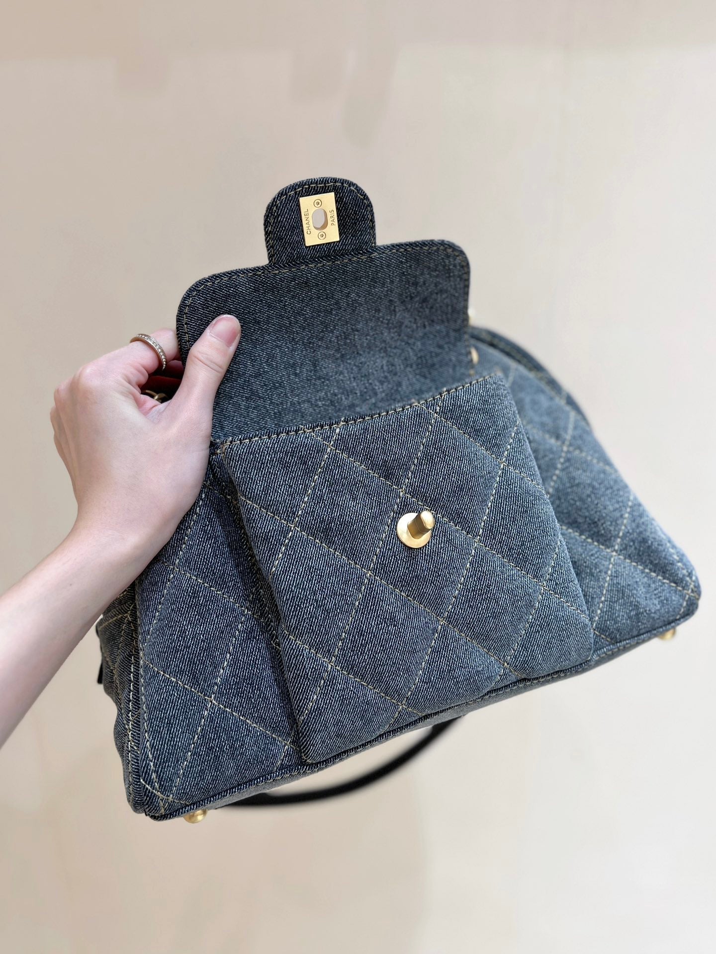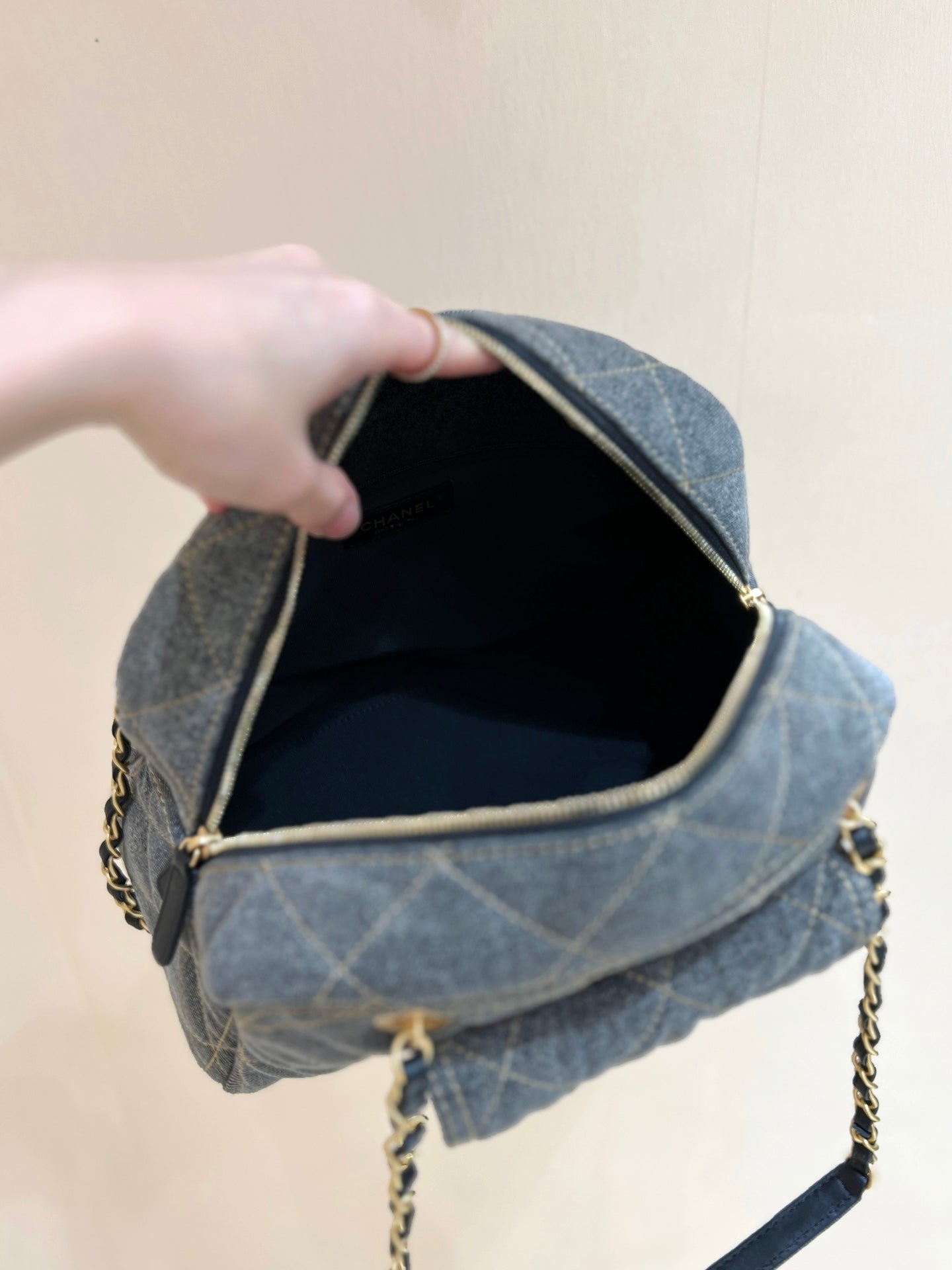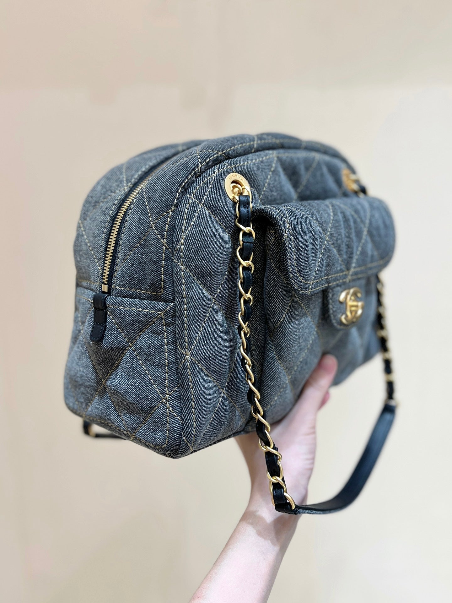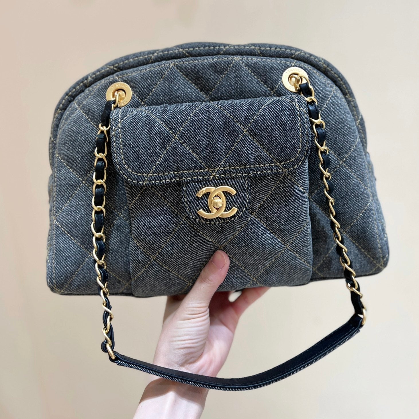 BOWLING BAG 33 IN SANTAS GRAY DENIM GOLD HARDWARE