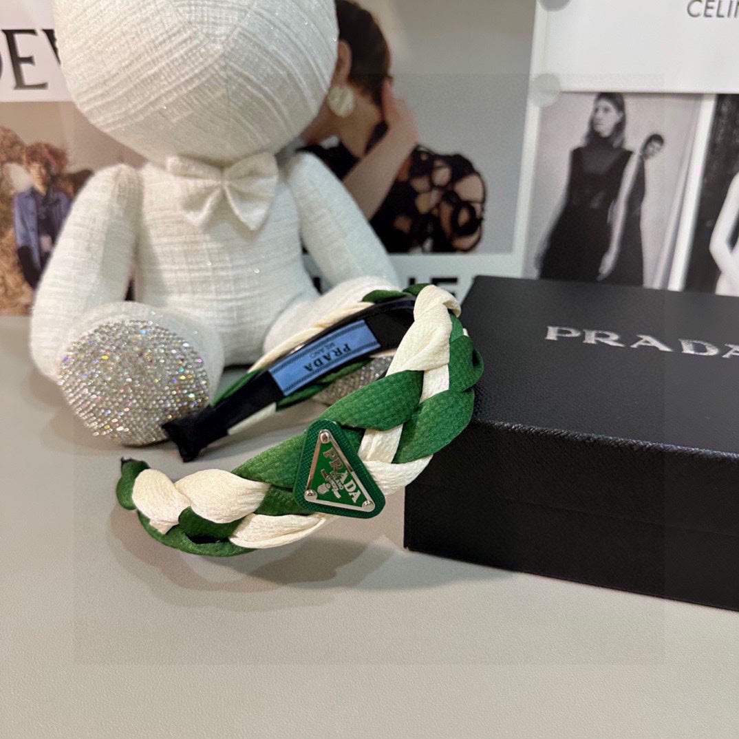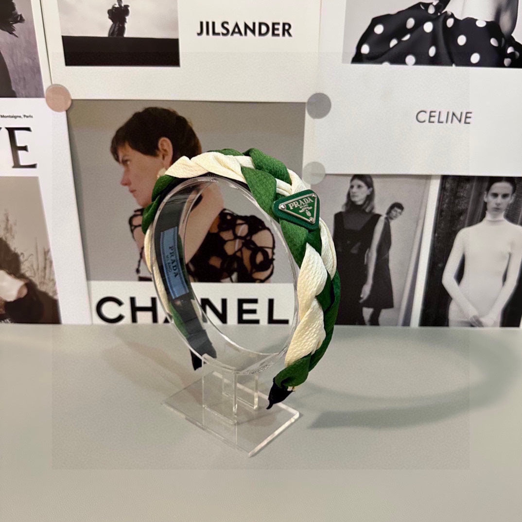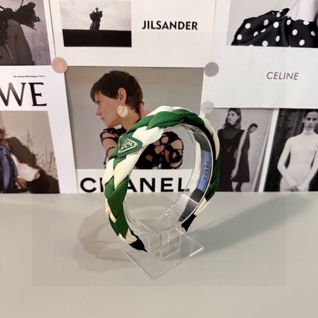 BRAIDED HEADBAND IN GREEN AND WHITE FABRIC 316685