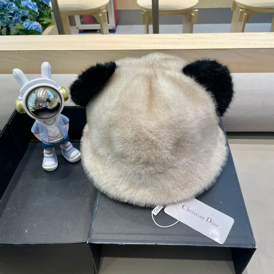 BUCKET HAT WITH CUTE BEAR EARS IN BEIGE RABBIT FUR 434968