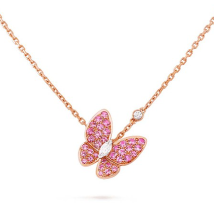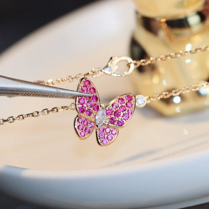 BUTTERFLY RED DIAMOND PINK GOLD NECKLACE