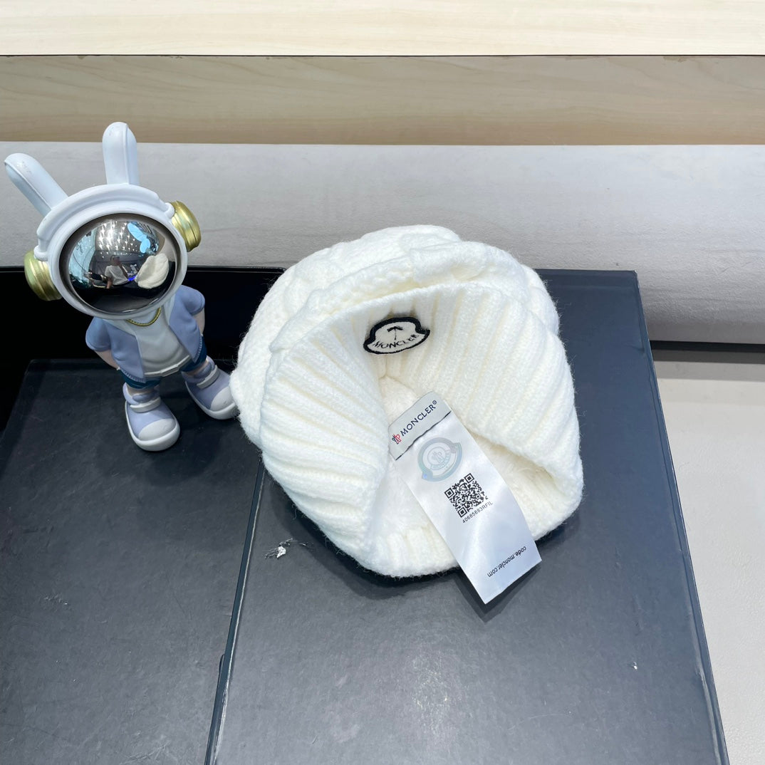 CABLE-KNIT BEANIE HAT IN WHITE WOOL 438141